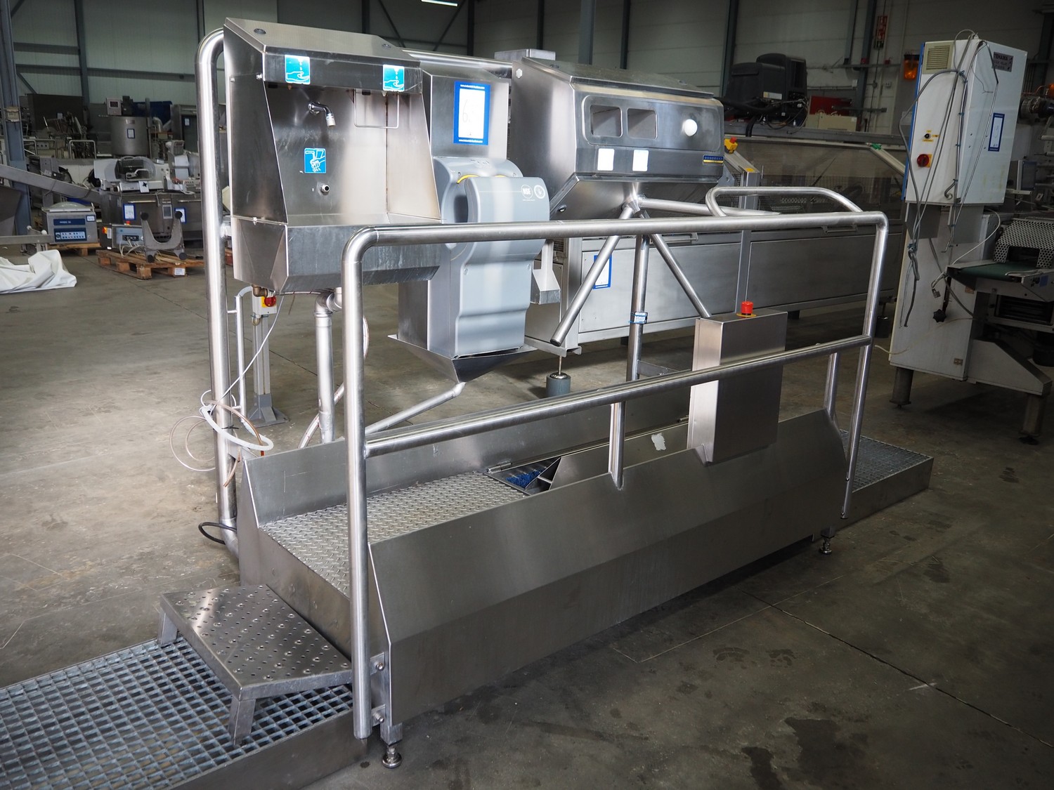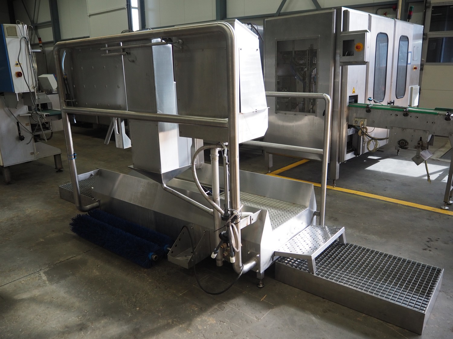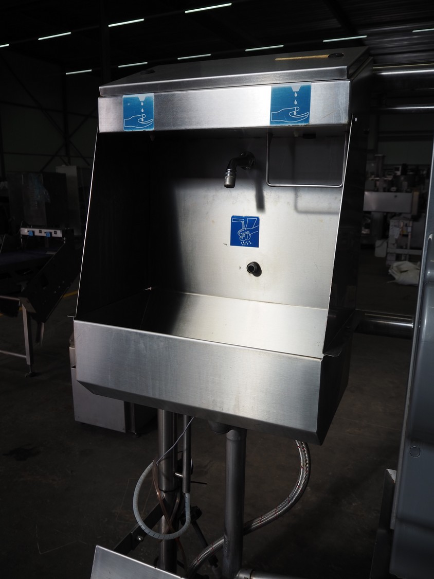 Kohlhoff hygiene station with sole cleaner, hand disinfection, Dyson hand dryer and tourniquet, type: DLS1500+EK800, machine number: 77481, year of construction: 01/2009, 400 V, 3 Ph, 50 Hz, 2.4 kW, brush length: 1100 mm, dimensions: 2200 mm x 1100 mm x 1800 mm. Including 2 extra brushes.