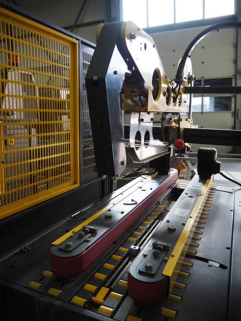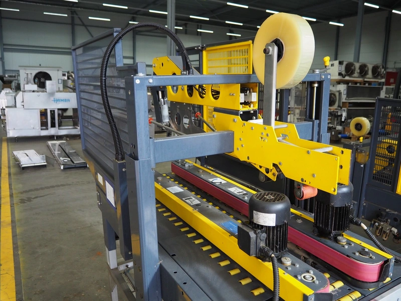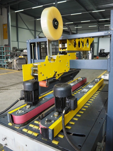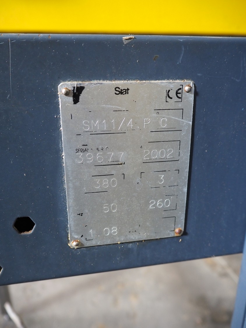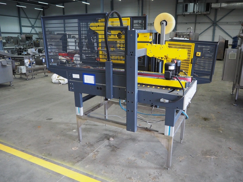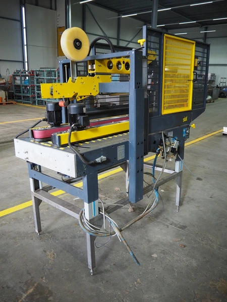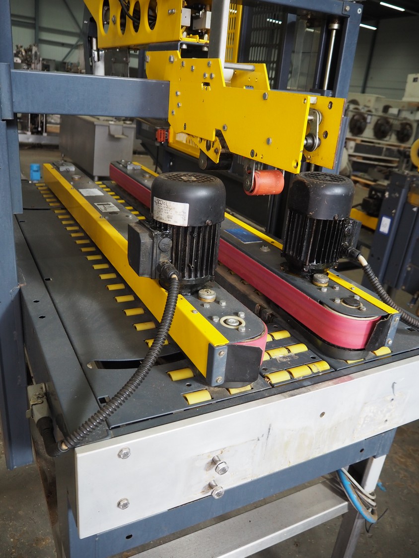 Siat box closing machine, model: SM11/4.P C, serial number: 39677, year of construction: 2002, 380 V, 3 Ph, 50 Hz, 1.08 A, 260 Watt, dimensions: 2000 mm x 950 mm x 2000 mm.