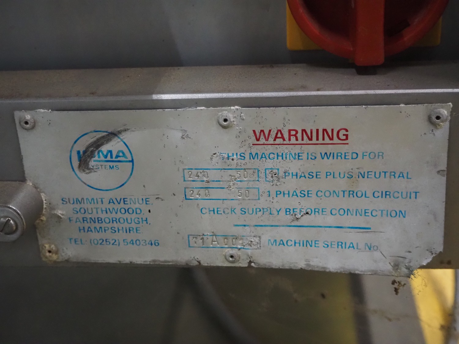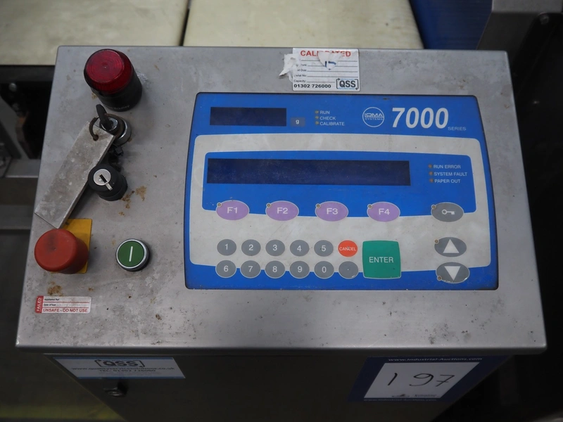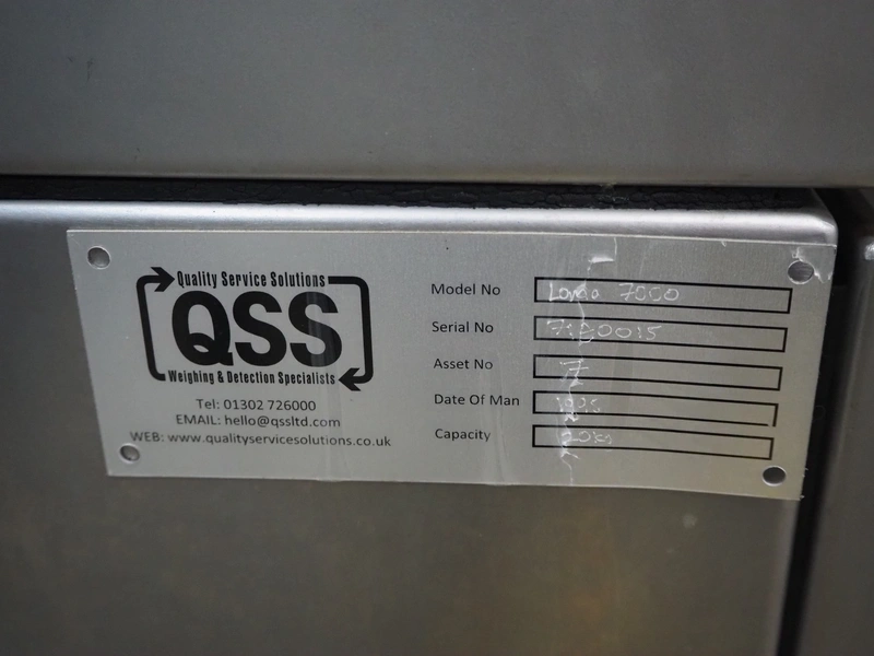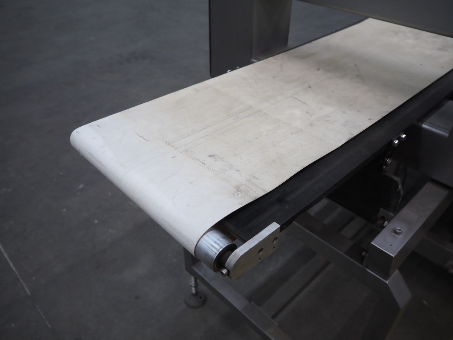 Loma systems checkweigher with metal detector and double rejector, serial number: 71A001, 240 V, 1 Ph, 50 Hz, plastic belt, belt width: 300 mm, clearance: 450 mm x 130 mm, total dimensions: 2750 mm x 1000 mm x 1050 mm.