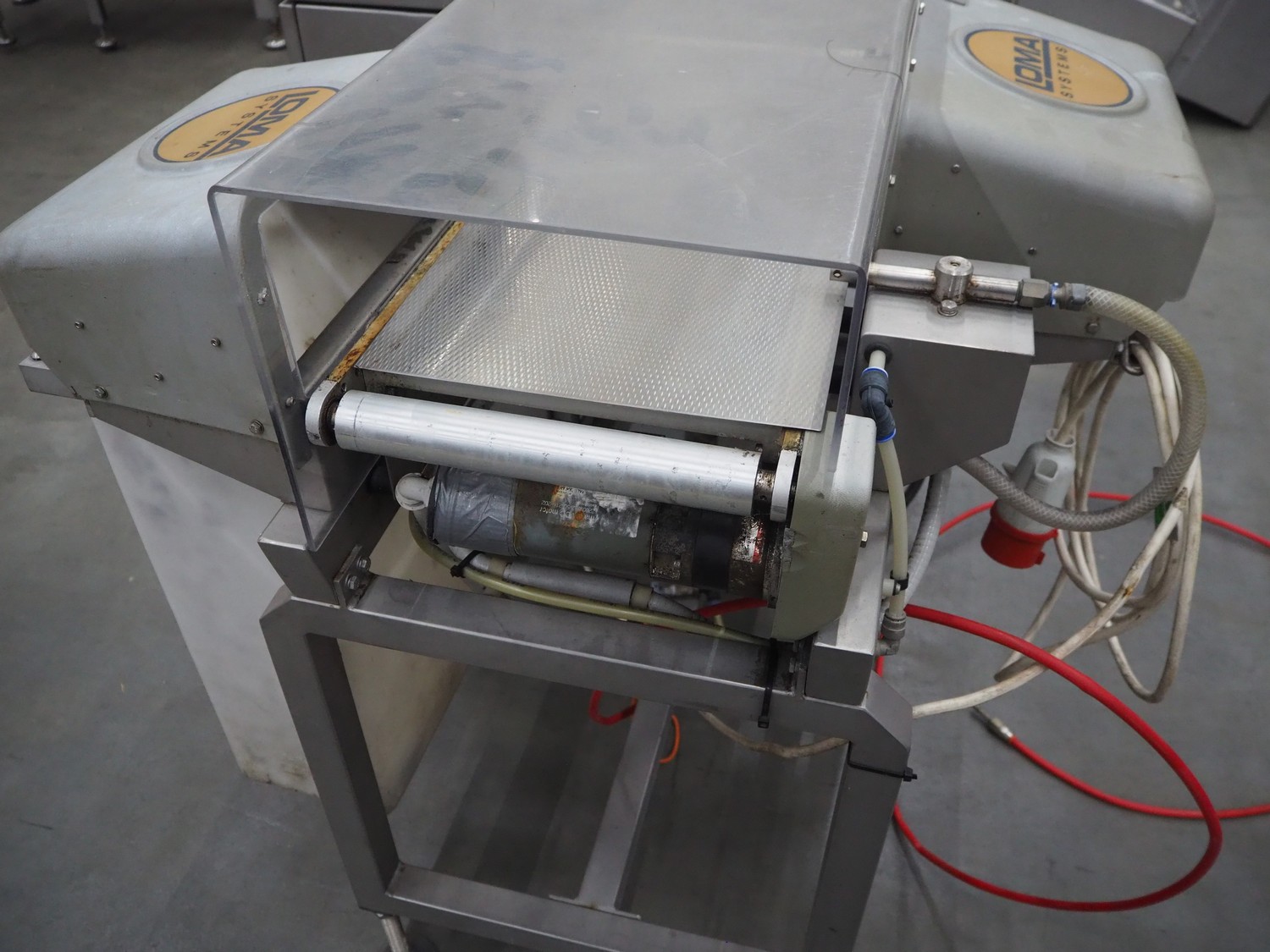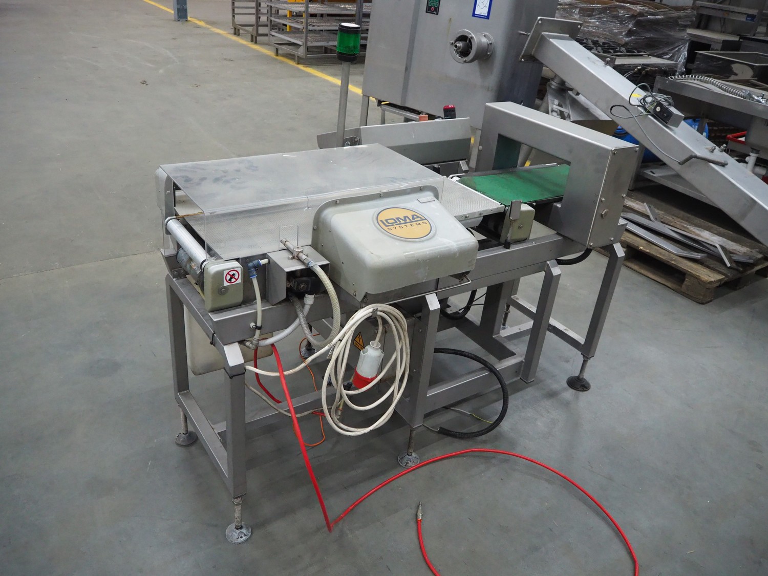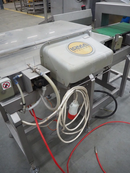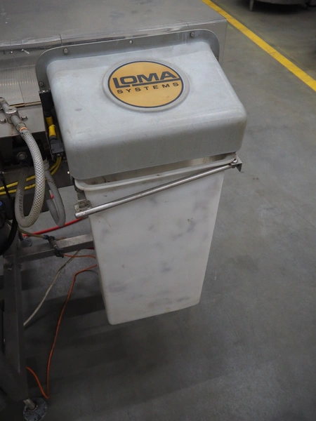 Loma Systems checkweigher with metal detector and rejector, model: 7000 series, serial number: PC39162-31458, year of construction: 2003, 230 V, 1 Ph, 50 Hz, plastic belt, belt width: 250 mm, clearance: 350 mm x 130 mm, total dimensions: 1650 mm x 1000 mm x 1370 mm.