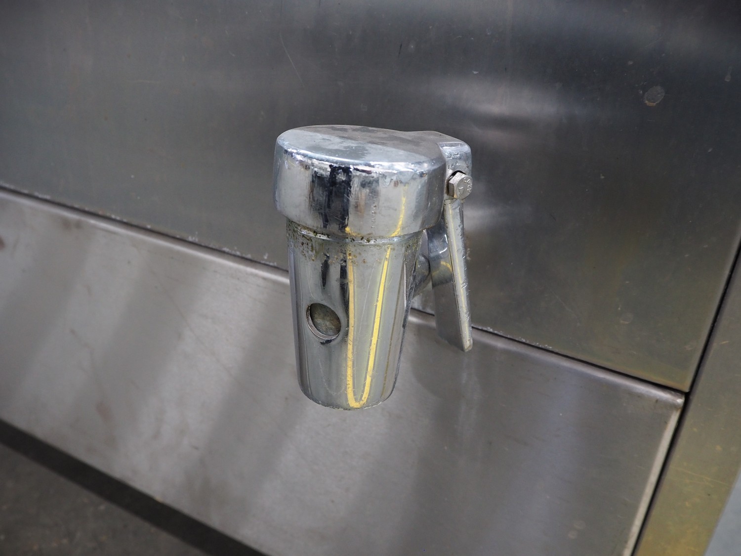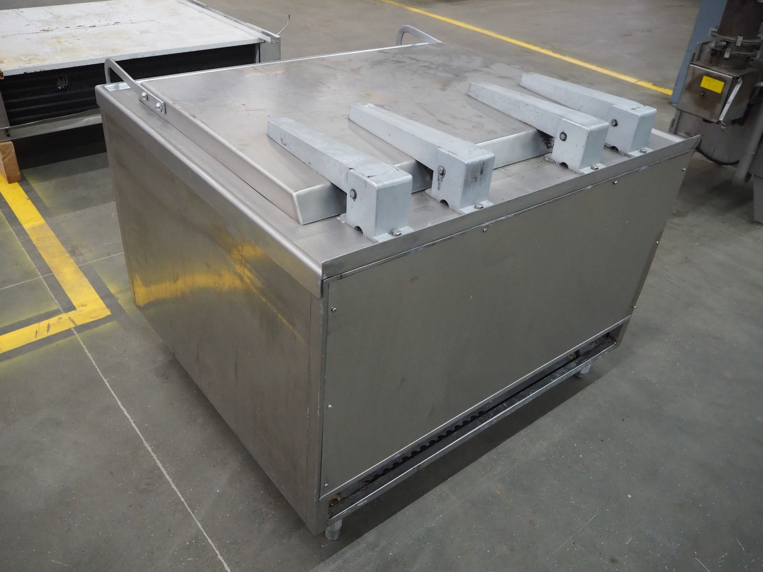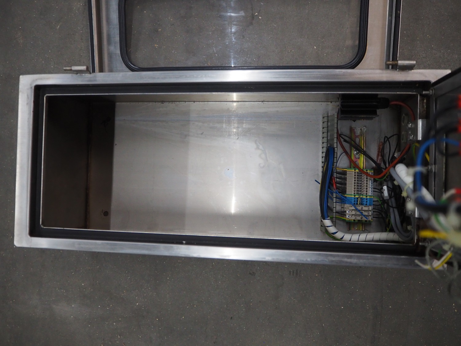 Bastra cooking vessel, gas heated, dimensions inside: 1150 mm x 800 mm x 400 mm, total dimensions: 1360 mm x 1330 mm x 1060 mm. Including switch cabinet, dimensions: 700 mm x 300 mm x 340 mm.
