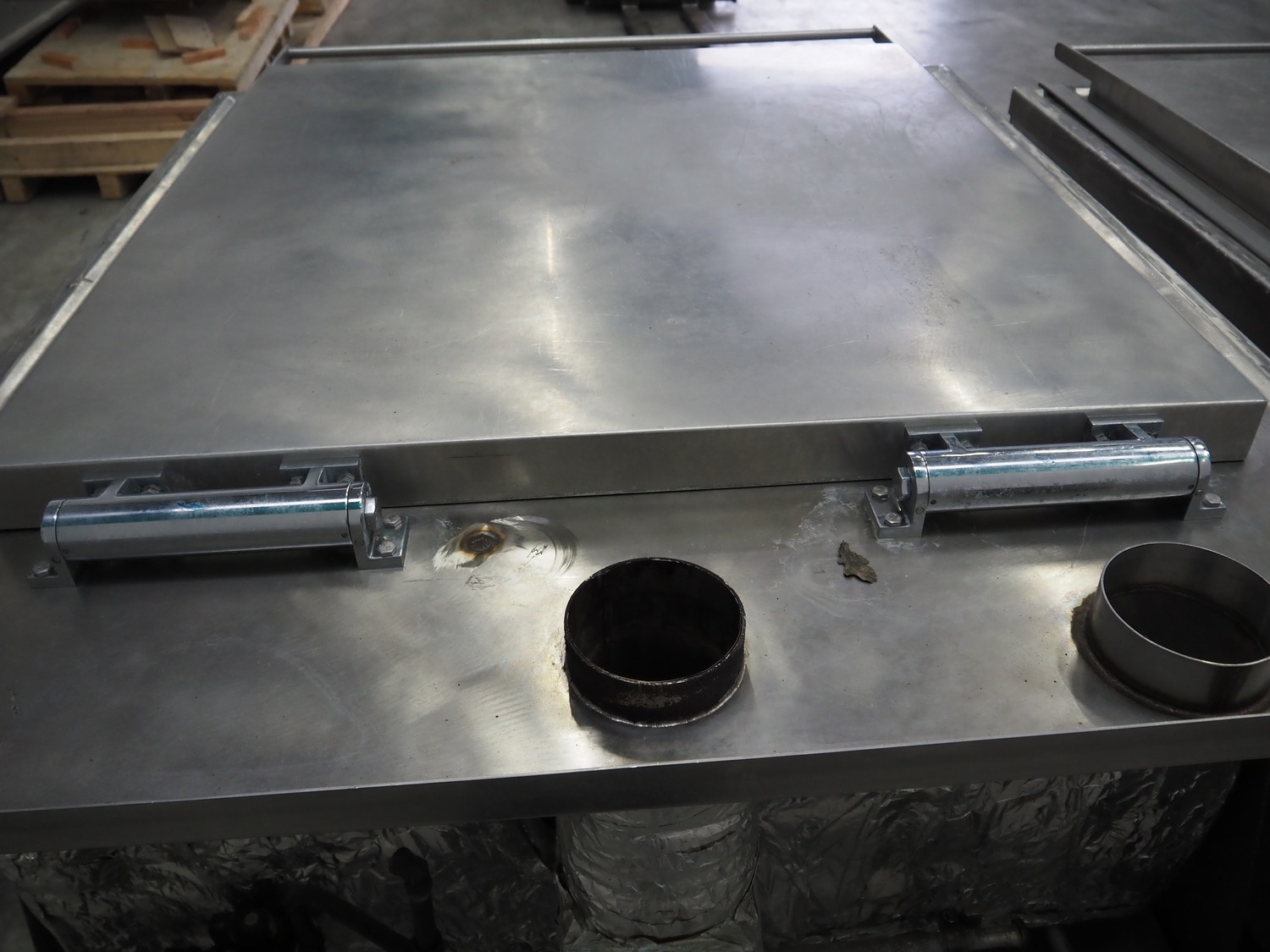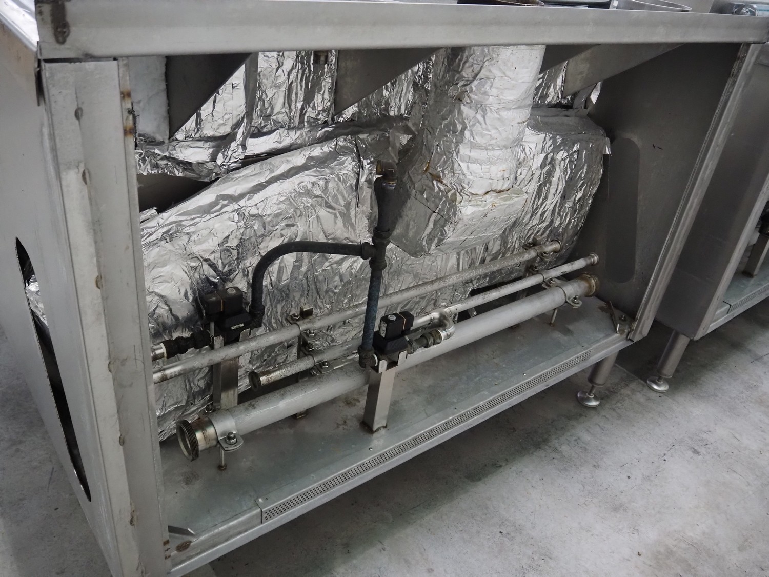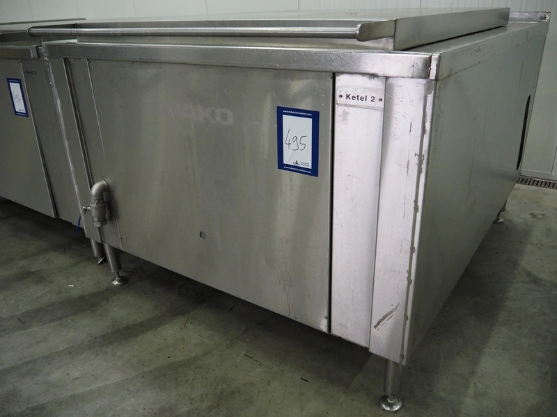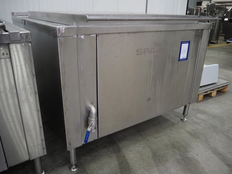 Spako cooking vessel, type number: RHU 1100 V, year of construction: 2010, natural gas, 230 V, 50 Hz, 60 W, volume: 1100 liter, dimensions inside: 1400 mm x 1300 mm x 600 mm, total dimensions: 2300 mm x 1670 mm x 1280 mm. Including: Spako parts for cooking vessel, dimensions switch cabinet: 830 mm x 570 mm x 330 mm, dimensions pallet with parts: 3450 mm x 1000 mm x 600 mm.