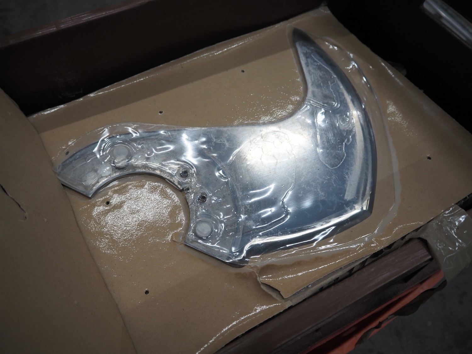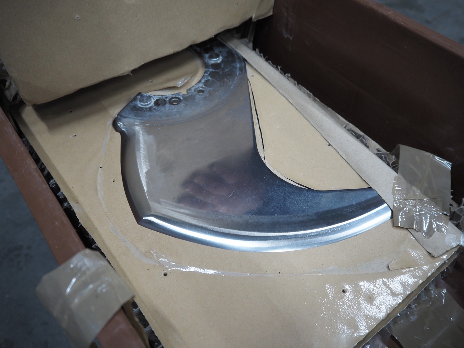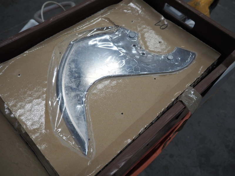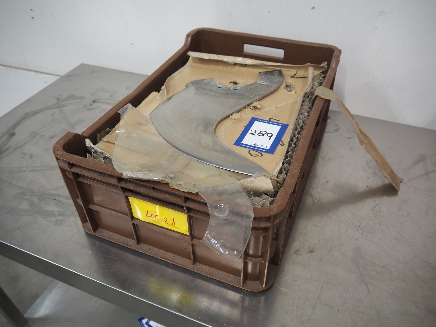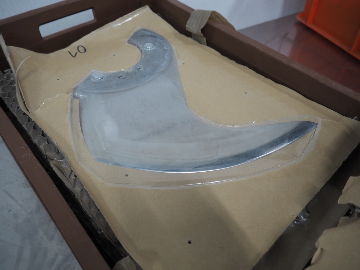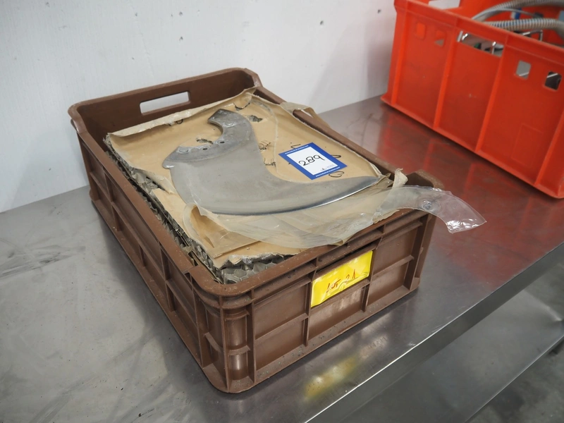 Plastic crate with 6 knives for Laska cutter, dimensions: 600 mm x 400 mm x 200 mm.