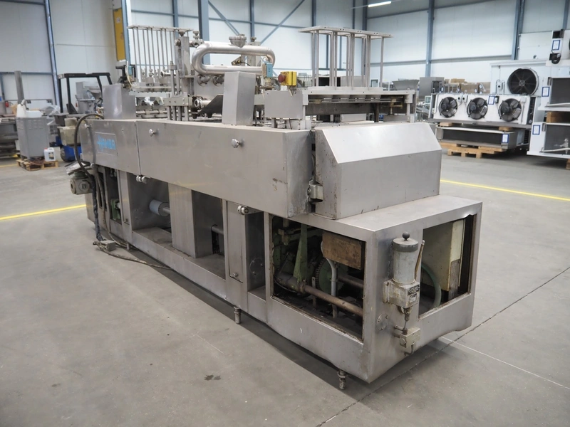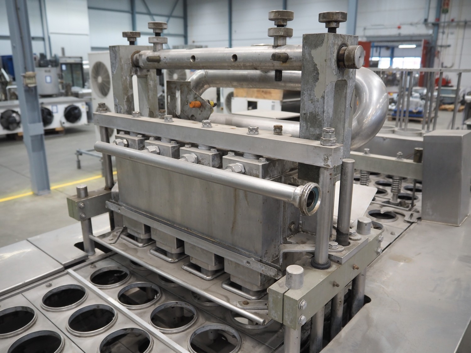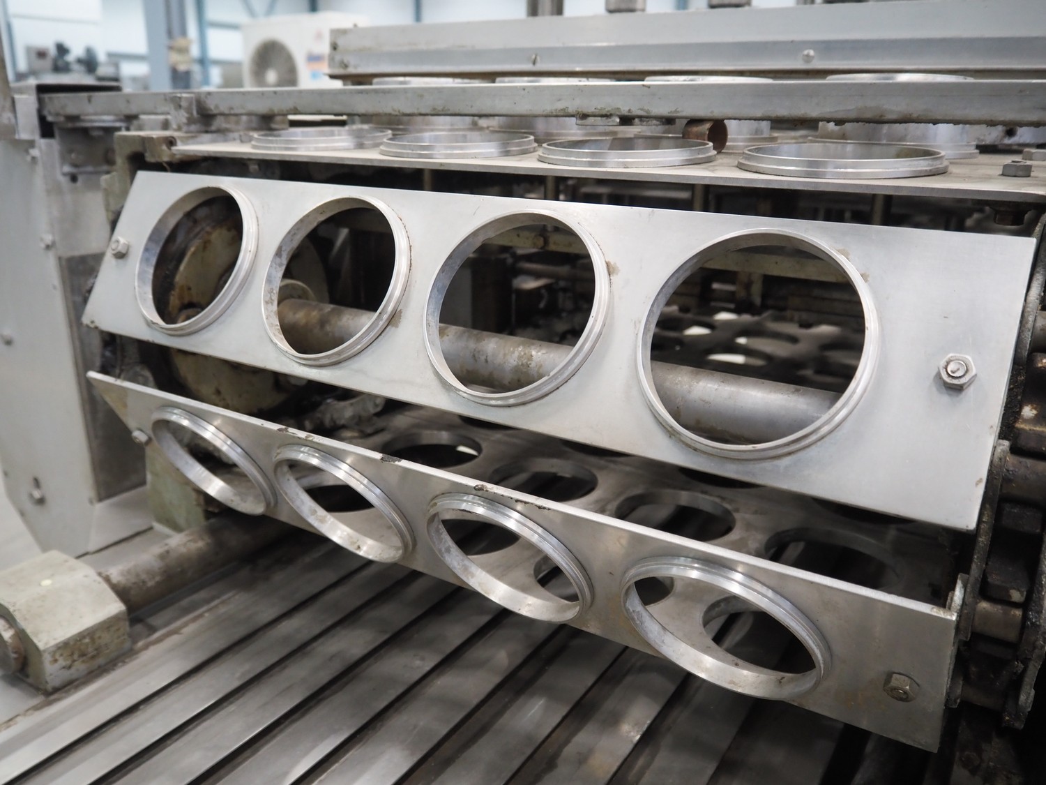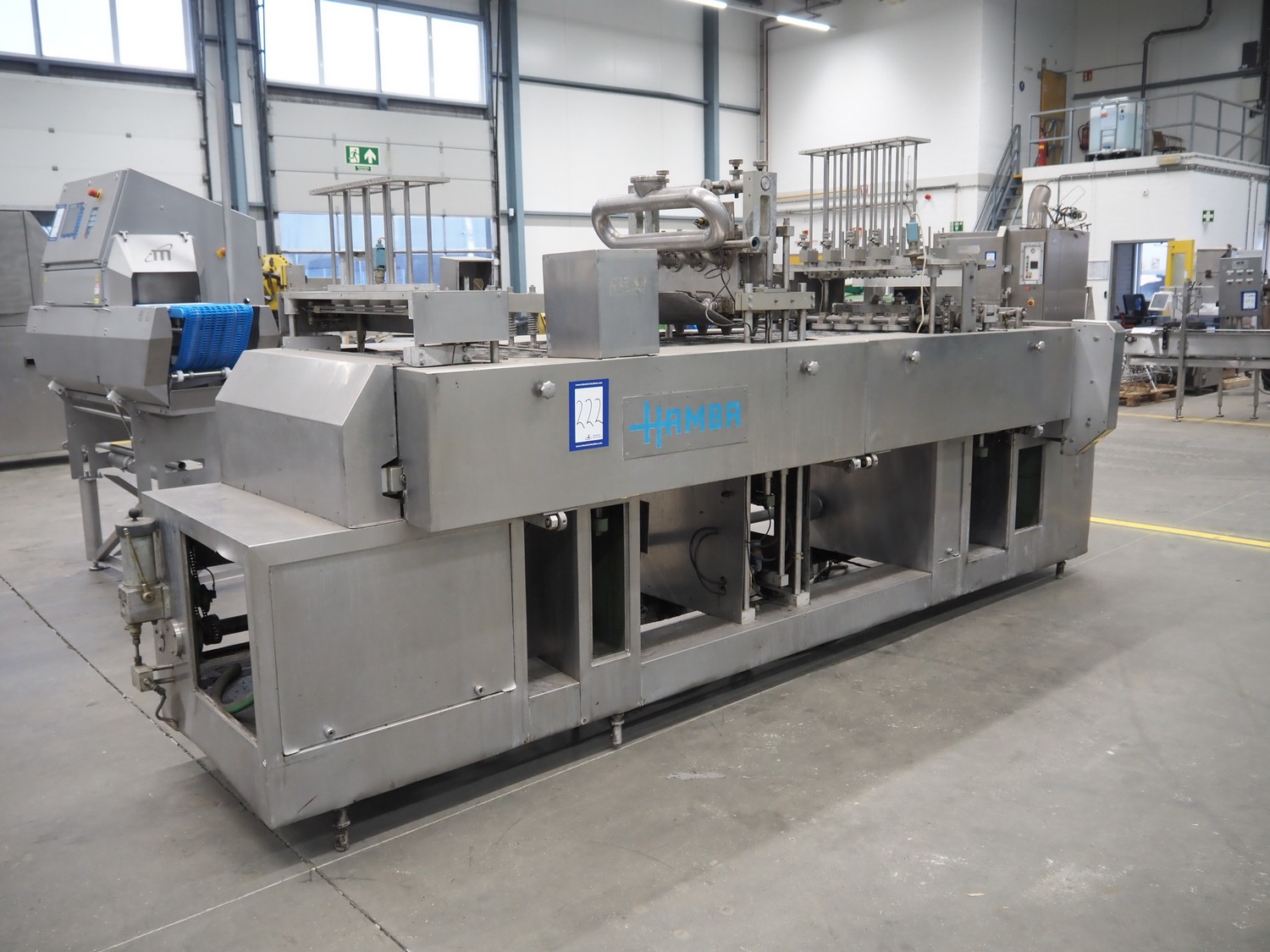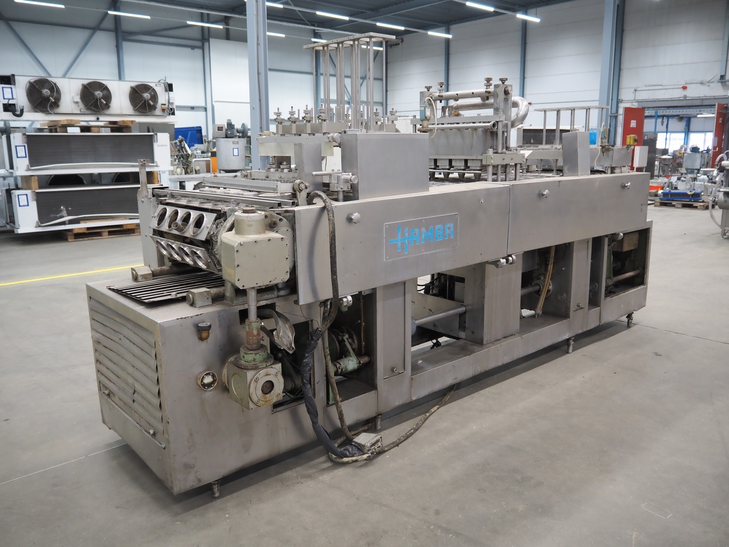 Hamba 4 lanes cup filling machine, type: BK 6004, machine number: 44045, year of construction: 1980, 220/80 V, 50 Hz, 16-20 A, diameter cup: 100 mm, total dimensions: 4300 mm x 1500 mm x 2150 mm.