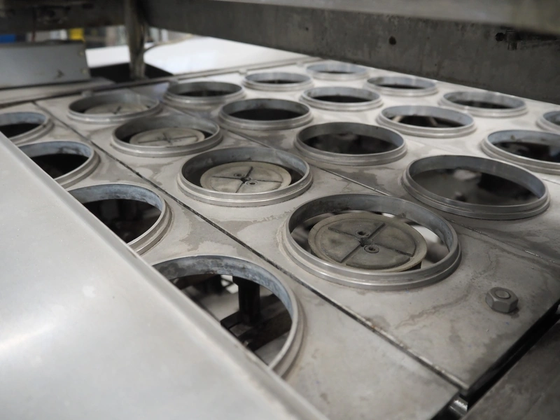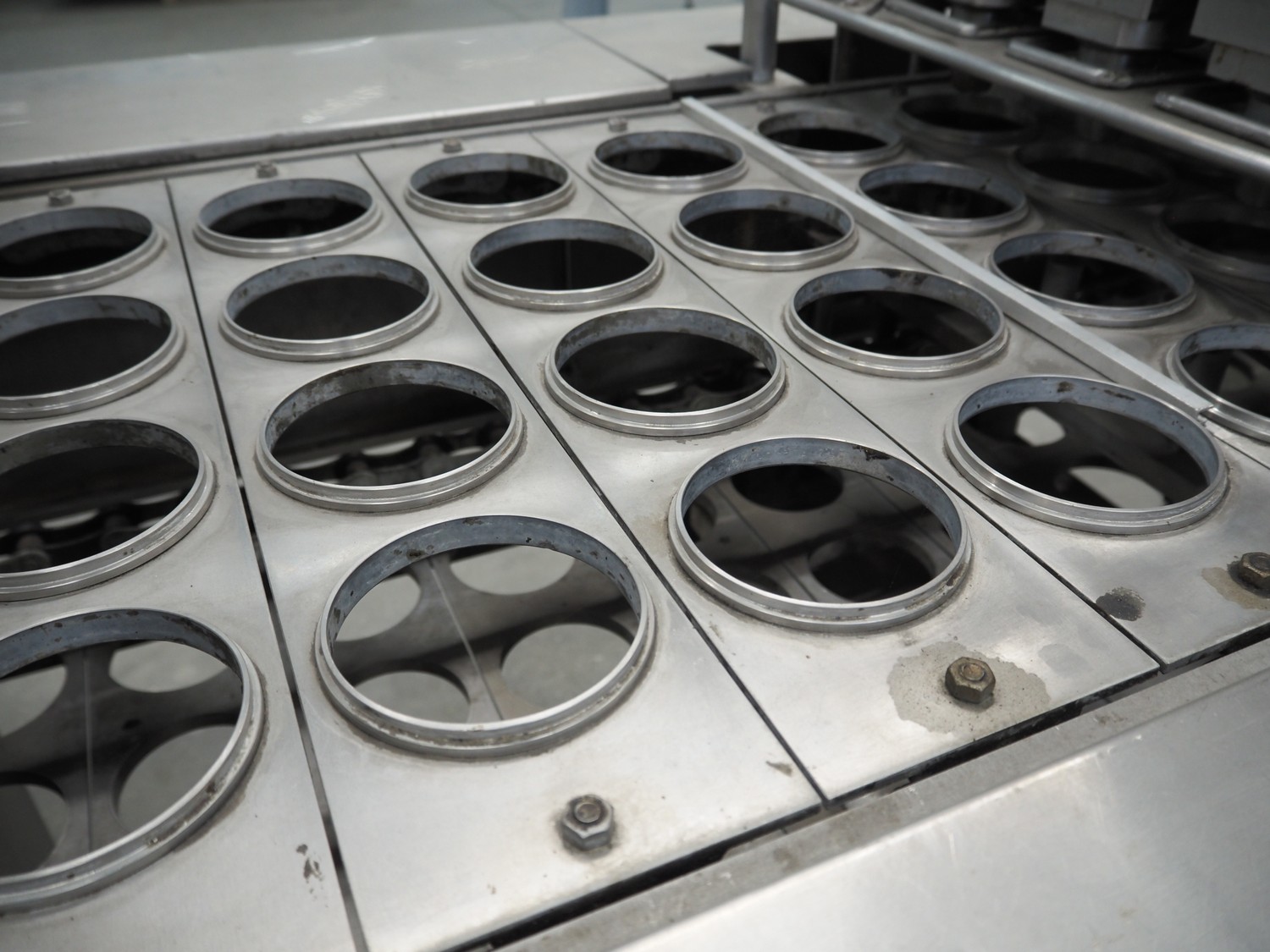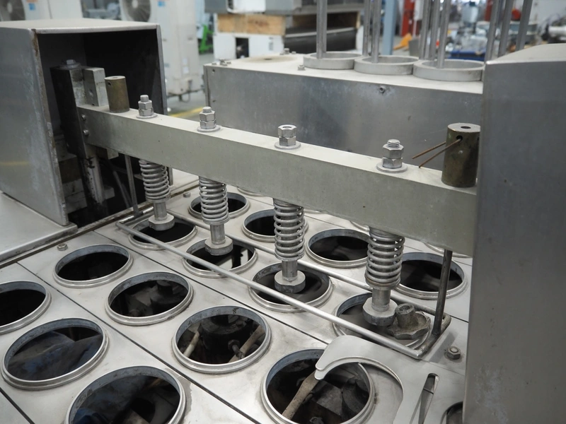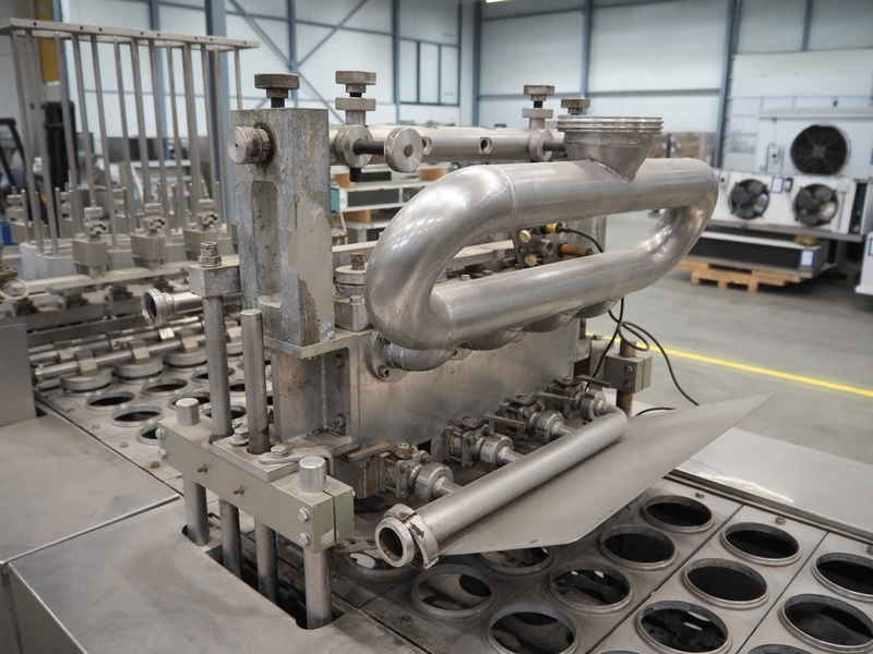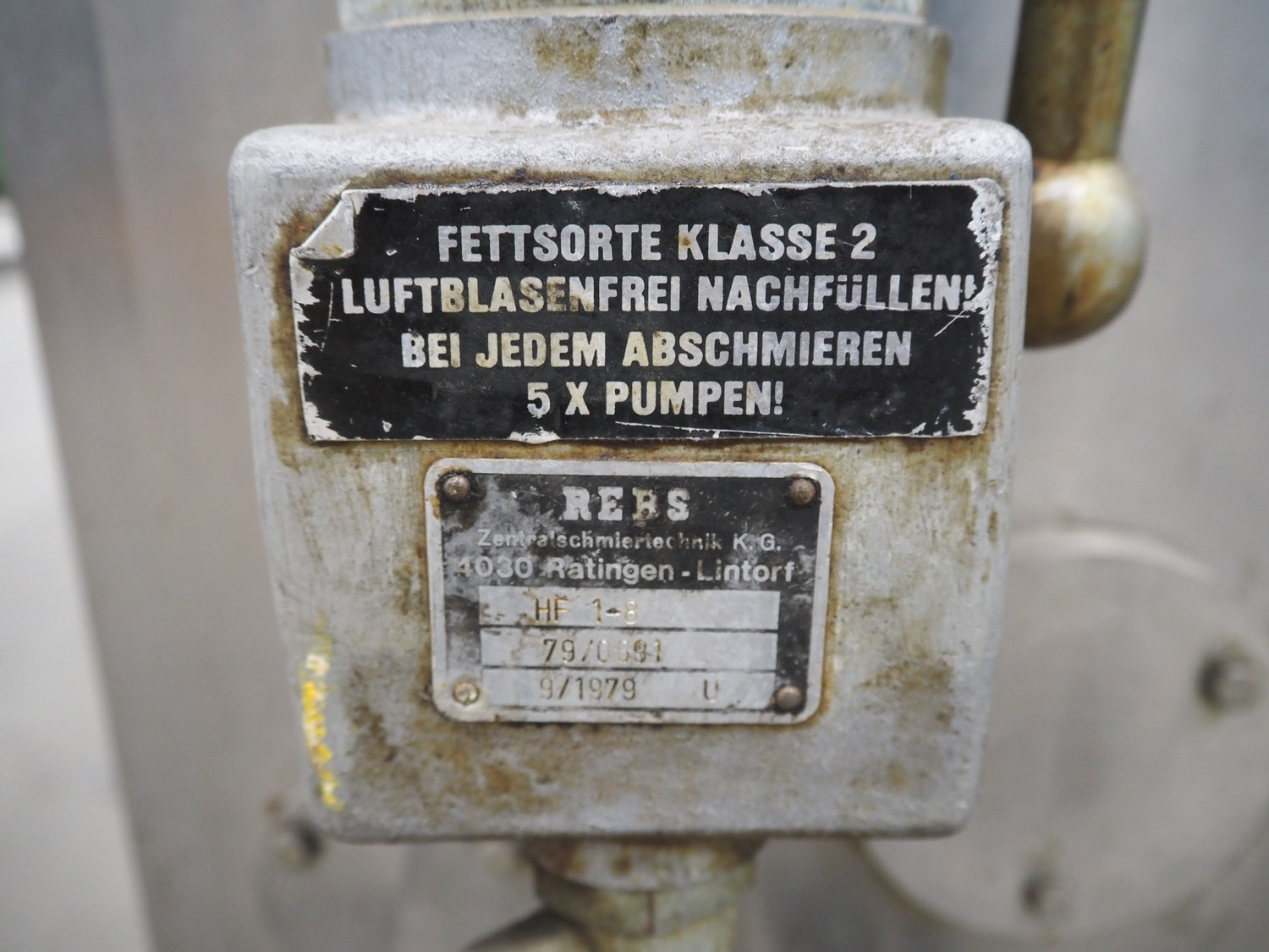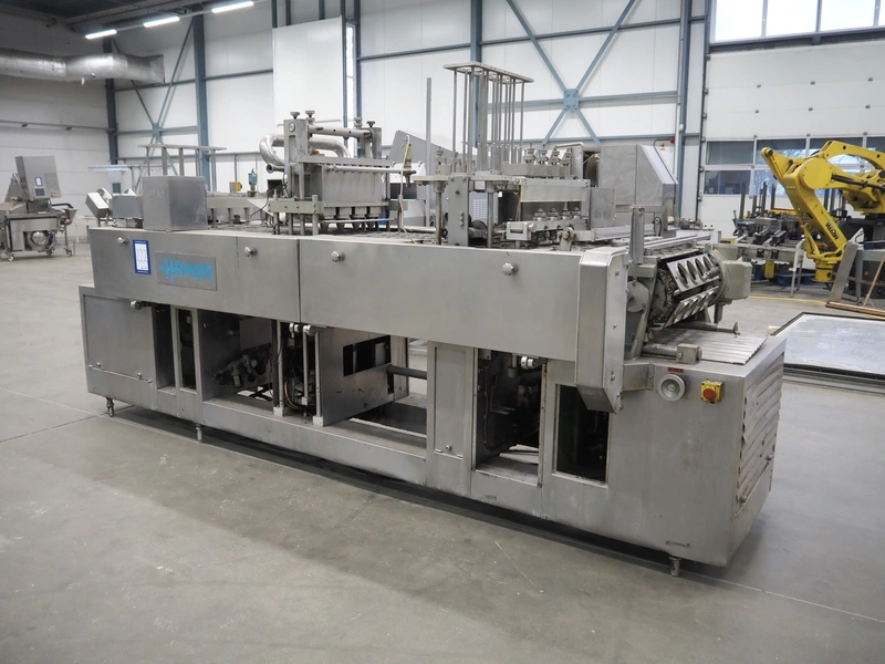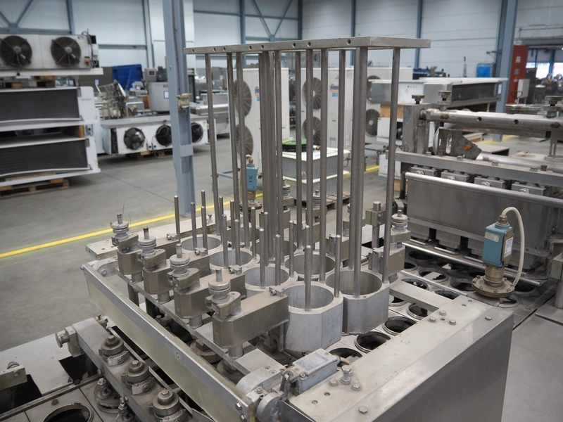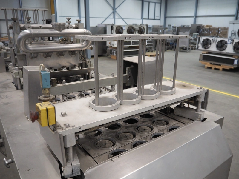 Hamba 4 lanes cup filling machine, type: BK 6004, machine number: 44045, year of construction: 1980, 220/80 V, 50 Hz, 16-20 A, diameter cup: 100 mm, total dimensions: 4300 mm x 1500 mm x 2150 mm.
