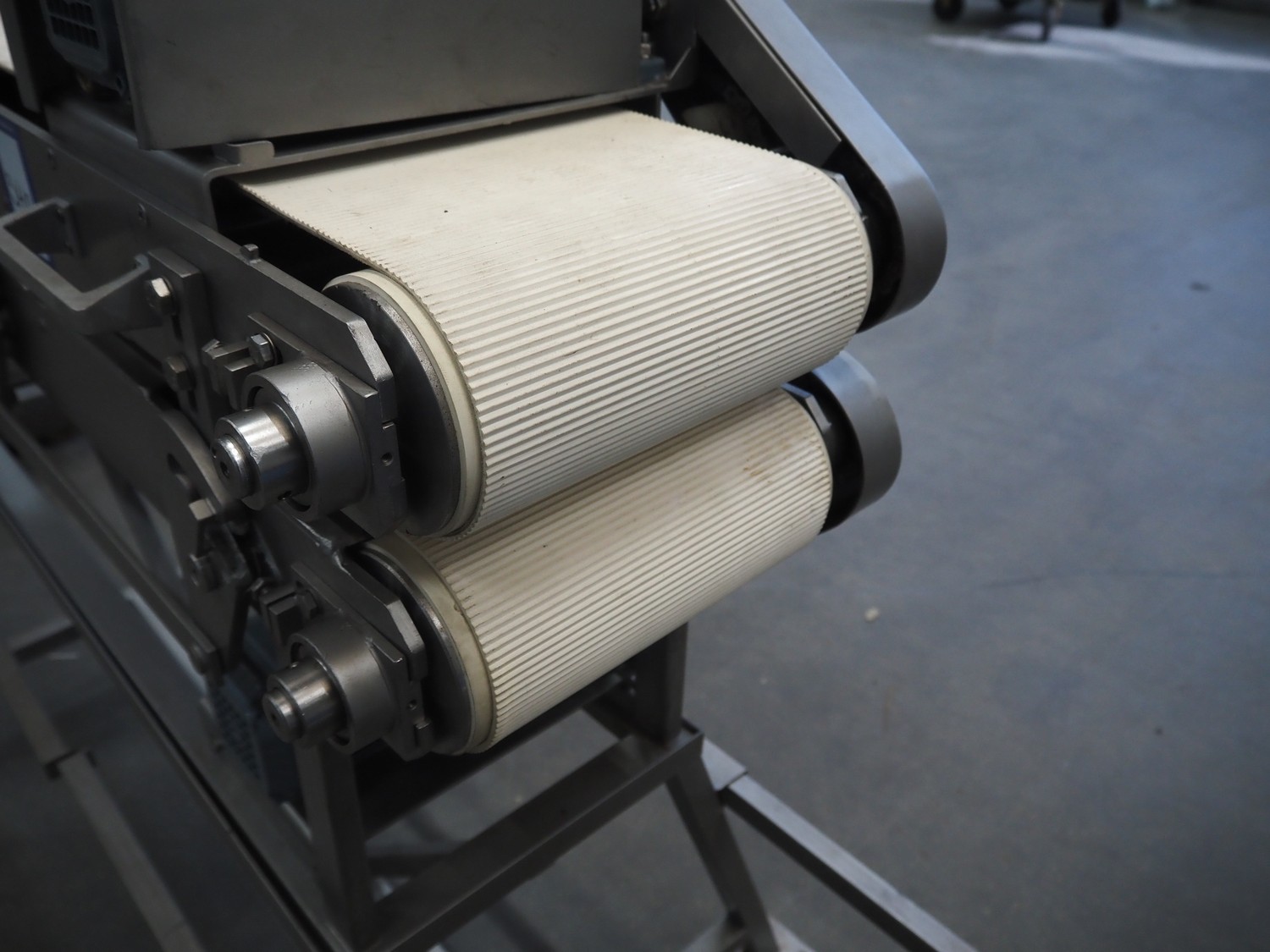 Flattener, plastic belt, belt width: (2x) 250 mm, total dimensions: 1500 mm 730 mm x 1200 mm.