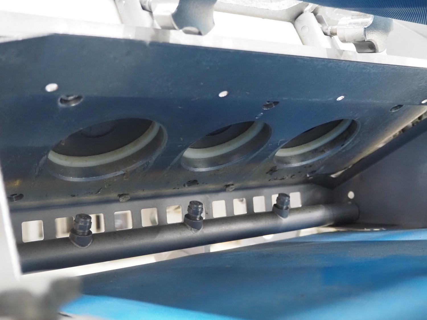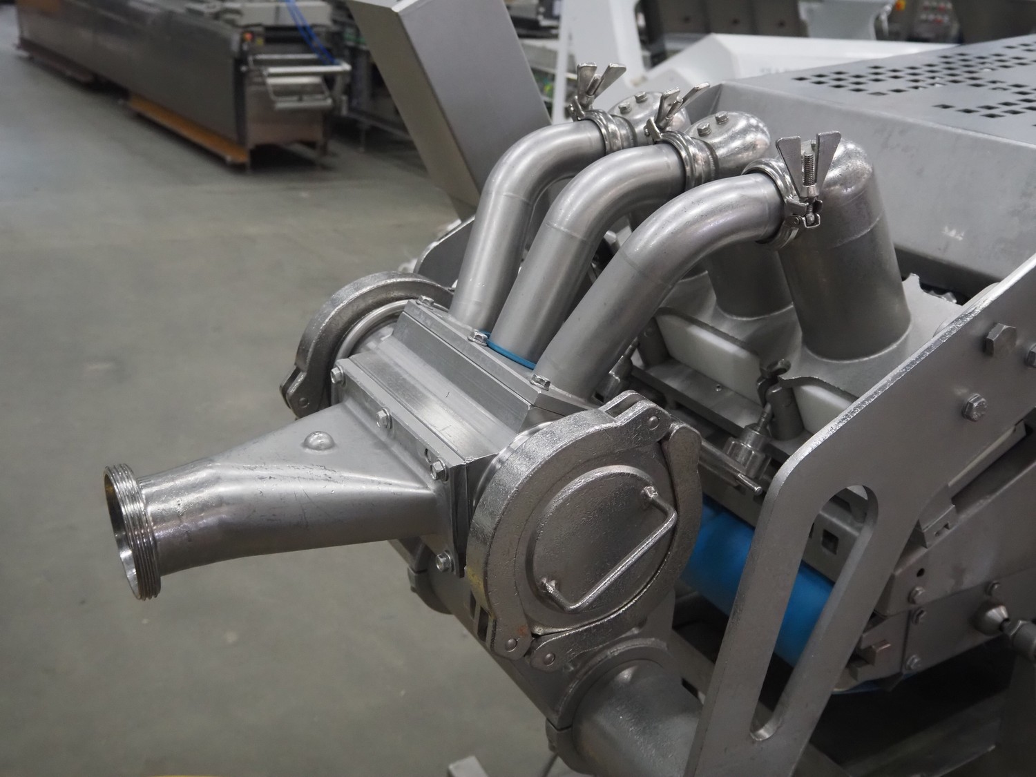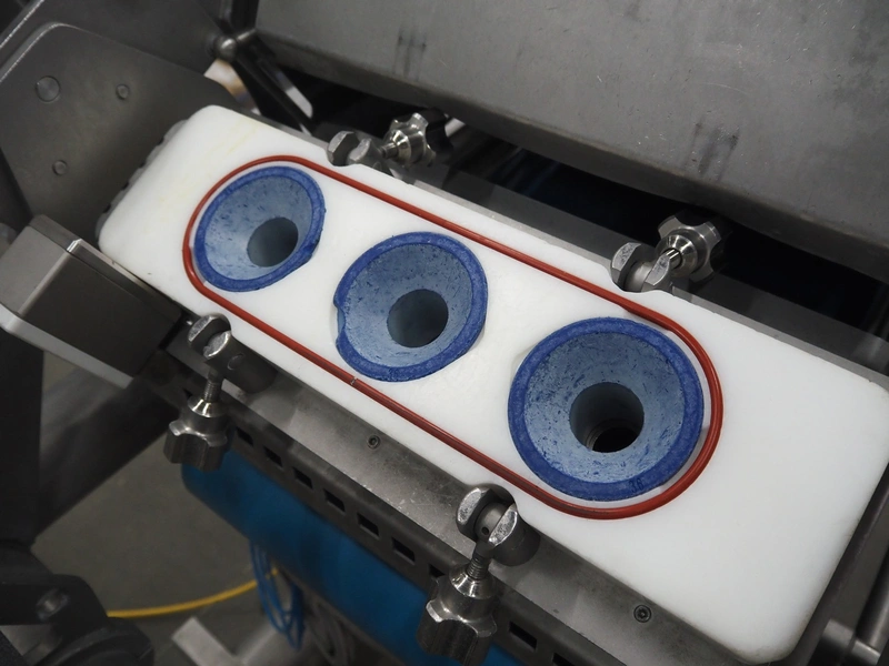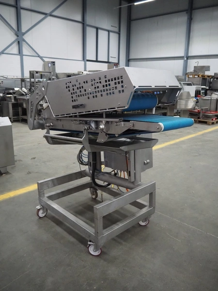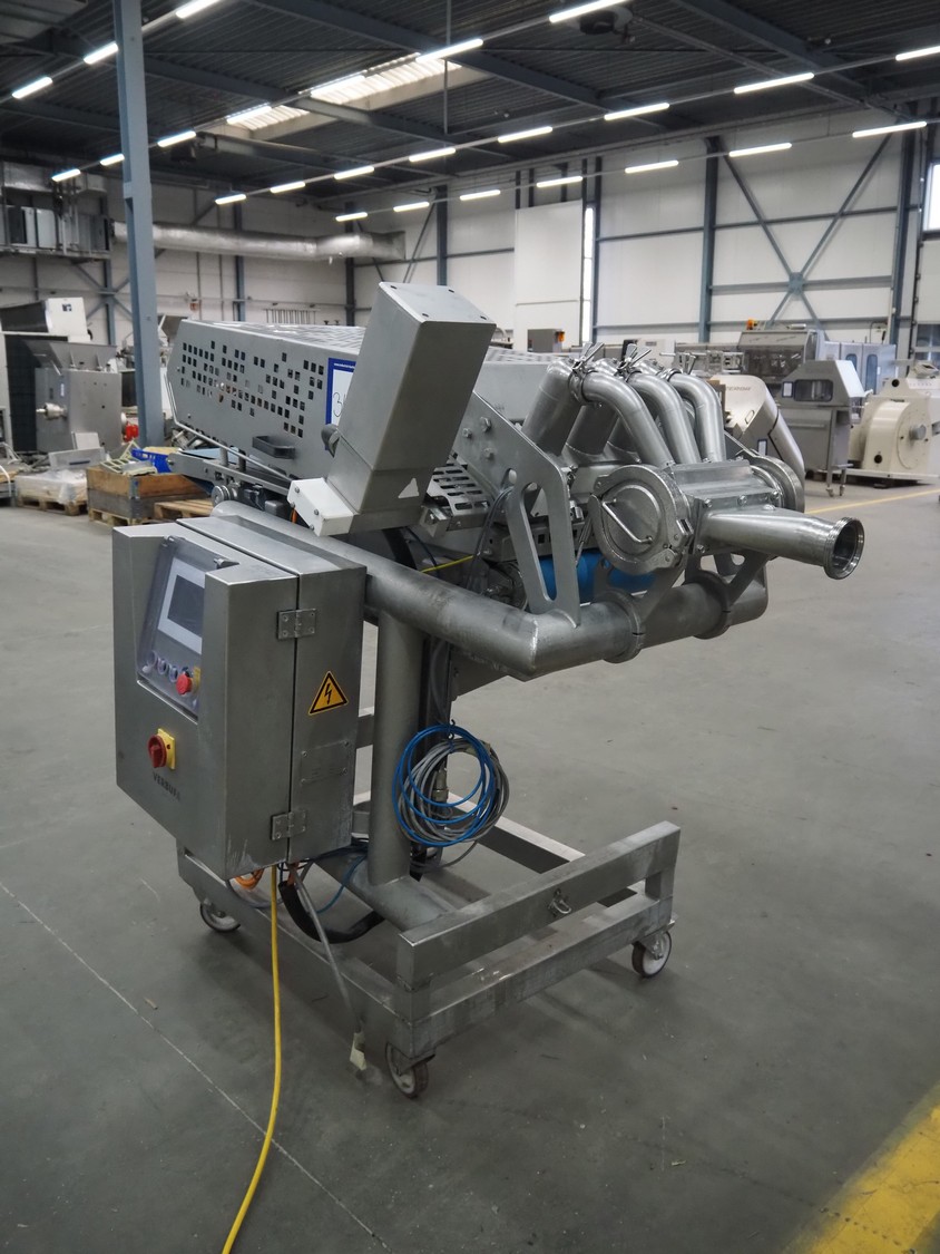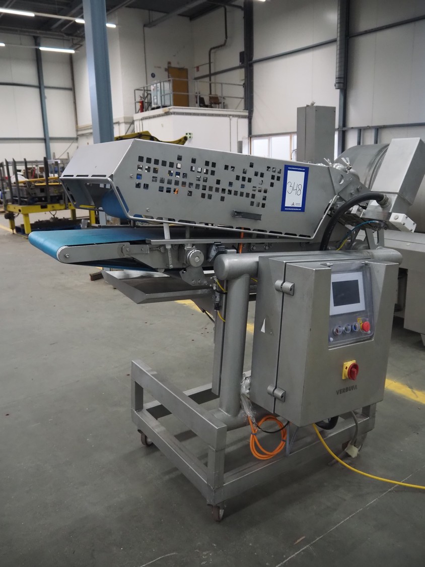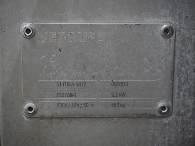 Verbufa mobile forming machine, type: 51478-A-3017, serial number: 212730-1, year of construction: 09/2011, 230 V, 50 Hz, 10 A, 2.2 kW, weight: 580 kg, plastic belt, belt width: (2x) 400 mm, 3 heads, diameter outfeed: Ø 35 mm, foot controlled, total dimensions: 750 mm x 600 mm x 1000.