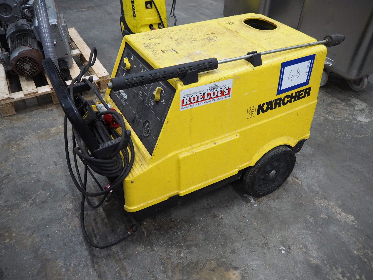 Kärcher mobile high pressure cleaner, type: HDS 990, year of construction: 1992, water capacity: 3.3 liter, dimensions: 1260 mm x 650 mm x 800 mm.