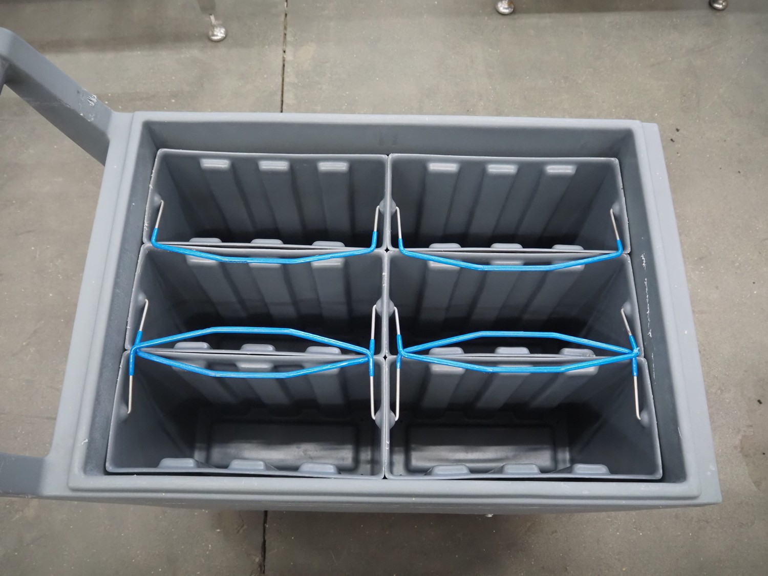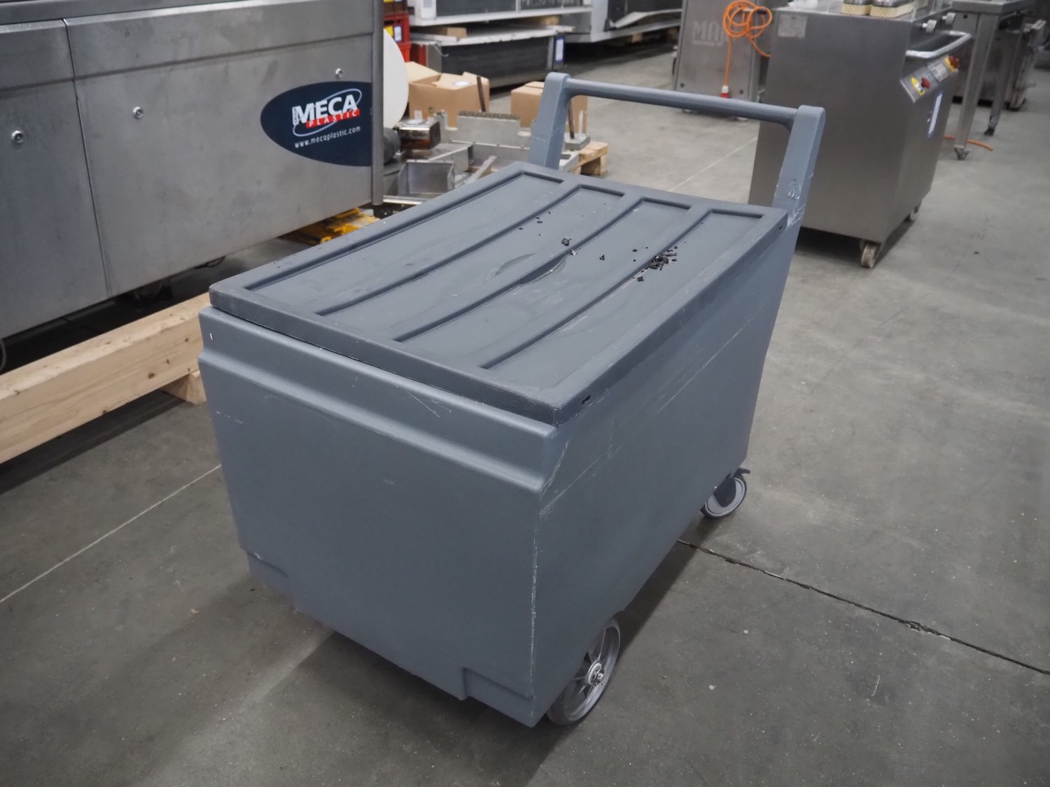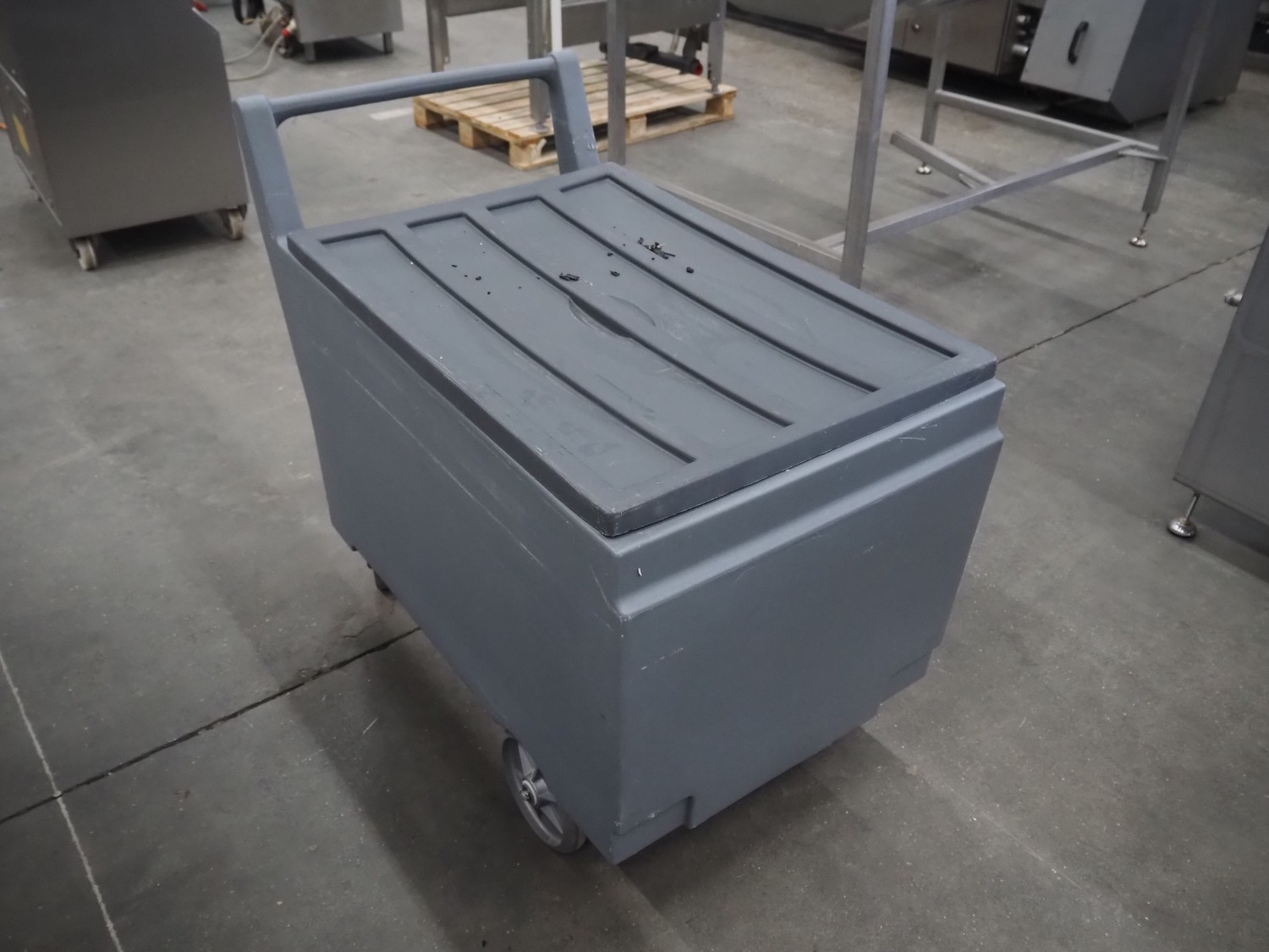Follet ice storage with cart, clearance: 570 mm x 270 mm, total dimensions: 1050 mm x 800 mm x 1700 mm.