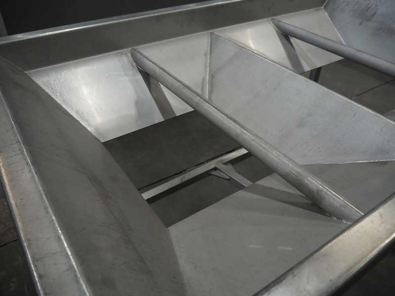 S/s infeed hopper, dimensions: 1600 mm x 1000 mm x 1000 mm.