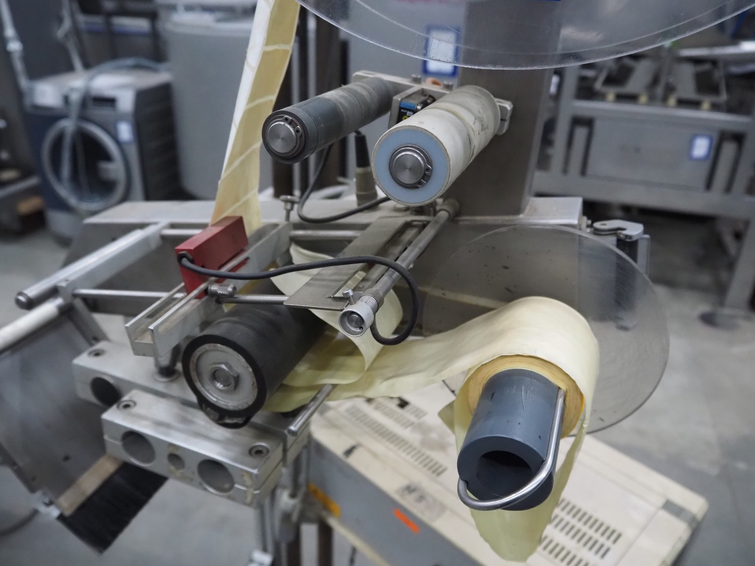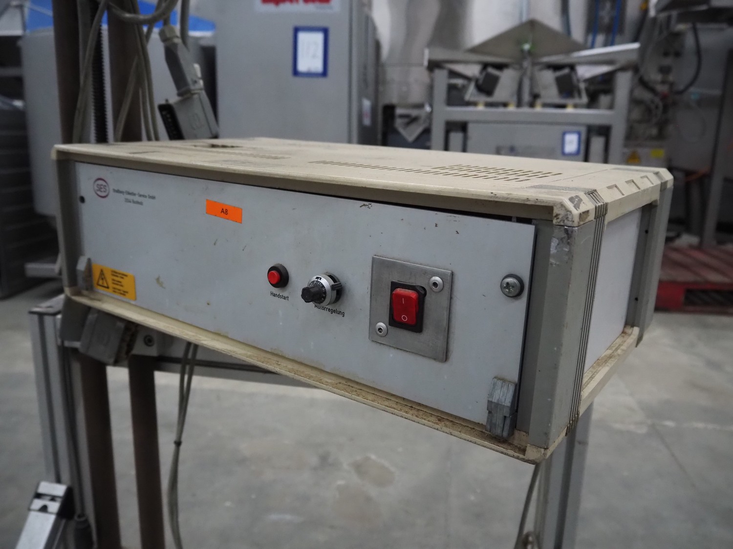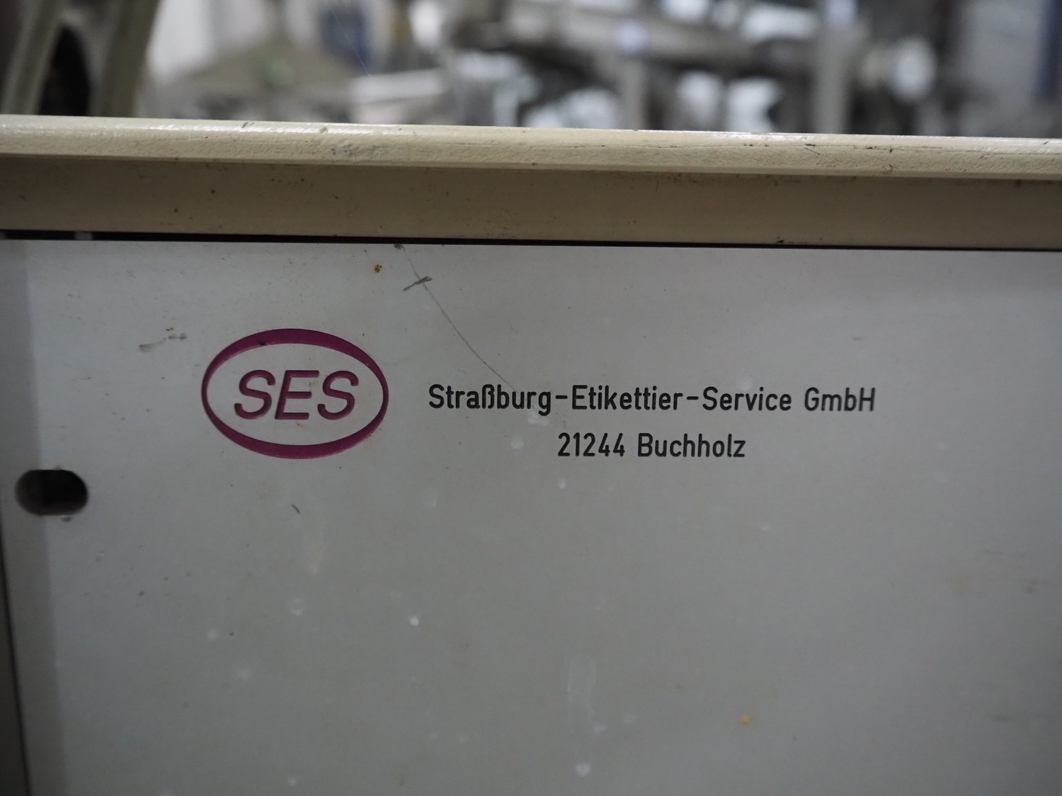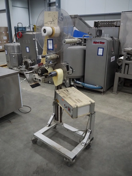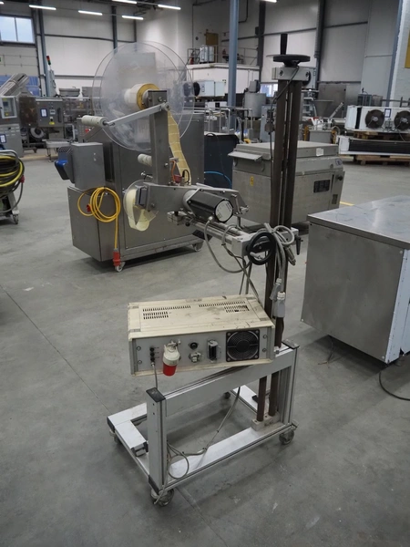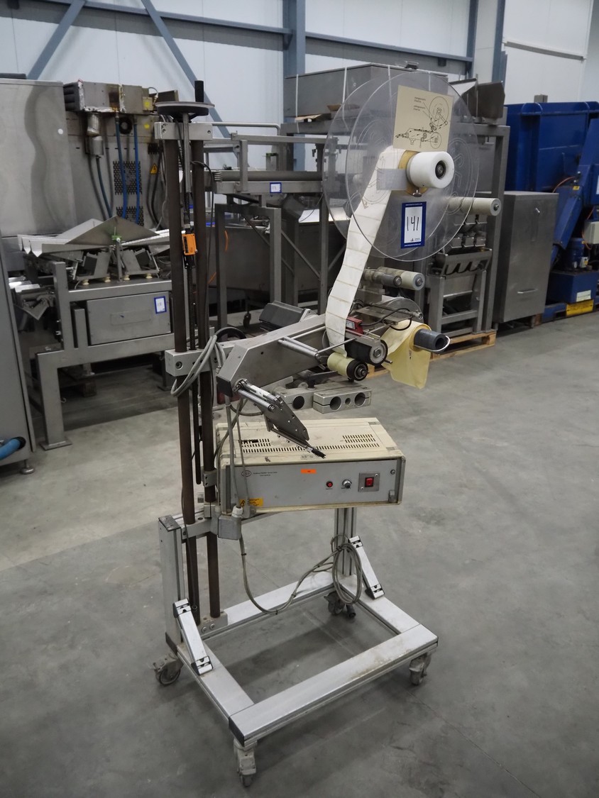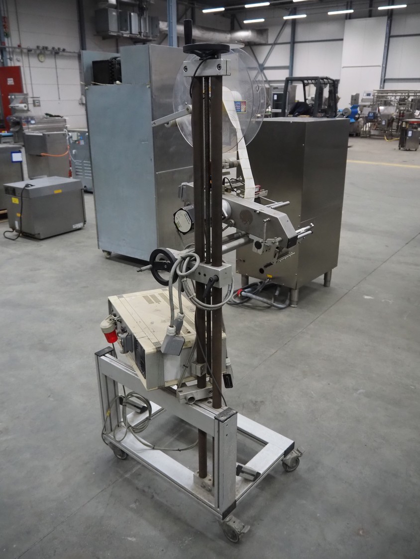 SES mobile labelling machine, dimensions: 750 mm x 750 mm x 1760 mm.