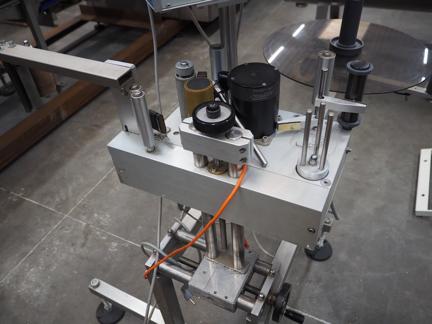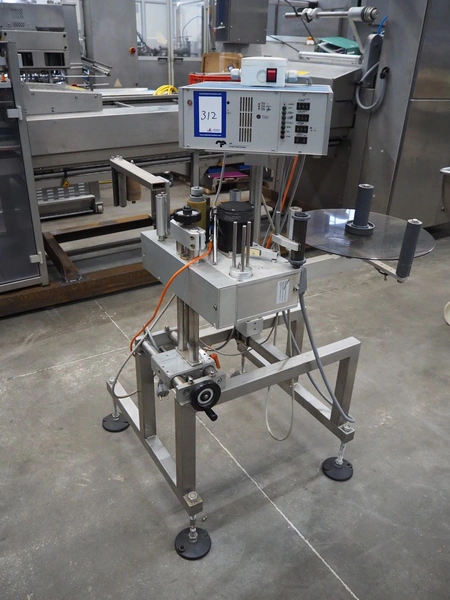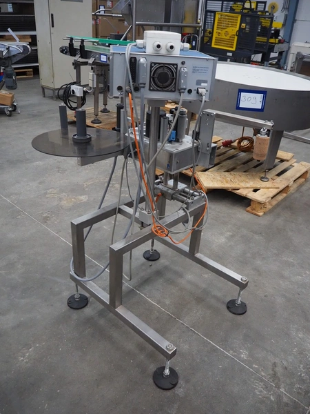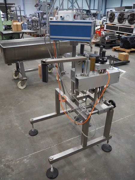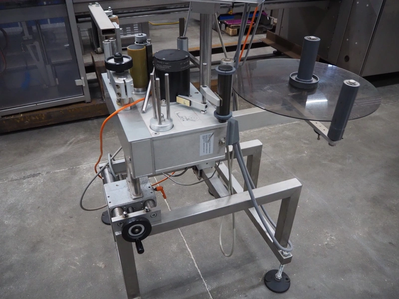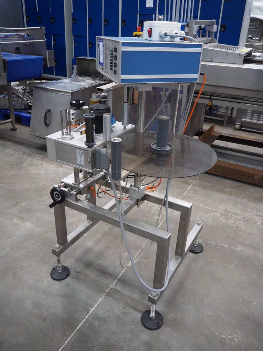 MR Etikettiertechnik labelling machine, type: MB000-00-00, plastic belt, belt width: 380 mm, total dimensions: 1250 mm x 1300 mm x 1350 mm.