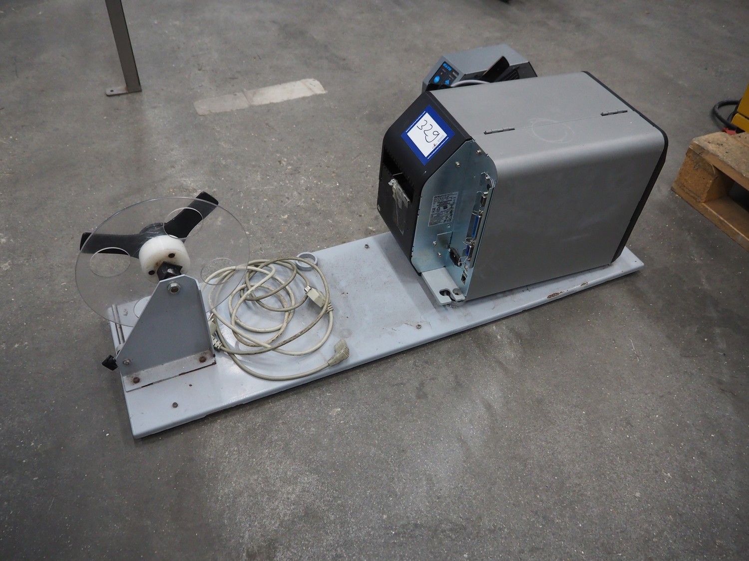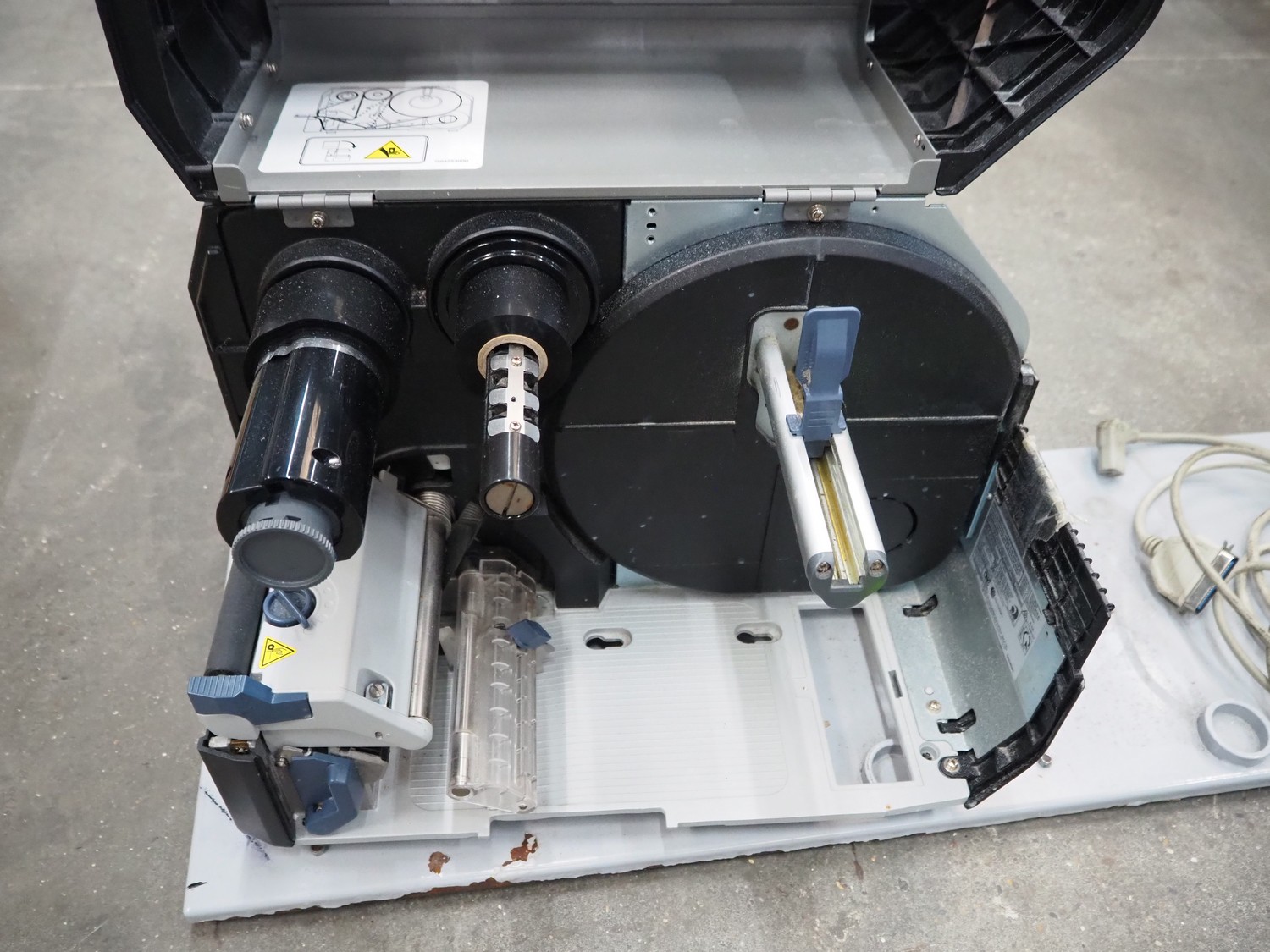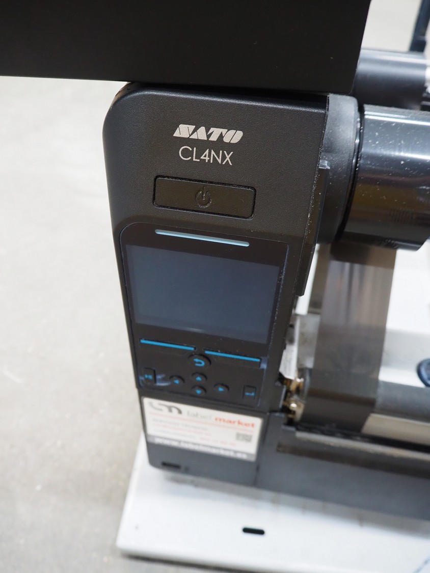 Sato label printer, model: CL4NX, dimensions: 1000 mm x 300 mm x 350 mm.