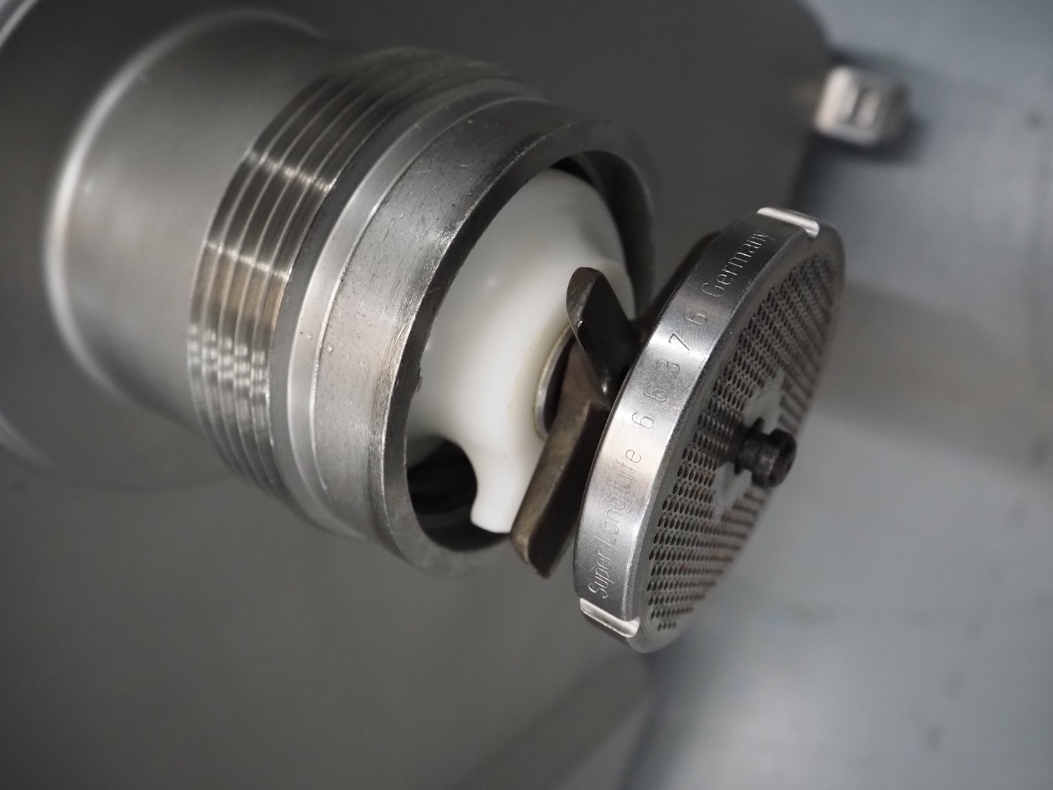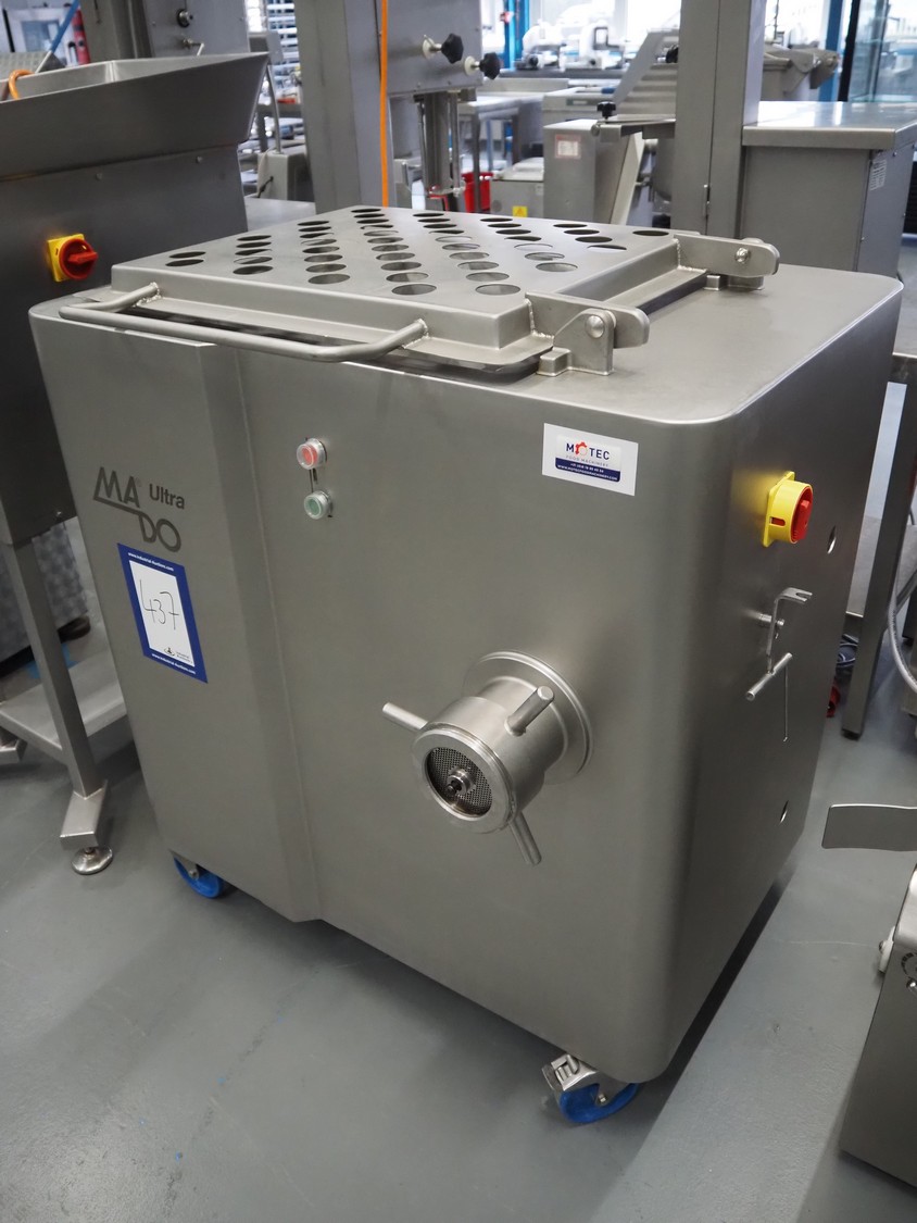 Mado mobile grinder, type: MEW 620, number: 1530074, 230/400 V, 50 Hz, 11.1/6.4 A, 3 kW, plate diameter: 98 mm, total dimensions: 1060 mm x 870 mm x 1160 mm.