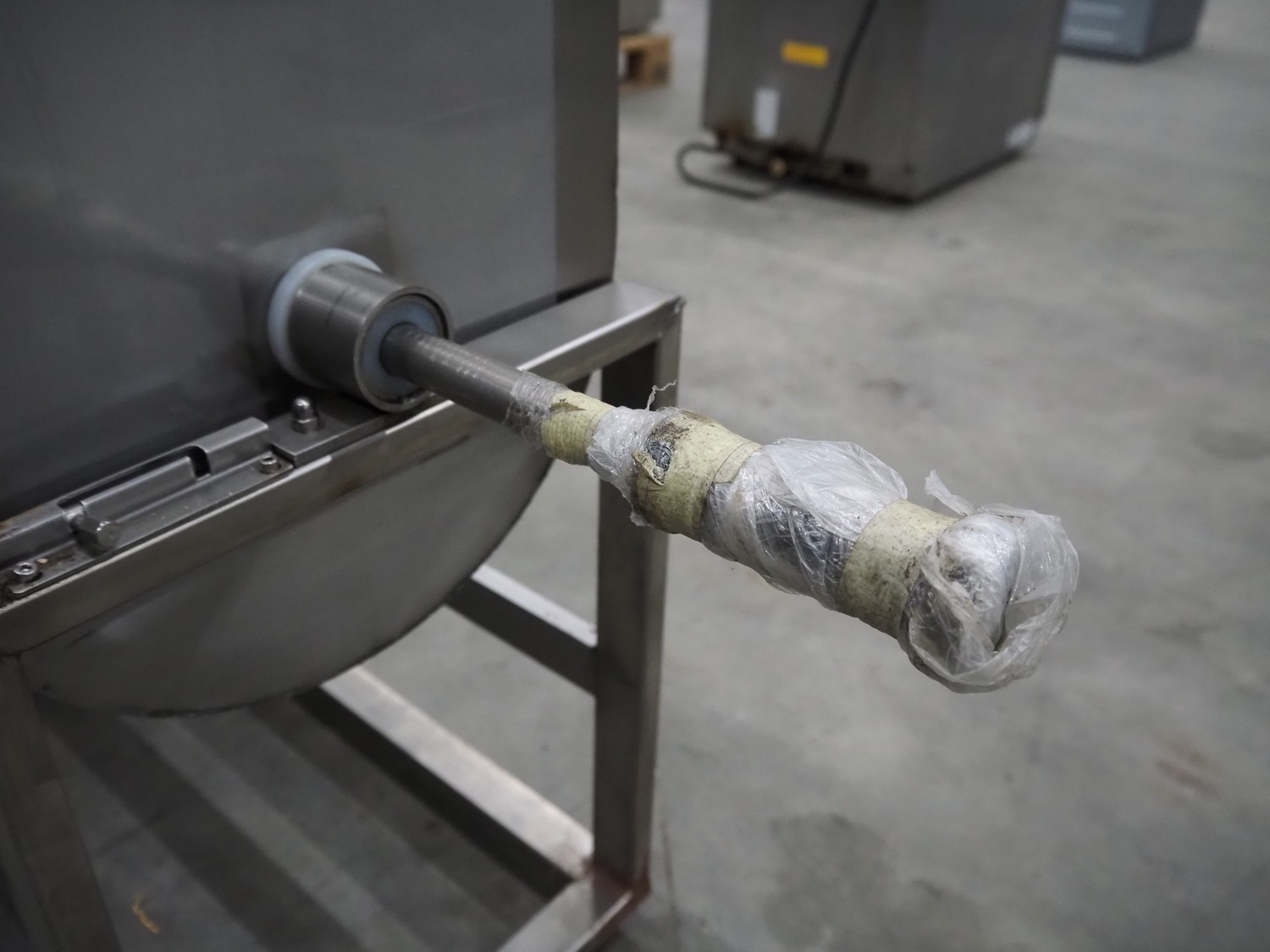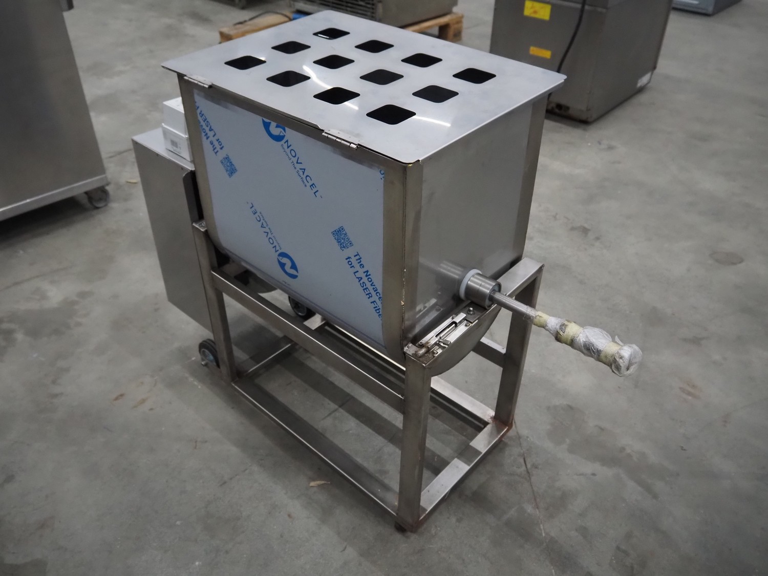 Mobile tiltable mixer, dimensions inside: 500 mm x 345 mm x 480 mm, total dimensions: 1100 mm x 400 mm x 820 mm.