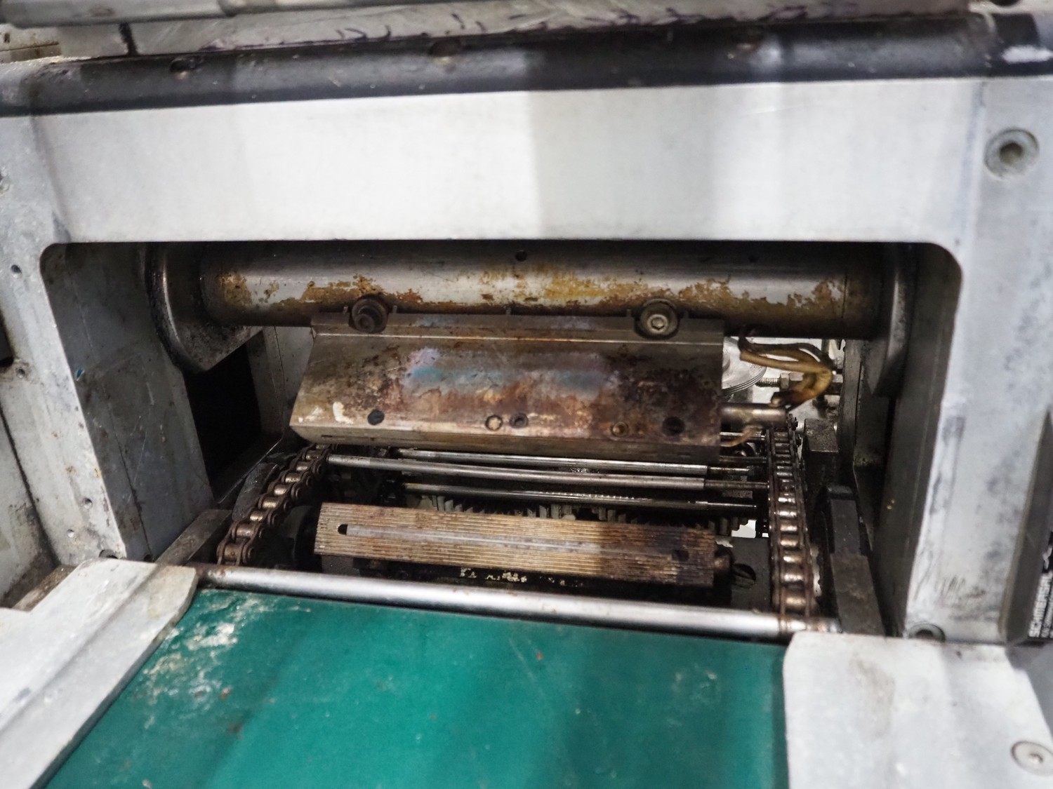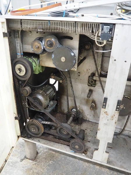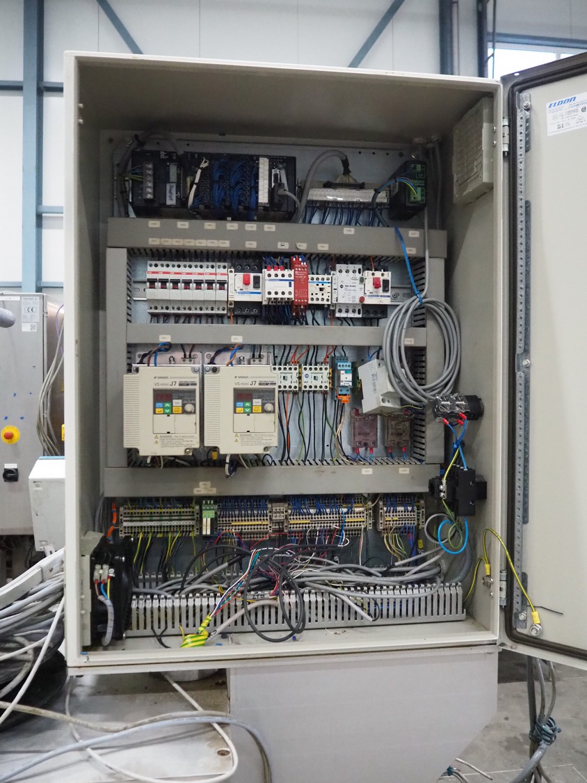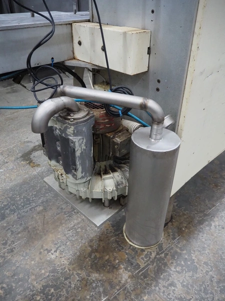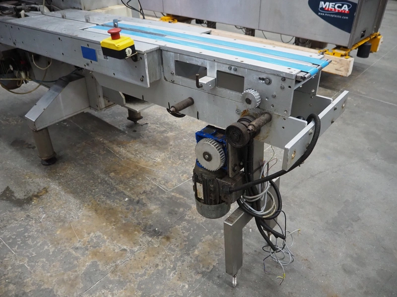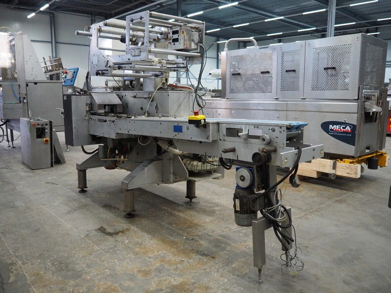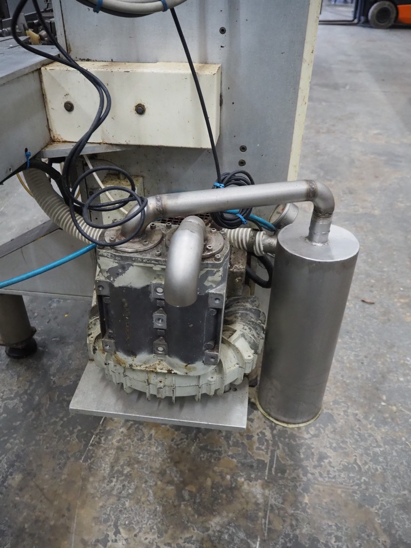 Tevopharm flowpacker with ZodiacES coding attachment, seal width: 190 mm, plastic belt, belt width: 250 mm, total dimensions: 3650 mm x 1150 mm x 2100 mm.