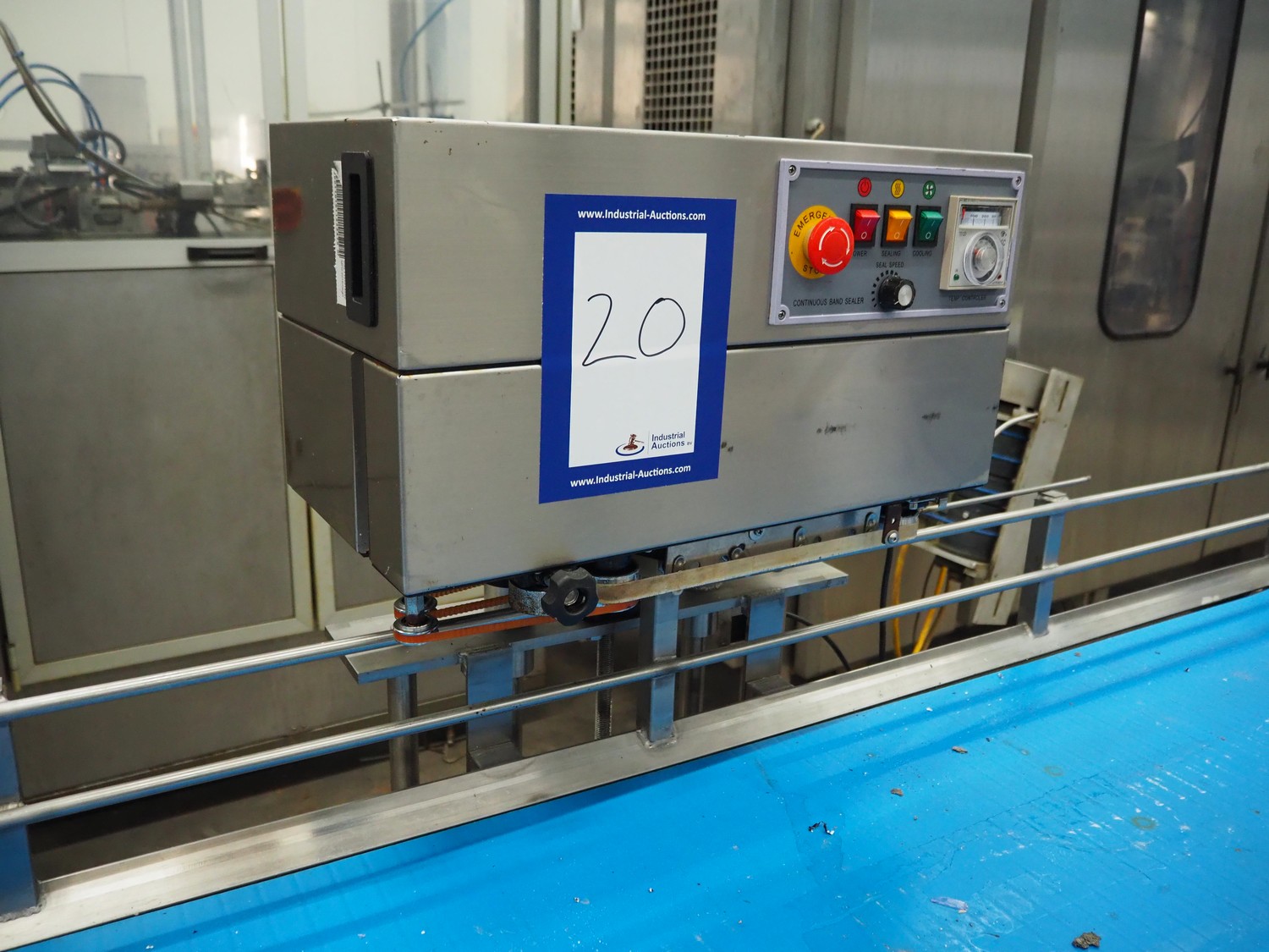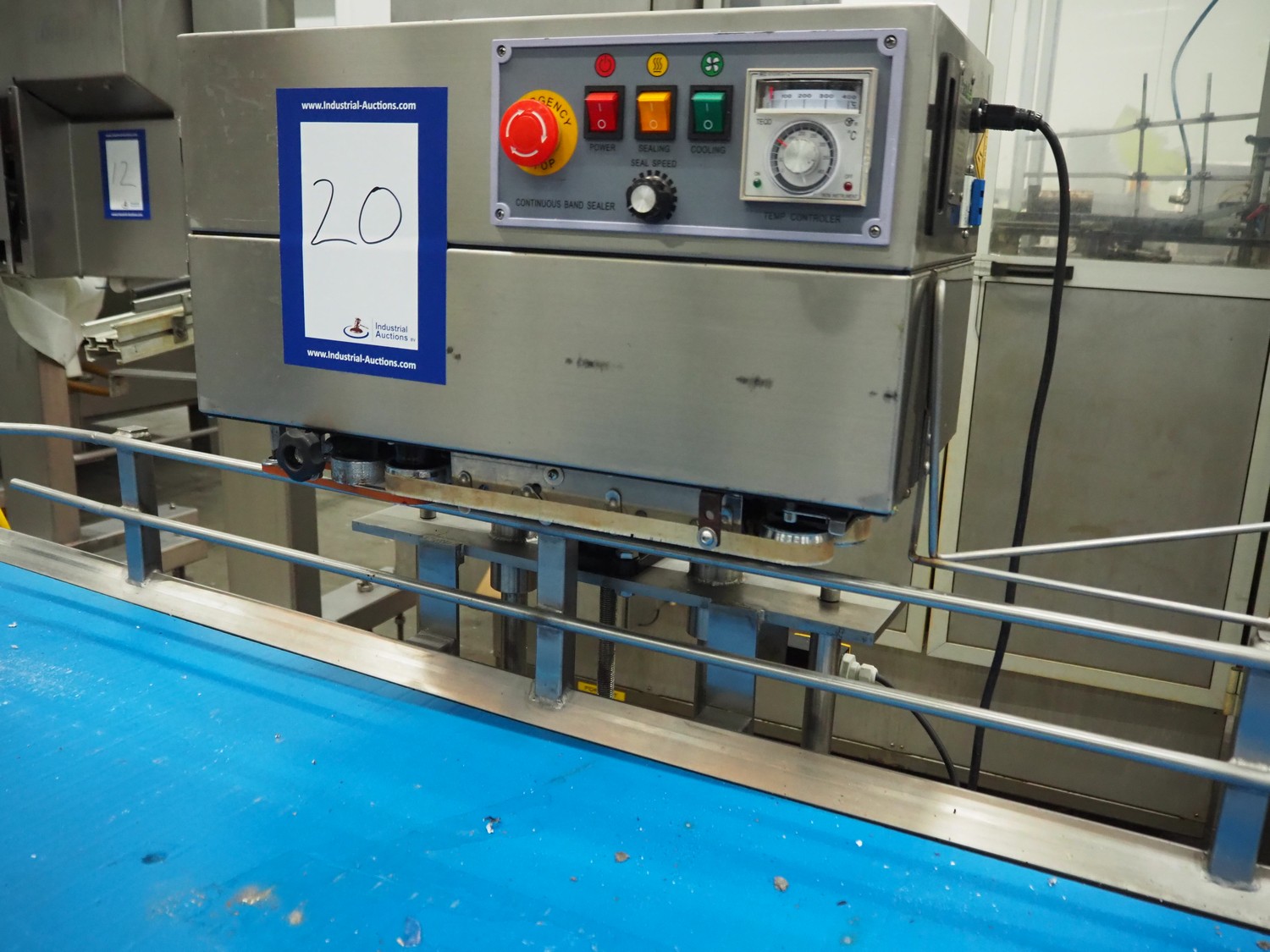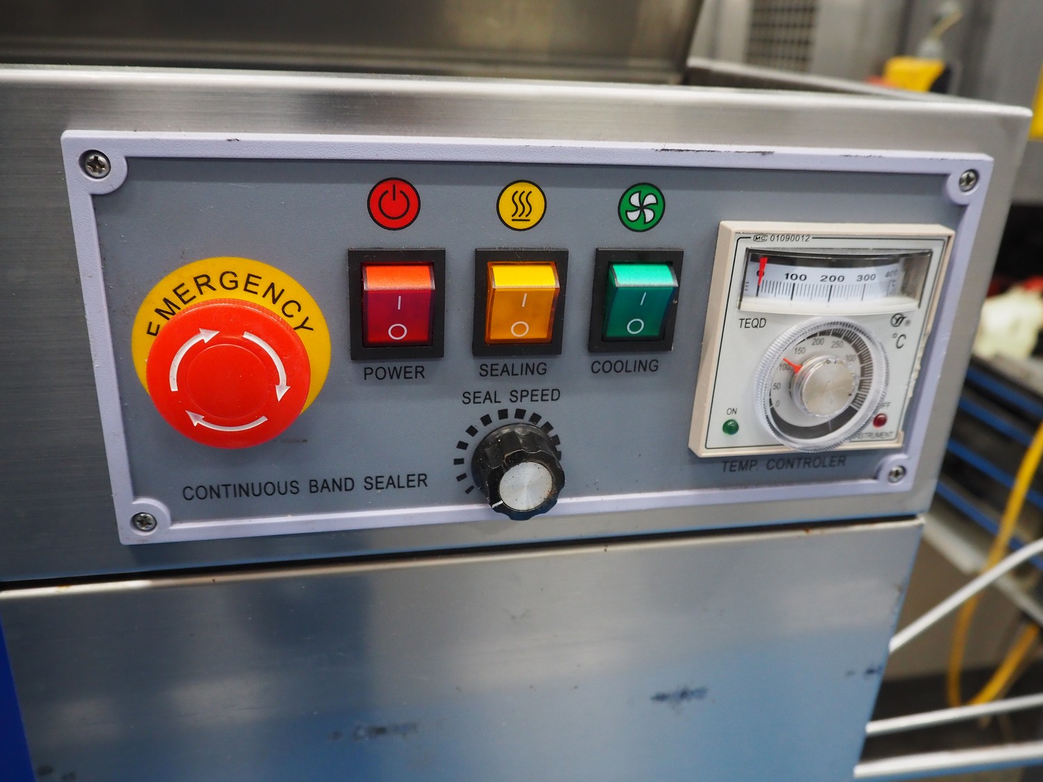 PackAid B.V. mobile continuous band sealer, machine number: 18039, year of construction: 2018, belt width: 400 mm, seal length: 500 mm, total dimensions: 2500 mm x 900 mm x 1430 mm.