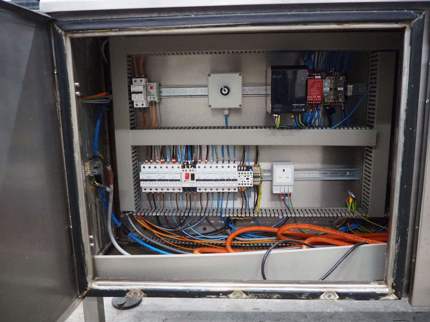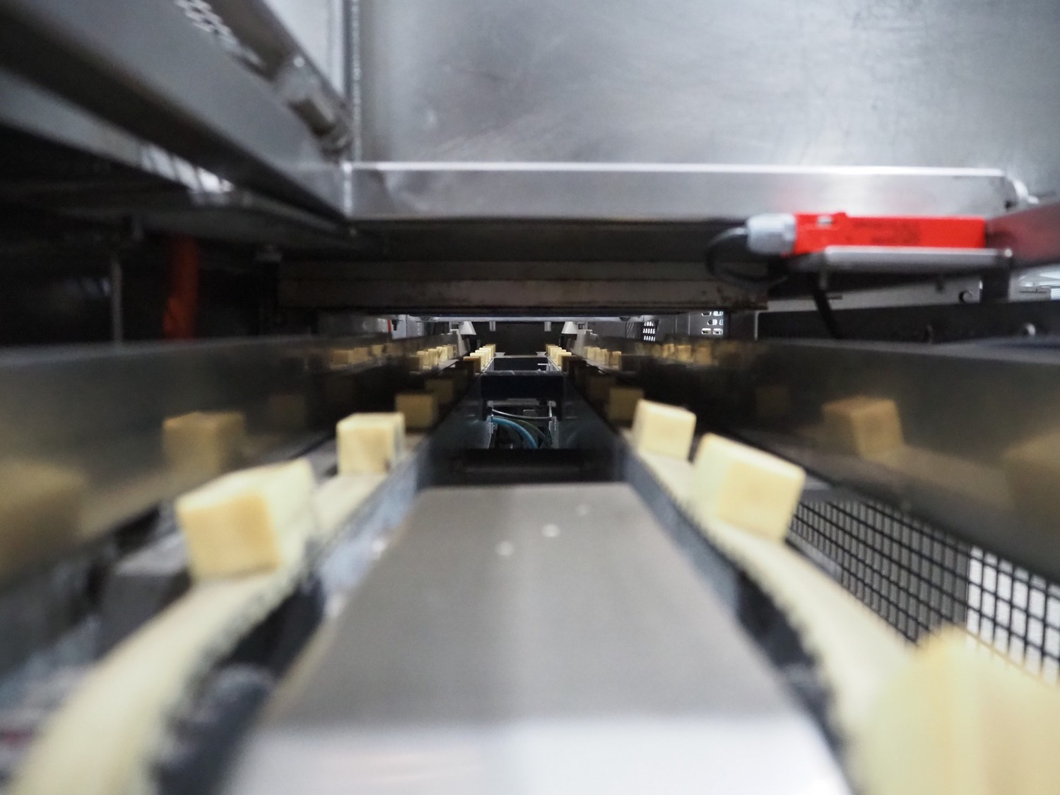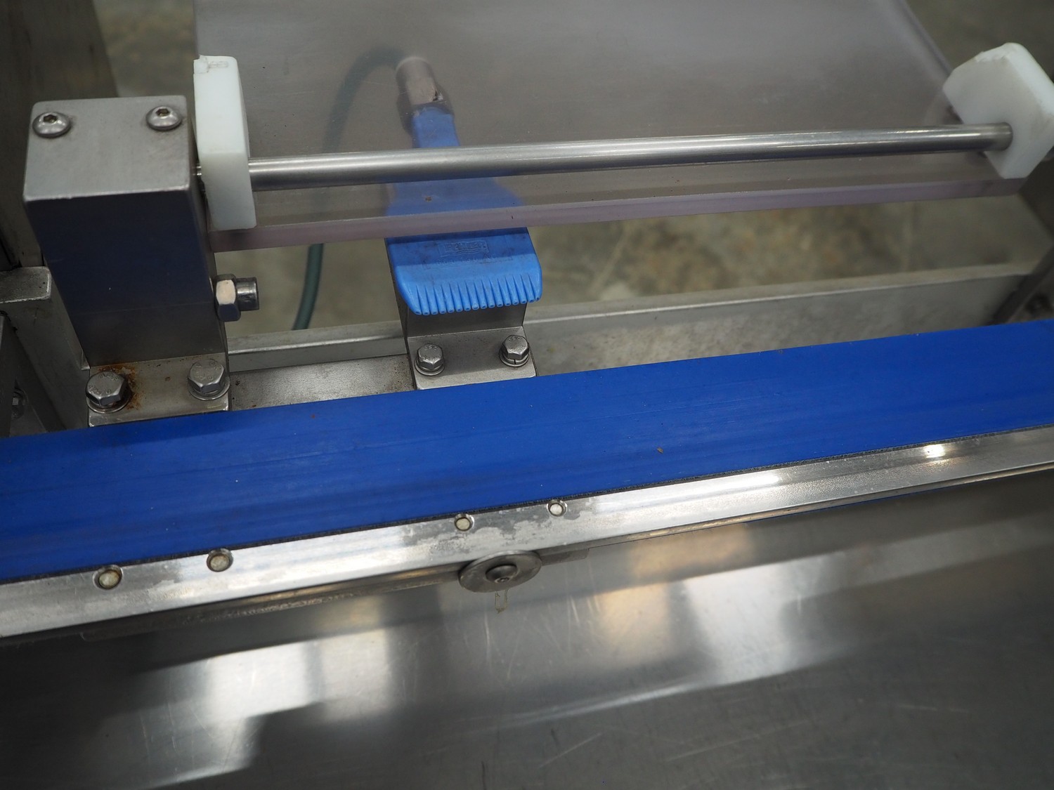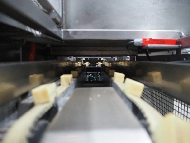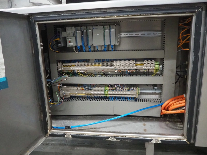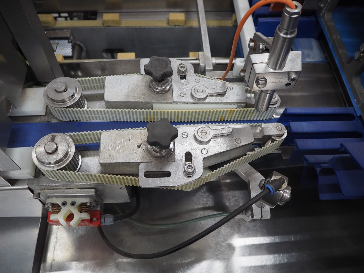 Gainsborough Craftsmen packaging machine for sausages with tray denester, machine number: 1495, year of construction: oct 2005, 415 V, weight: 1500 kg, plastic belt, belt width: 50 mm, tray dimensions: 140 mm x 190 mm, total dimensions: 3350 mm x 1050 mm x 1950 mm. Incomplete.
