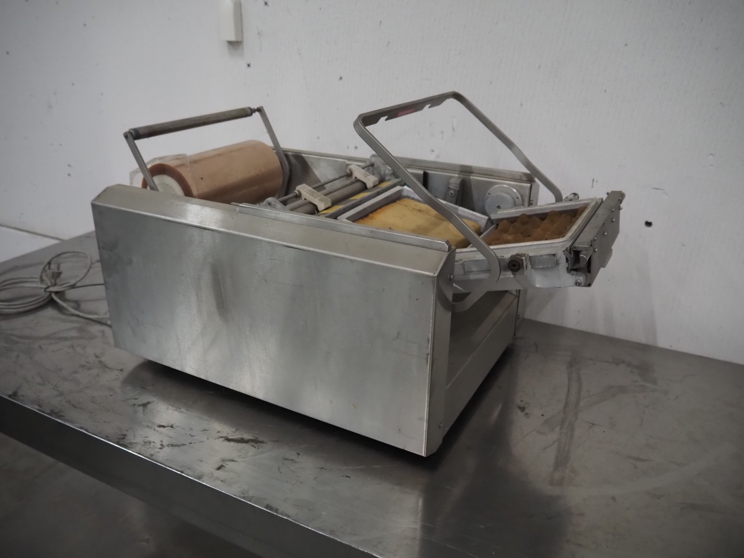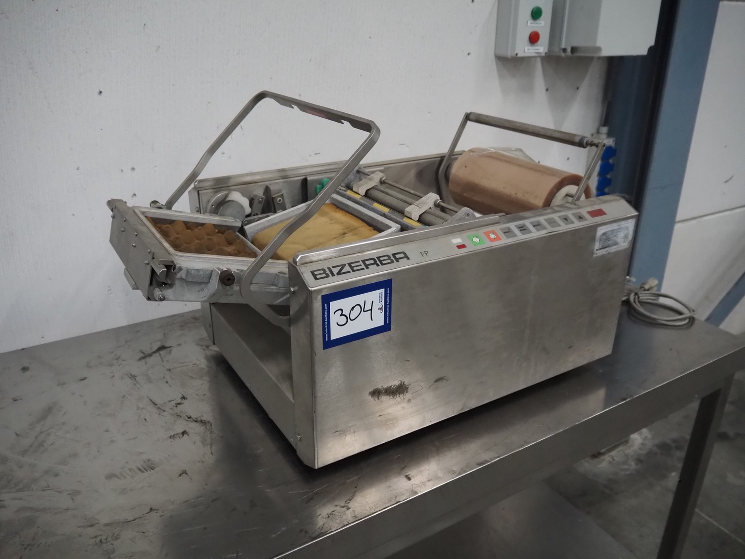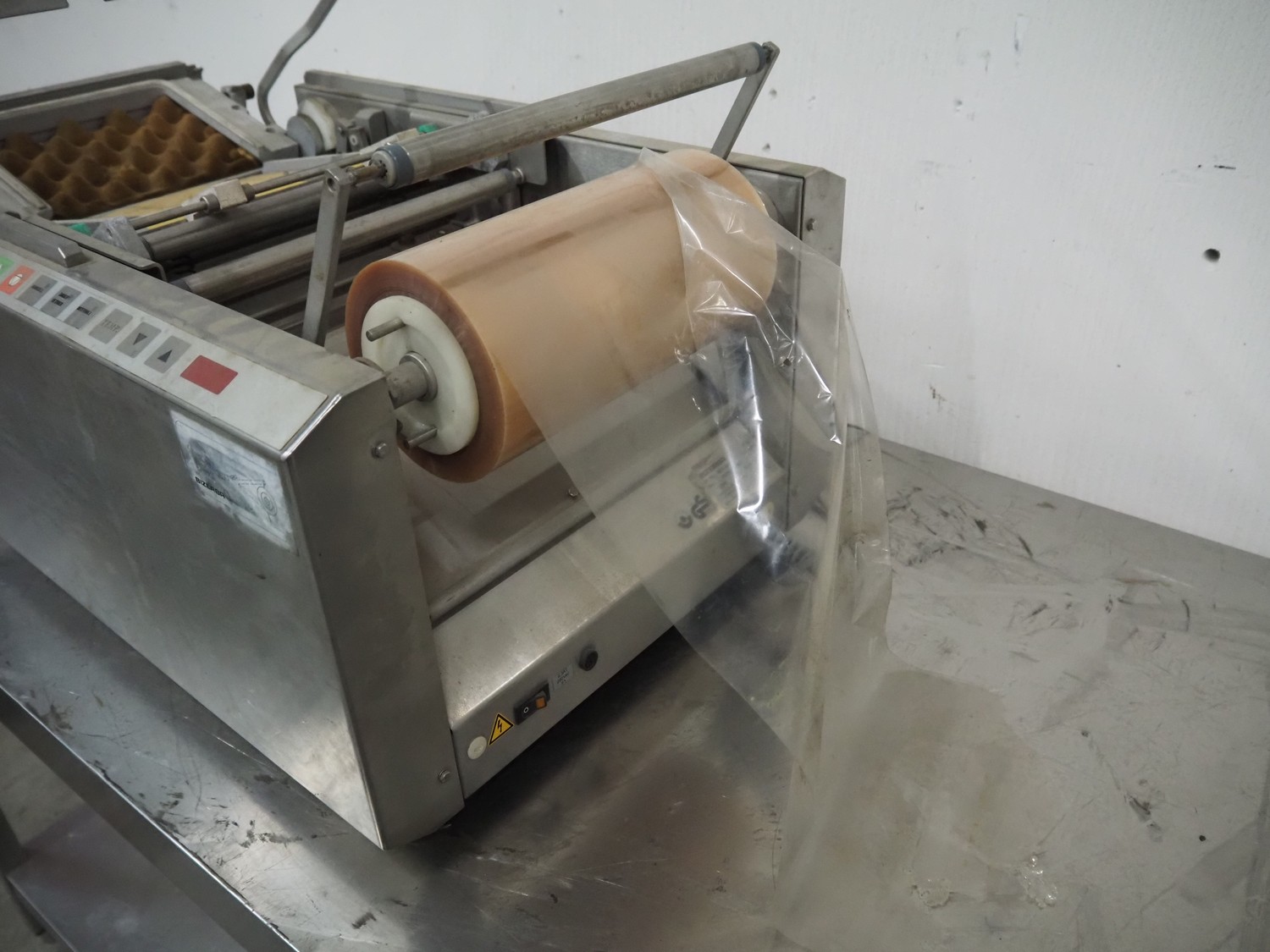 Bizerba packaging machine, type: FP M, number: 2031420, year of construction: 2004, 230 V, 1 Ph, 50 Hz, 2.3 A, 530 VA, dye: 220 mm x 170 mm, film width: 250 mm, total dimensions: 780 mm x 500 mm x 420 mm.
