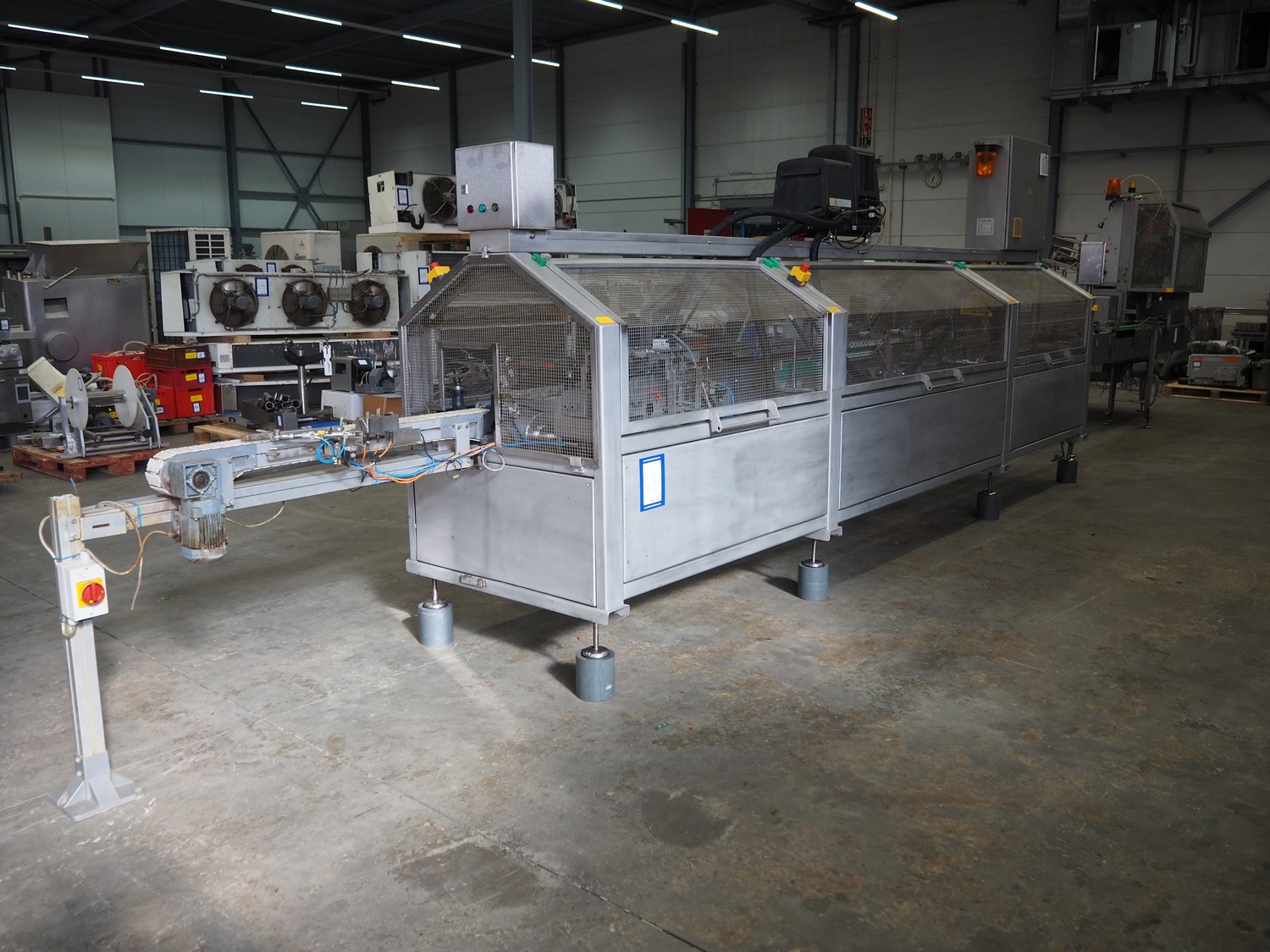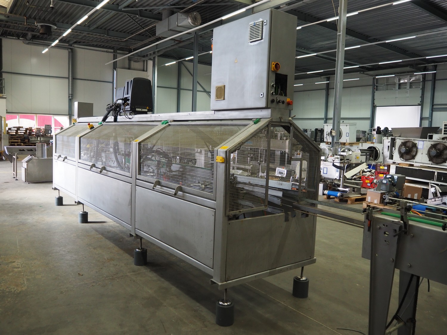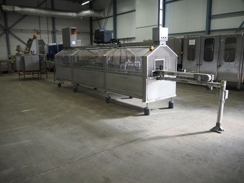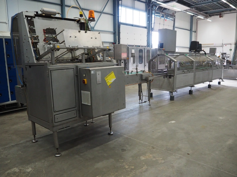 Econo Pak case packing line consisting of: Econo Pak carton denester, type: PH-KT, machine number: 1273/PH, year of construction: 1998, 400 V, 3 Ph, 50 Hz, 10 A, dimensions: 4800 mm x 1400 mm x 2450 mm and Econo Pak box closing machine, type: GVL, machine number: 1273/2, year of construction: 1998, 400 V, 3 Ph, 50 Hz, 14 A, dimensions: 7000 mm x 1200 mm x 2450 mm. Incomplete.