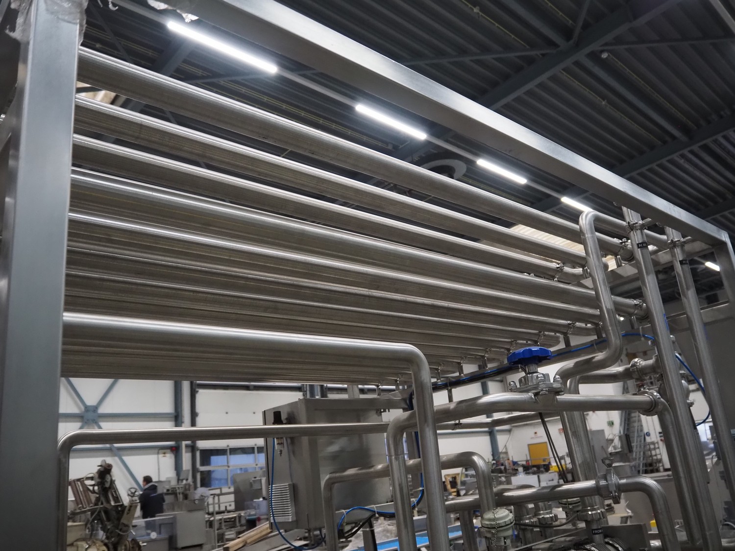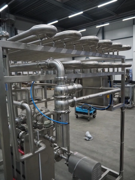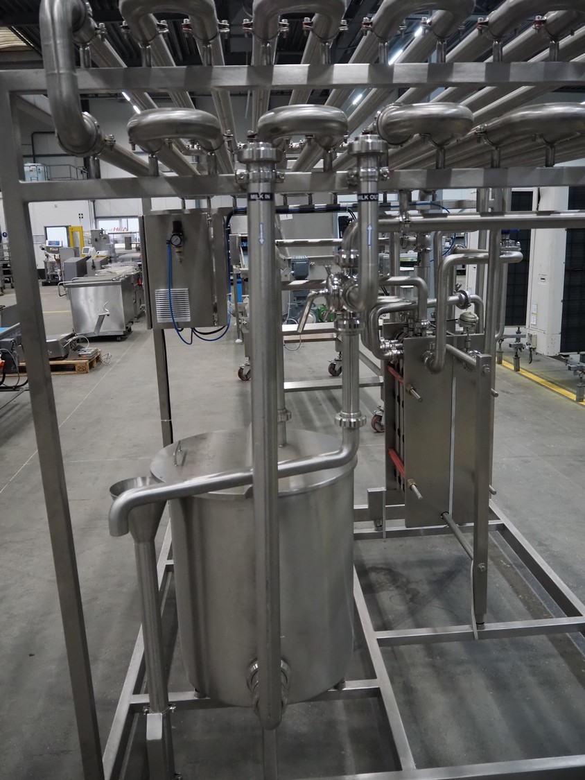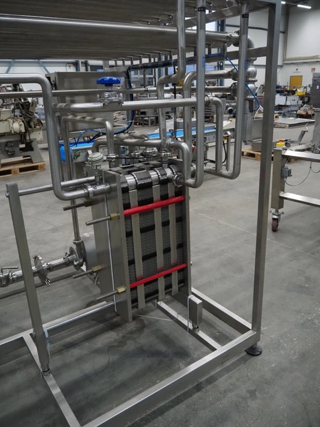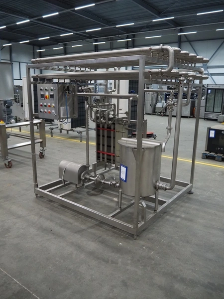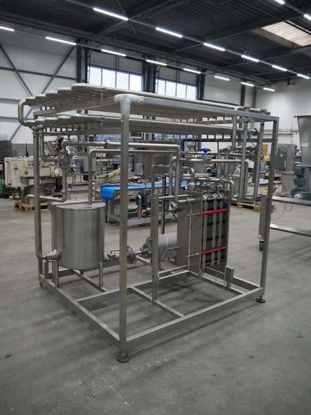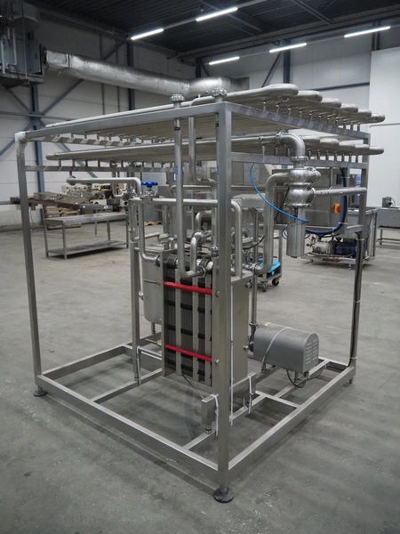S/s HTST pasteurization installation, capacity: 1000 liters per hour, dimensions: 2100 mm x 1700 mm x 2000 mm. Never used.