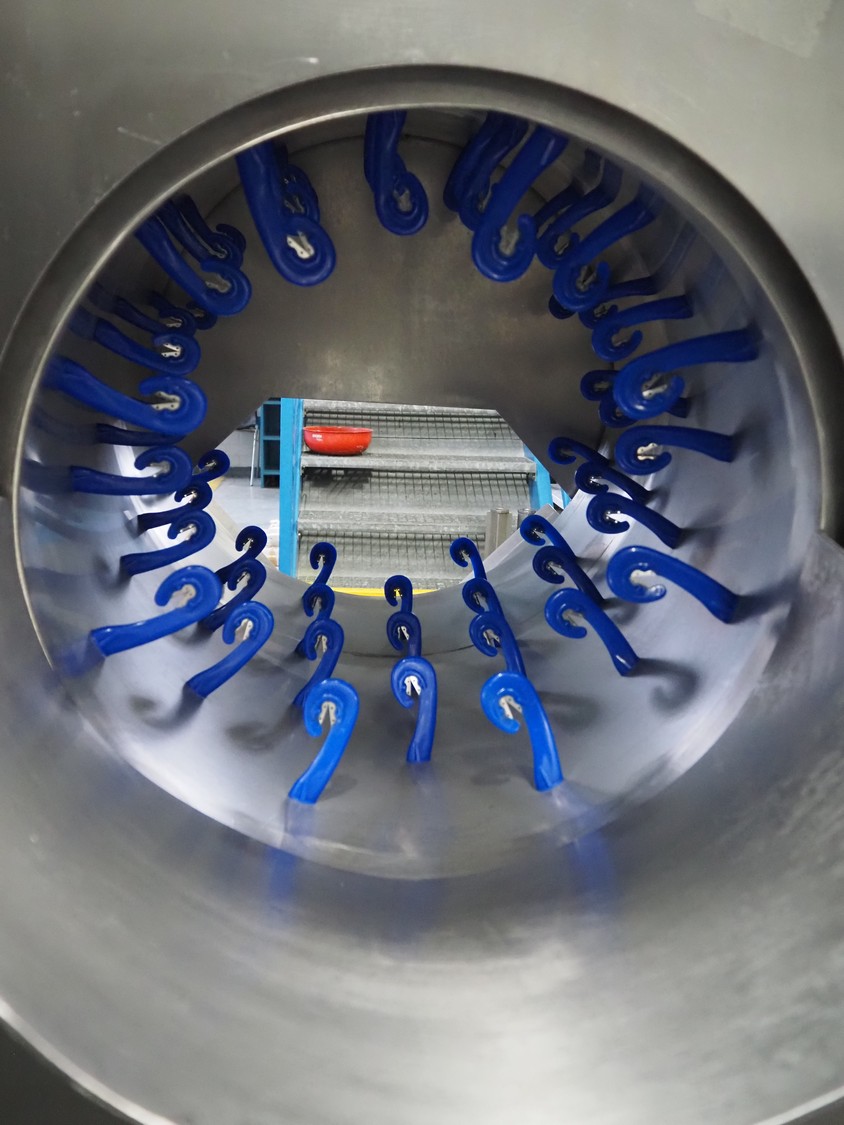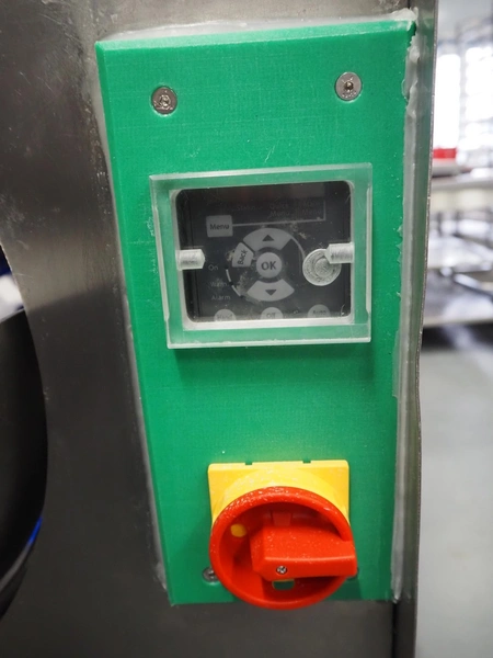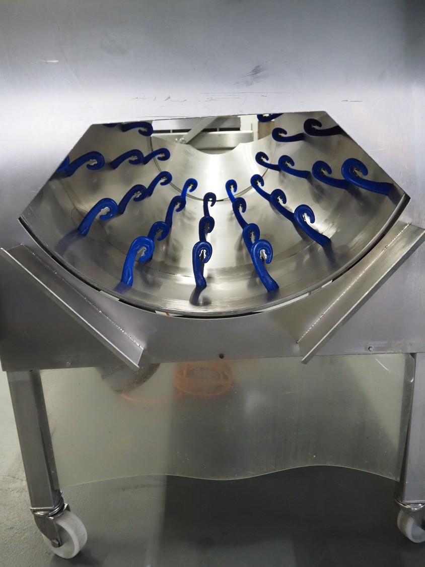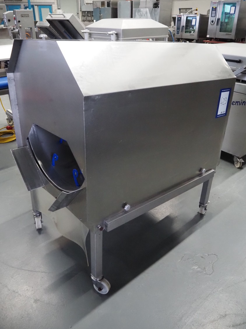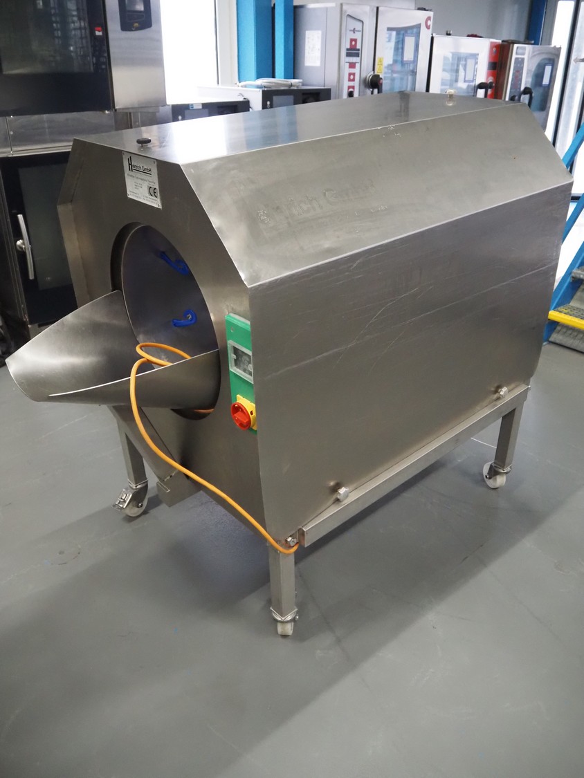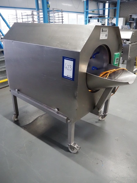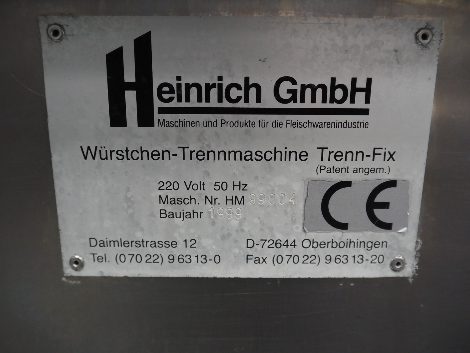 Heinrich GmbH mobile sausage cutter, machine number: 99004, year of construction: 1999, 220 V, 50 Hz, diameter drum: 510 mm, total dimensions: 1660 mm x 870 mm x 1400 mm.
