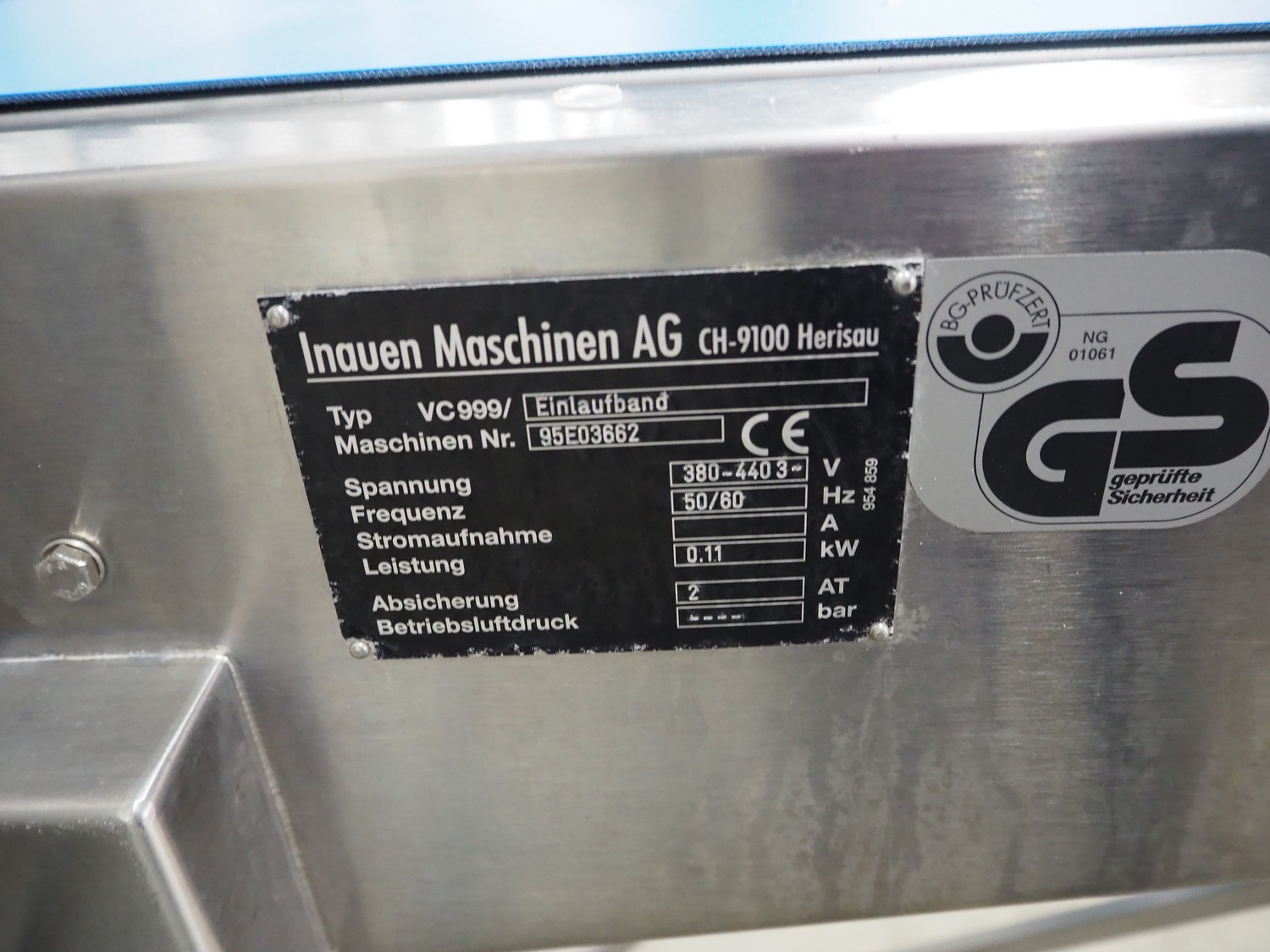 Inauen Maschinen AG belt dip tank, type: VC999/85.47 IE 20 kW, machine number: 95T99 1049, 400 V, 3 Ph, 50 Hz, plastic belt, belt width: 460 mm, total dimensions: 2300 mm x 1000 mm x 1350 mm. Covers are damaged.