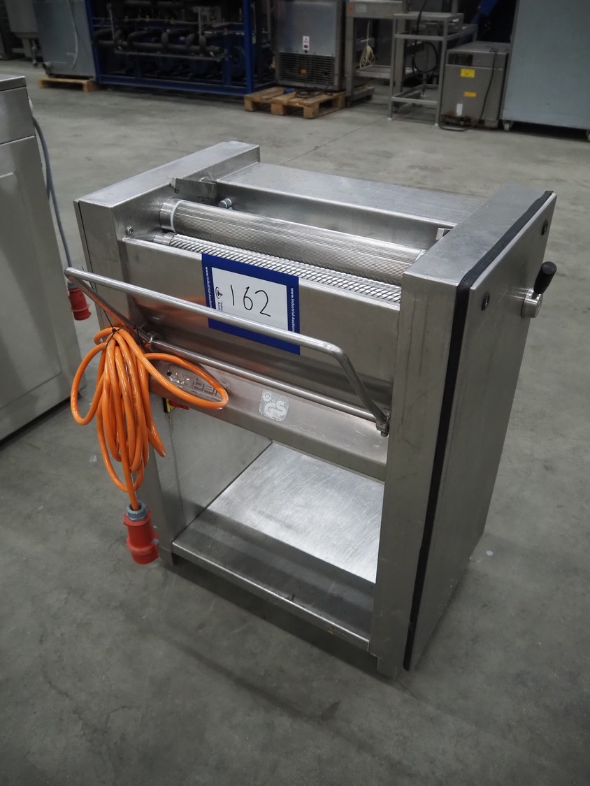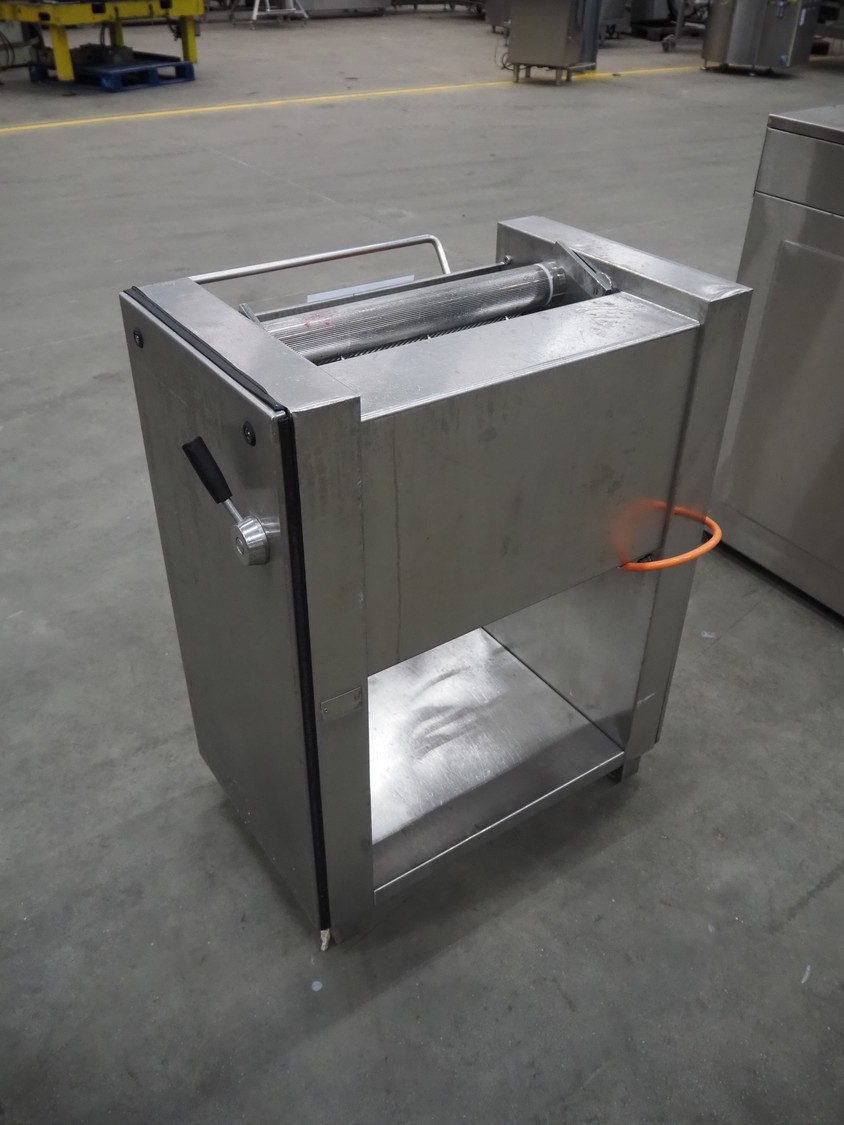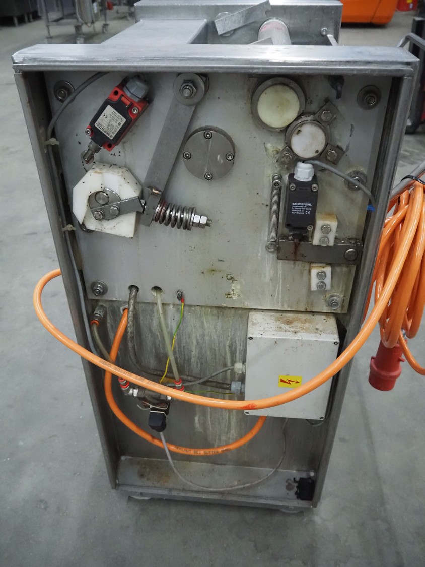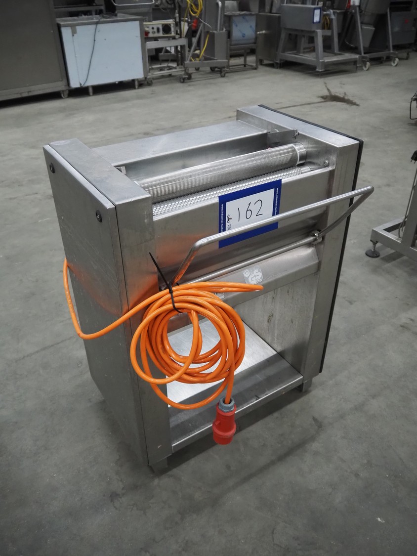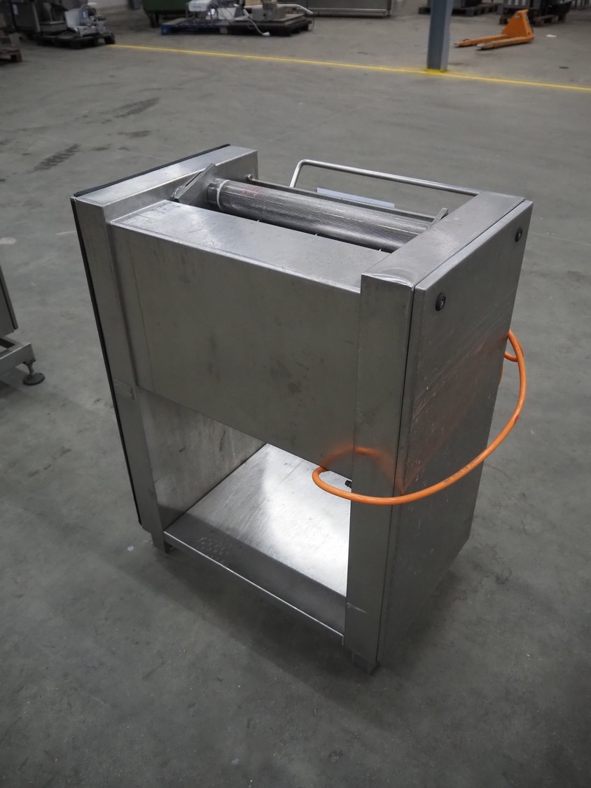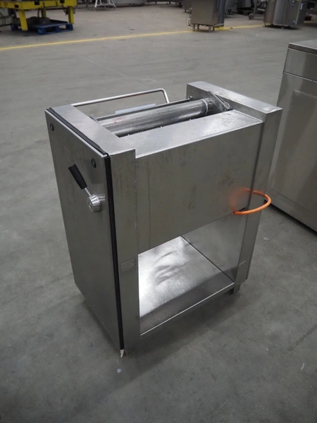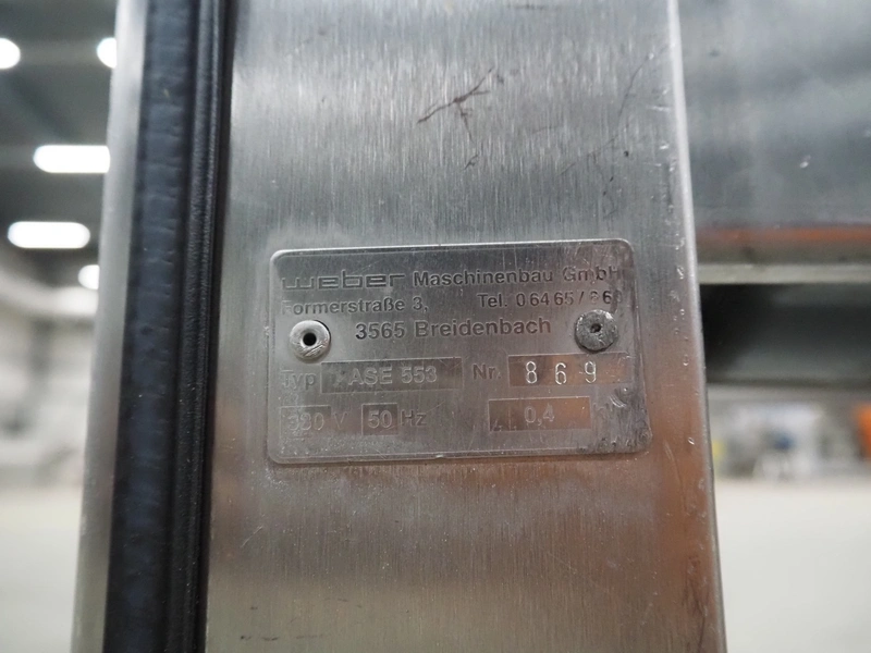Weber mobile skinning machine, type: ASE 553, number: 869, 230 V, 50 Hz, 0.4 A, working width: 500 mm, total dimensions: 800 mm x 550 mm x 1000 mm. Incomplete.
