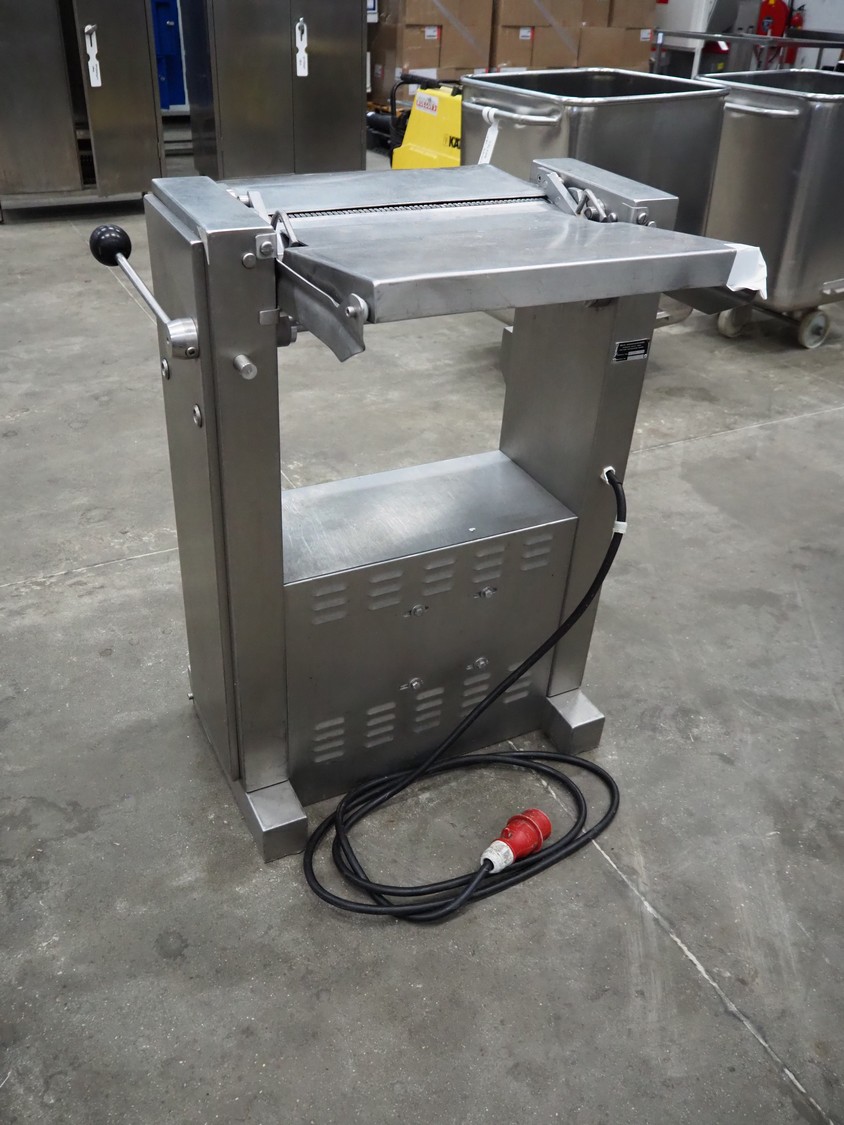 Maja-Maschinenfabrik skinning machine, type: AEM 438, machine number: 458933515, working width: 440 mm, total dimensions: 760 mm x 700 mm x 1000 mm.