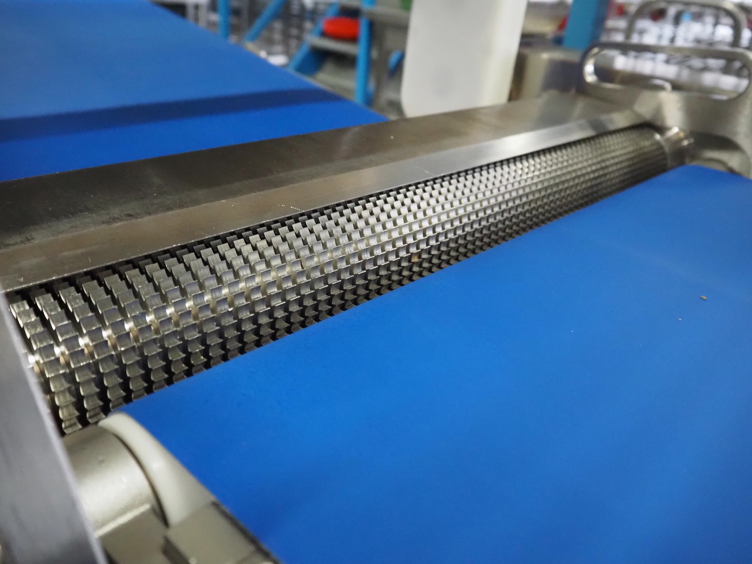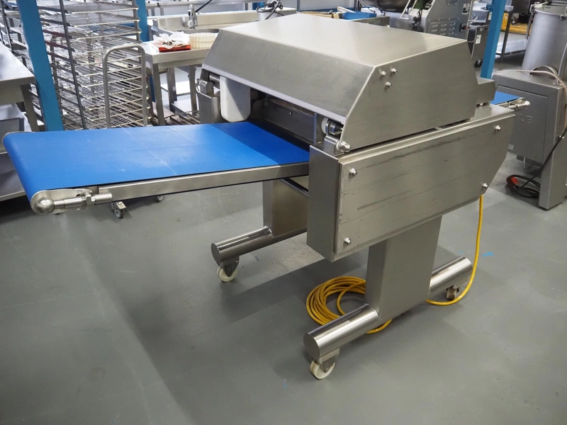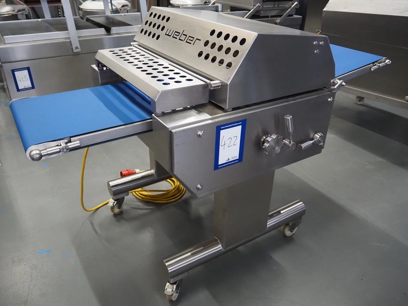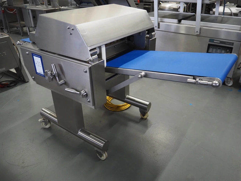 Weber mobile skinning and derinding machine, type: ASB 560, number: 251, year of construction: 2007, 400 V, 50 Hz, 1.1 kW, weight: 400 kg, working width: 550 mm, plastic belt, belt width: 490 mm, total dimensions: 2100 mm x 950 mm x 1250 mm.