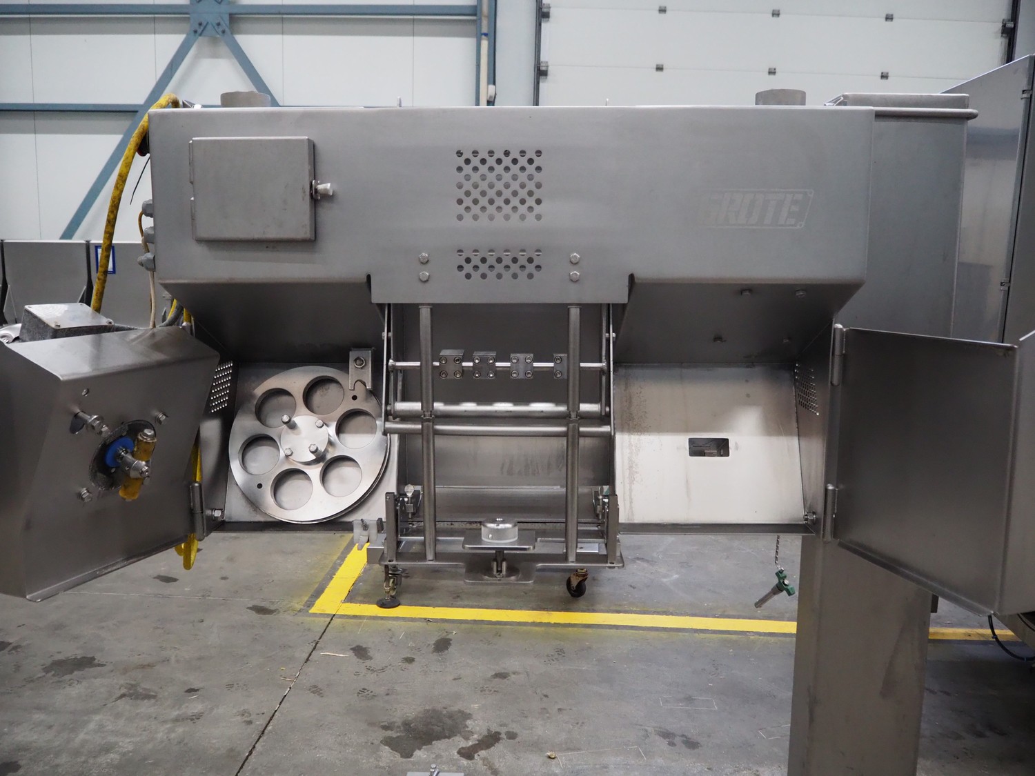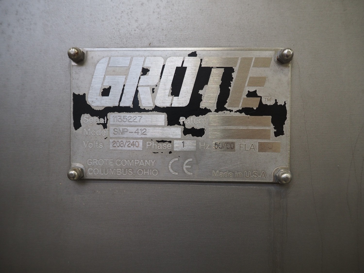 Grote mobile slicer, model: SNP-412, serial number: 11356227, 208/240 V, 1 Ph, 50/60 Hz, FLA: 5.0, dimensions: 1300 mm x 1050 mm x 1800 mm.