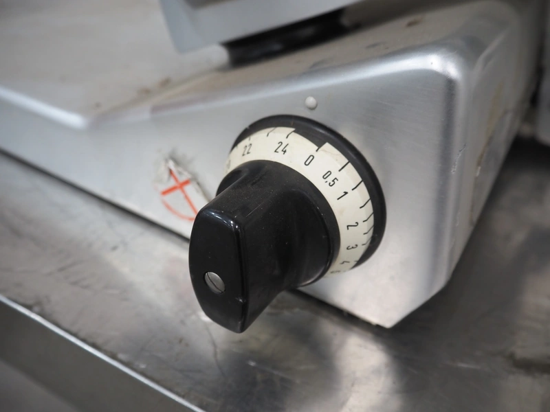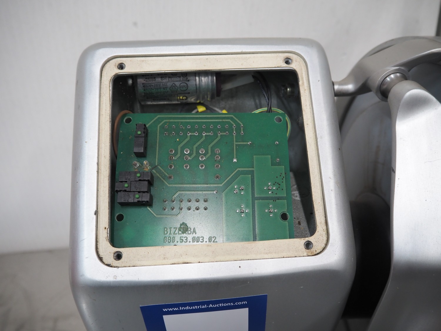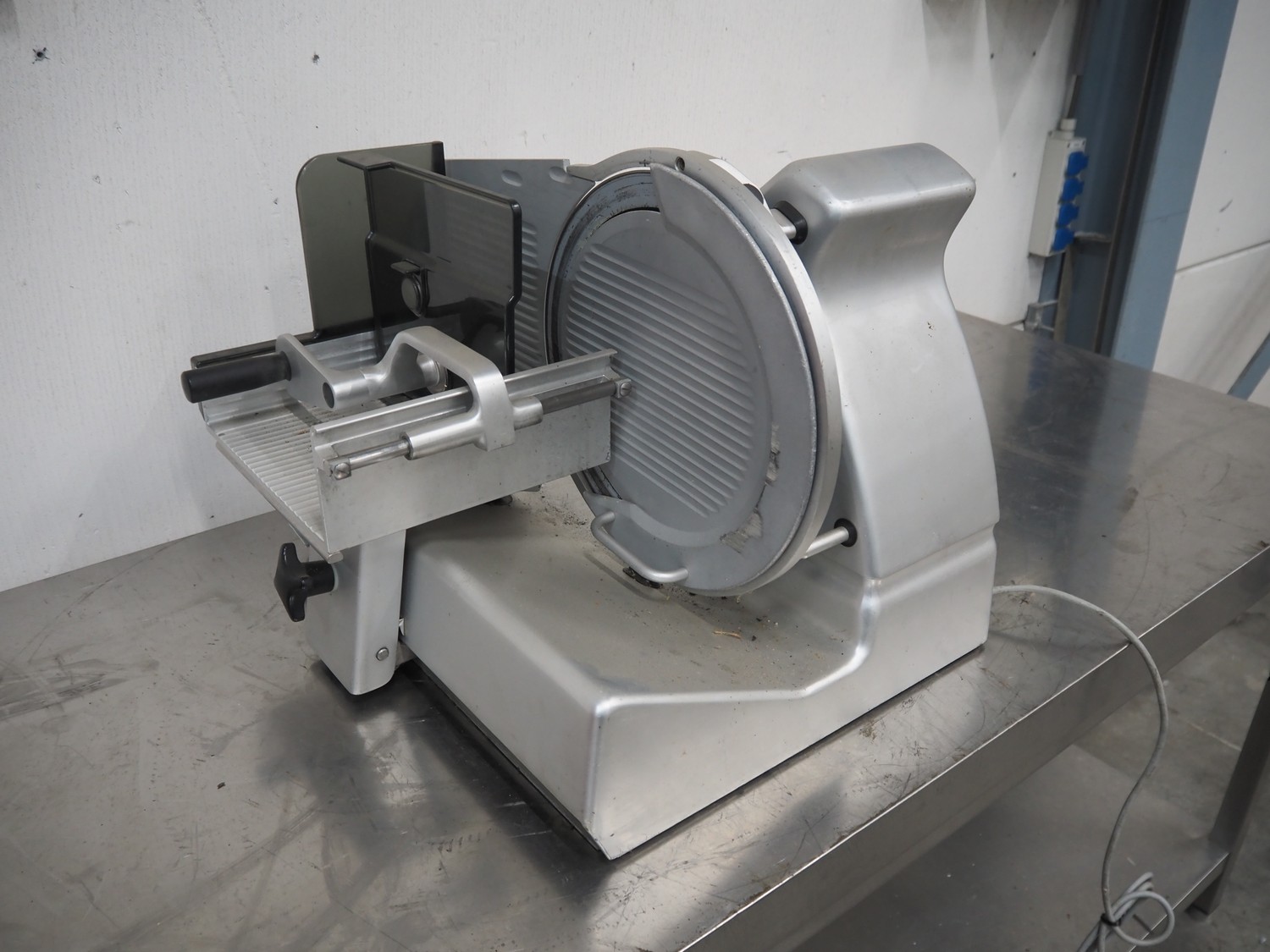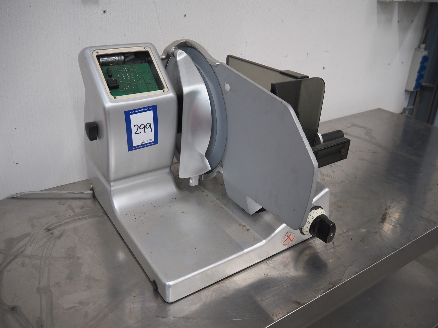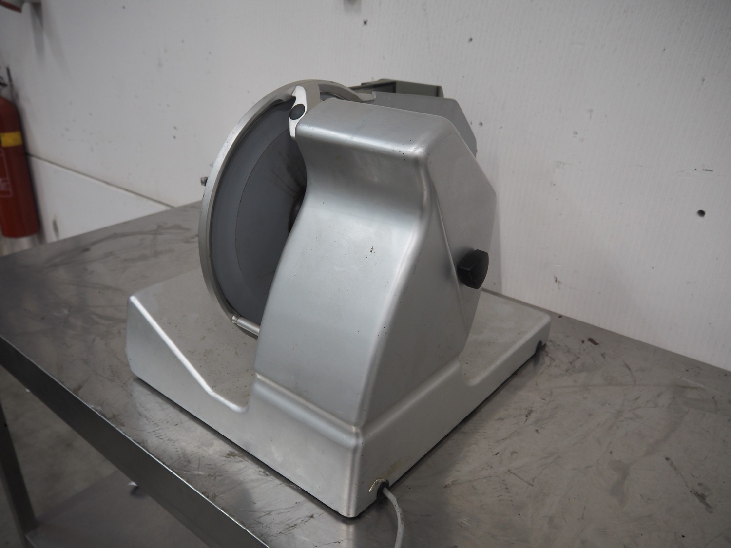 Bizerba slicer, type: VS 12, number: 1770463, year of construction: 2000, 230 V, 1 Ph, 50 Hz, 1.8 A, dimensions: 580 mm x 700 mm x 425 mm. Incomplete.
