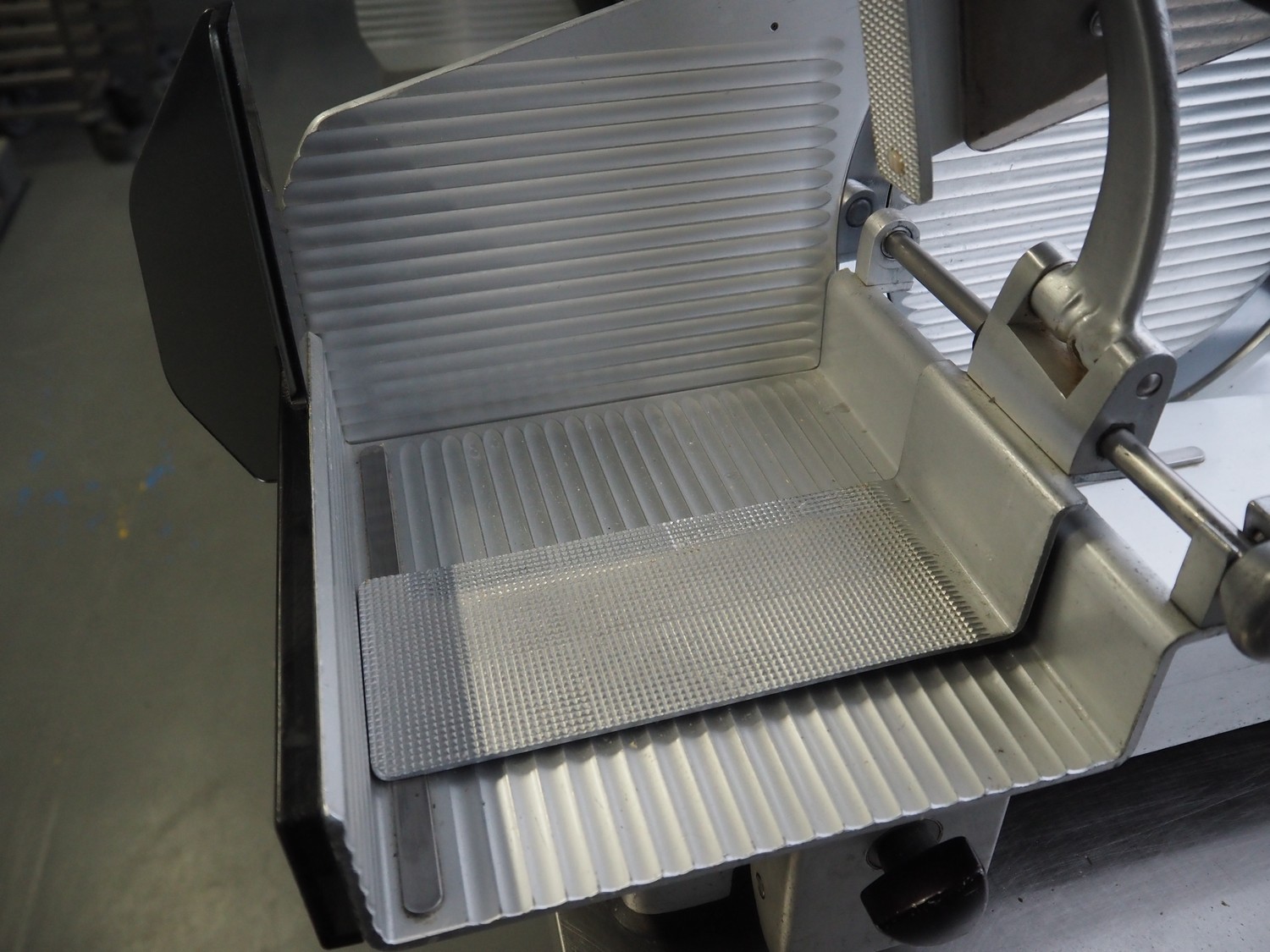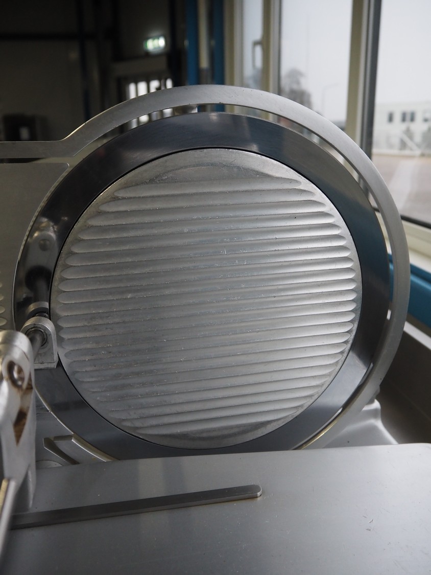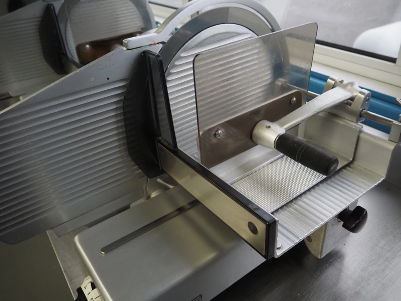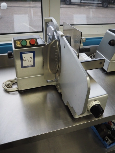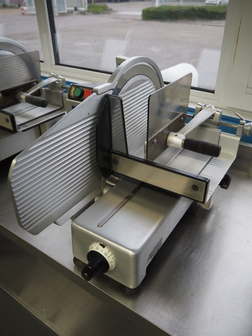 Bizerba slicer, type: VS 8, machine number: 1221003, 220 V, 50 Hz, 1.7 A, 0.3 kW, dimensions: 550 mm x 600 mm x 550 mm.