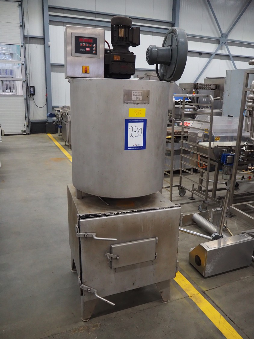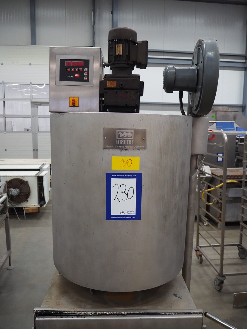 Maurer AG smoke generator for wood chips, type: REZ G 1, serial number: X0274847, year of construction: 02/03, 400 V, 50 Hz, 2.7 kW, dimensions: 1150 mm x 870 mm x 2200 mm.