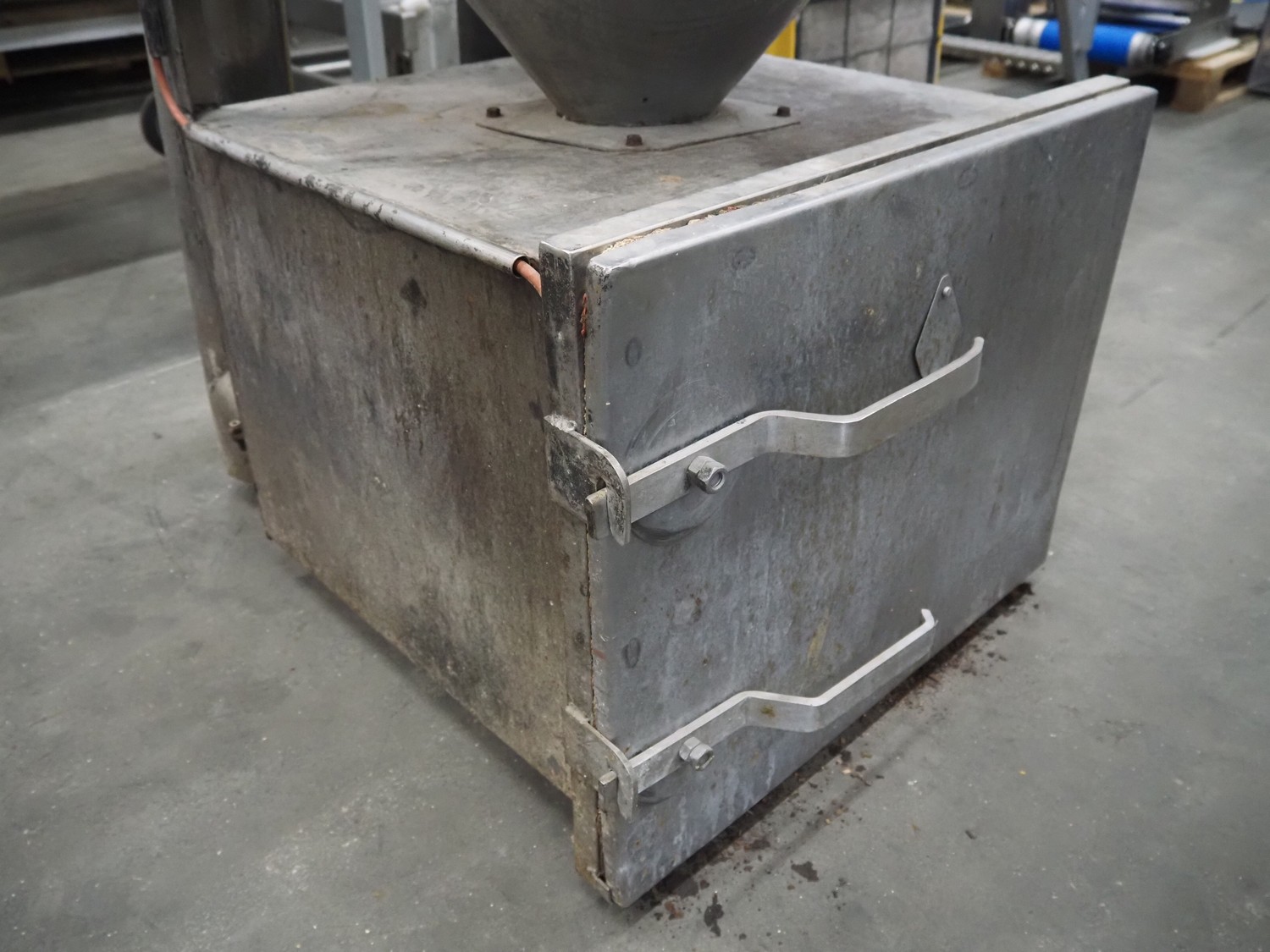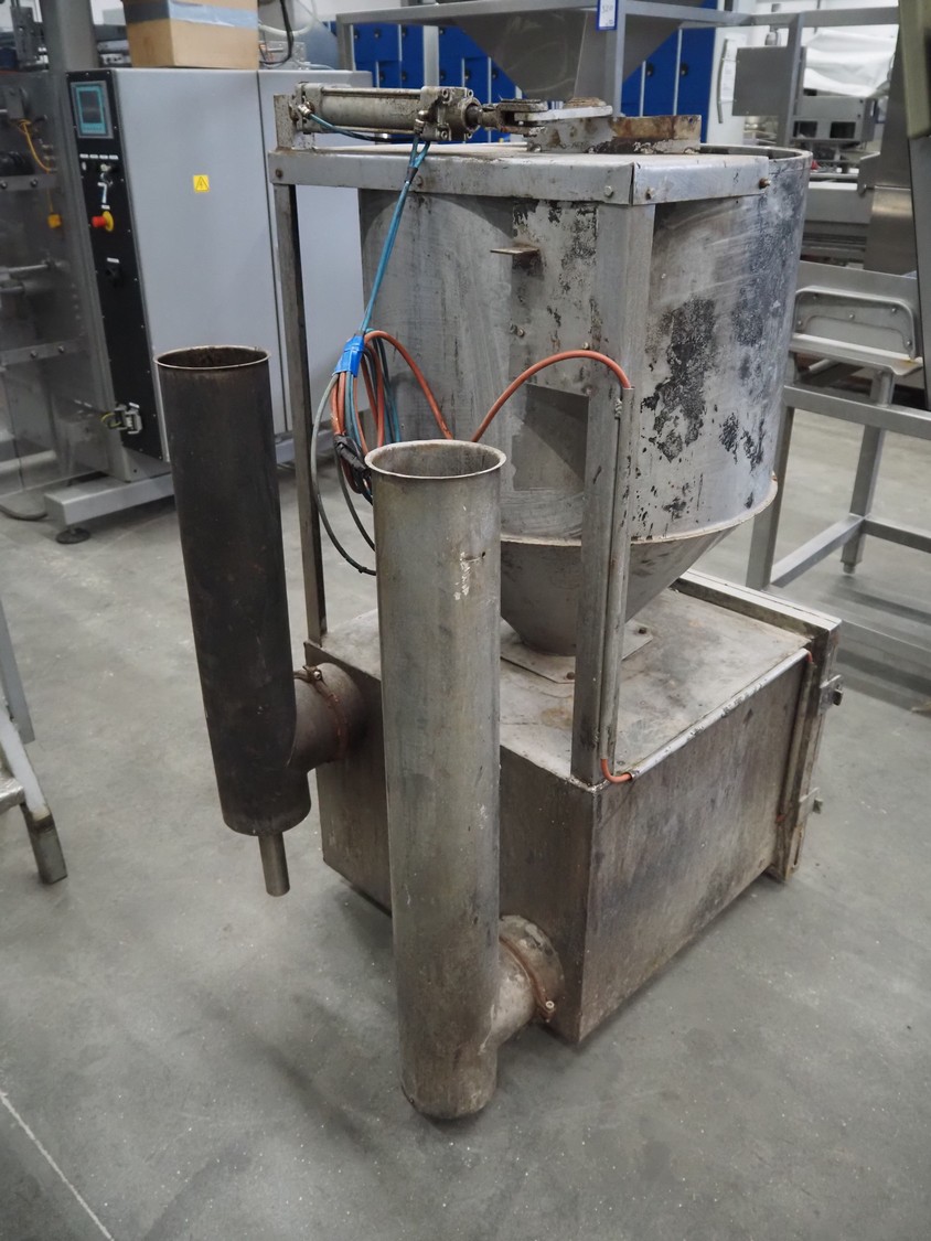 Sorgo smoke generator for wood chips, dimensions inside: Ø 620 mm x 440 mm, total dimensions: 1000 mm x 750 mm x 1500 mm.