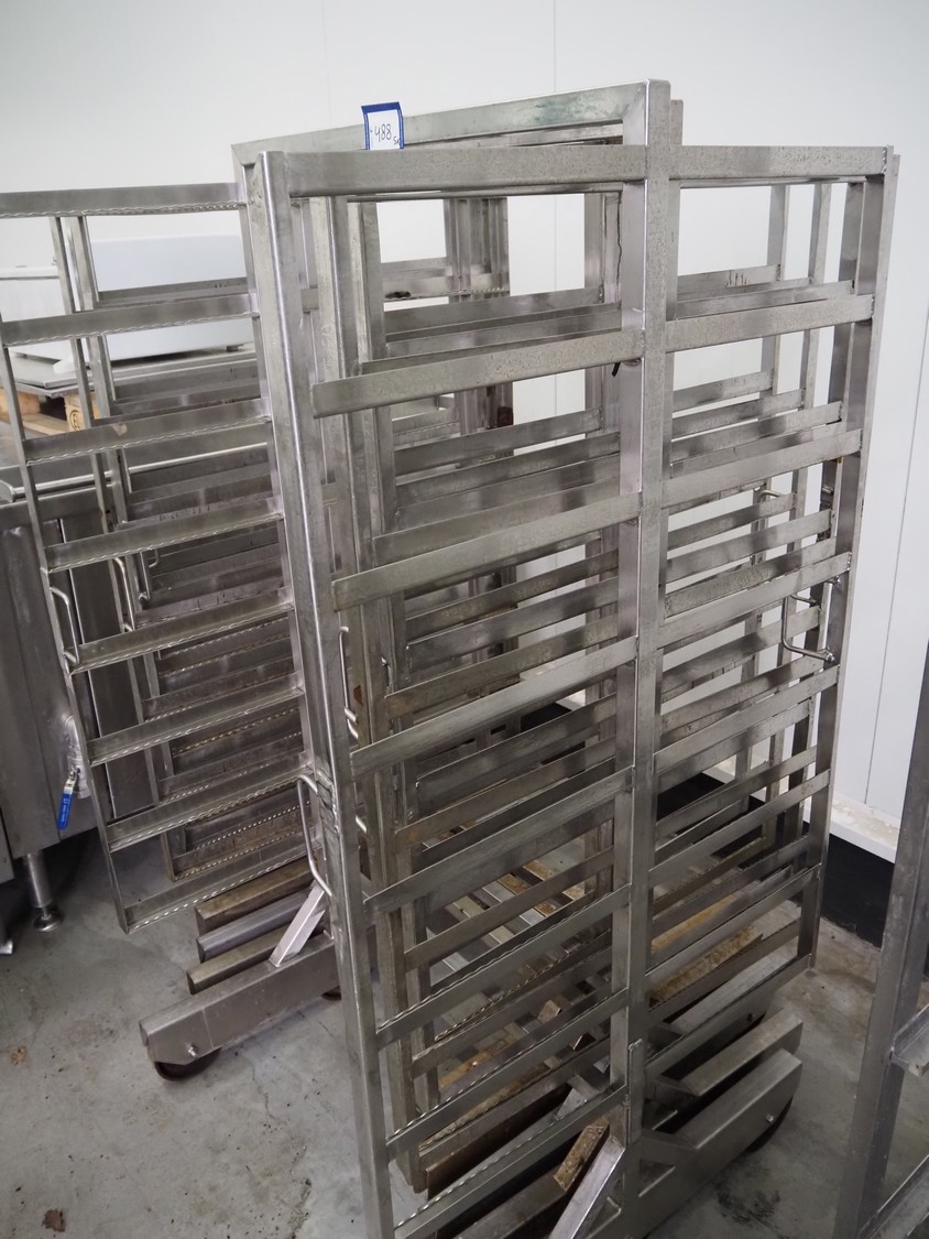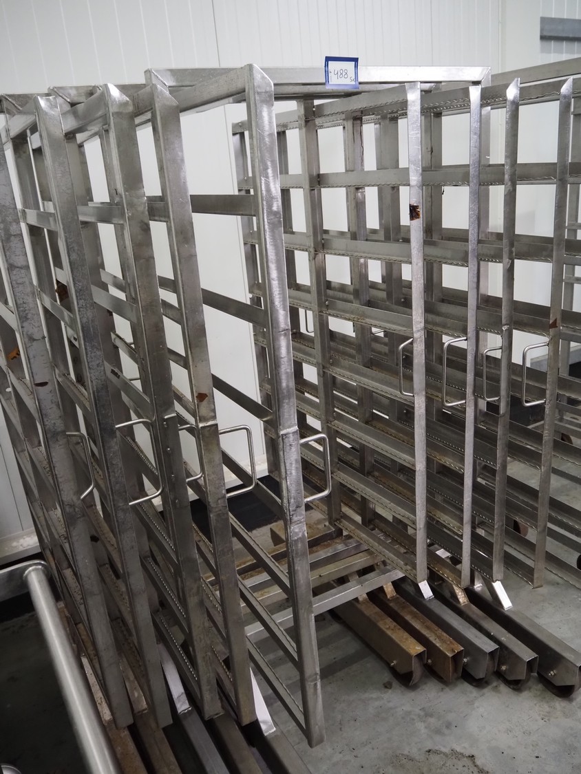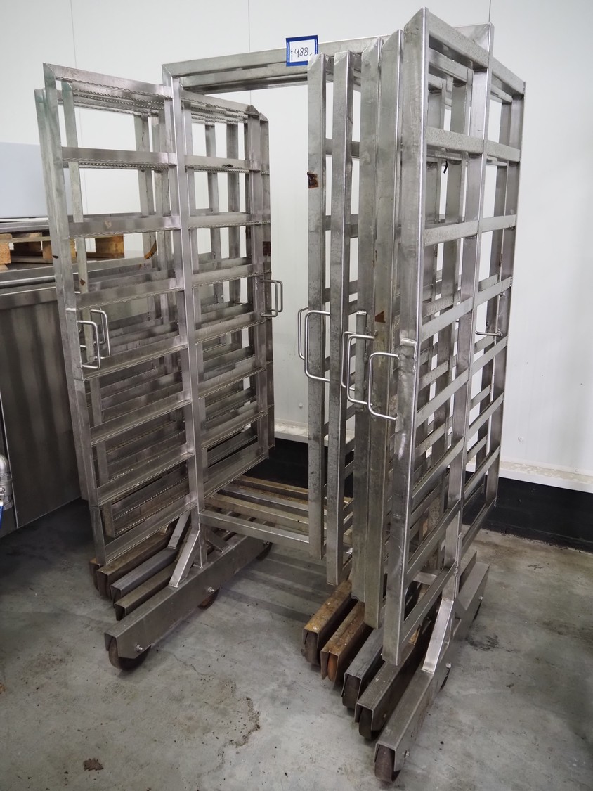 5 s/s smoke trolleys, 8 floors, dimensions each floor: 1010 mm x 1000 mm, total dimensions: (5x) 1020 mm x 1000 mm x 1960 mm.