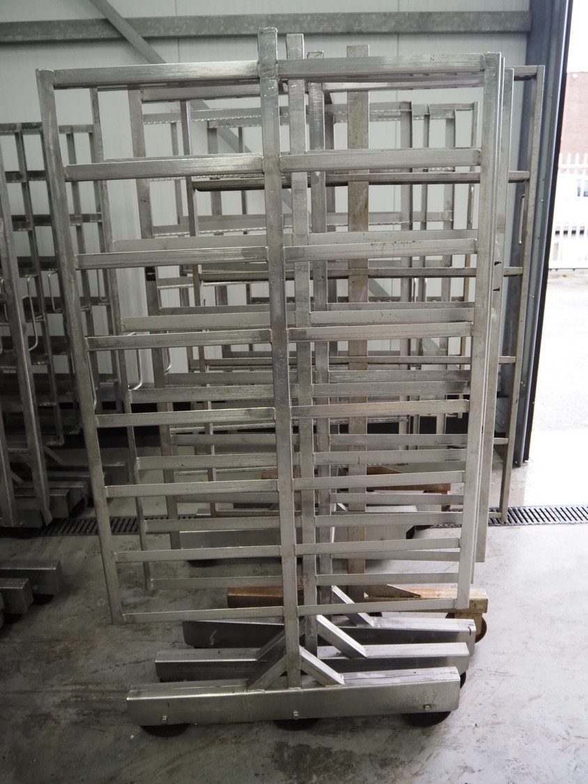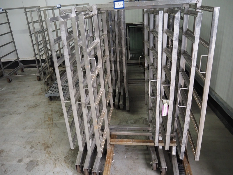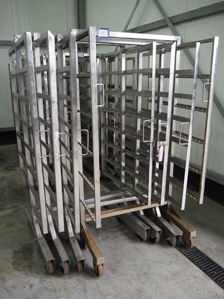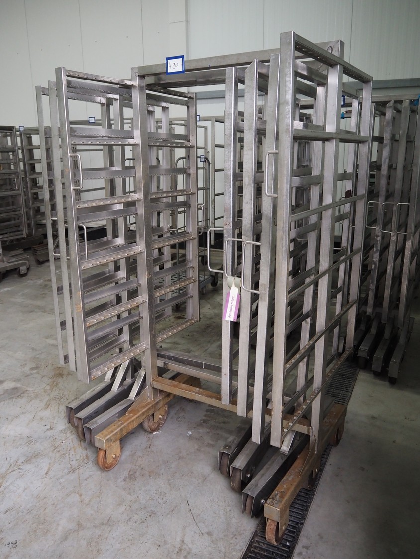 4 s/s smoke trolleys, 8 floors, dimensions each floor: 1010 mm x 1000 mm, total dimensions: (4x) 1020 mm x 1000 mm x 1960 mm.