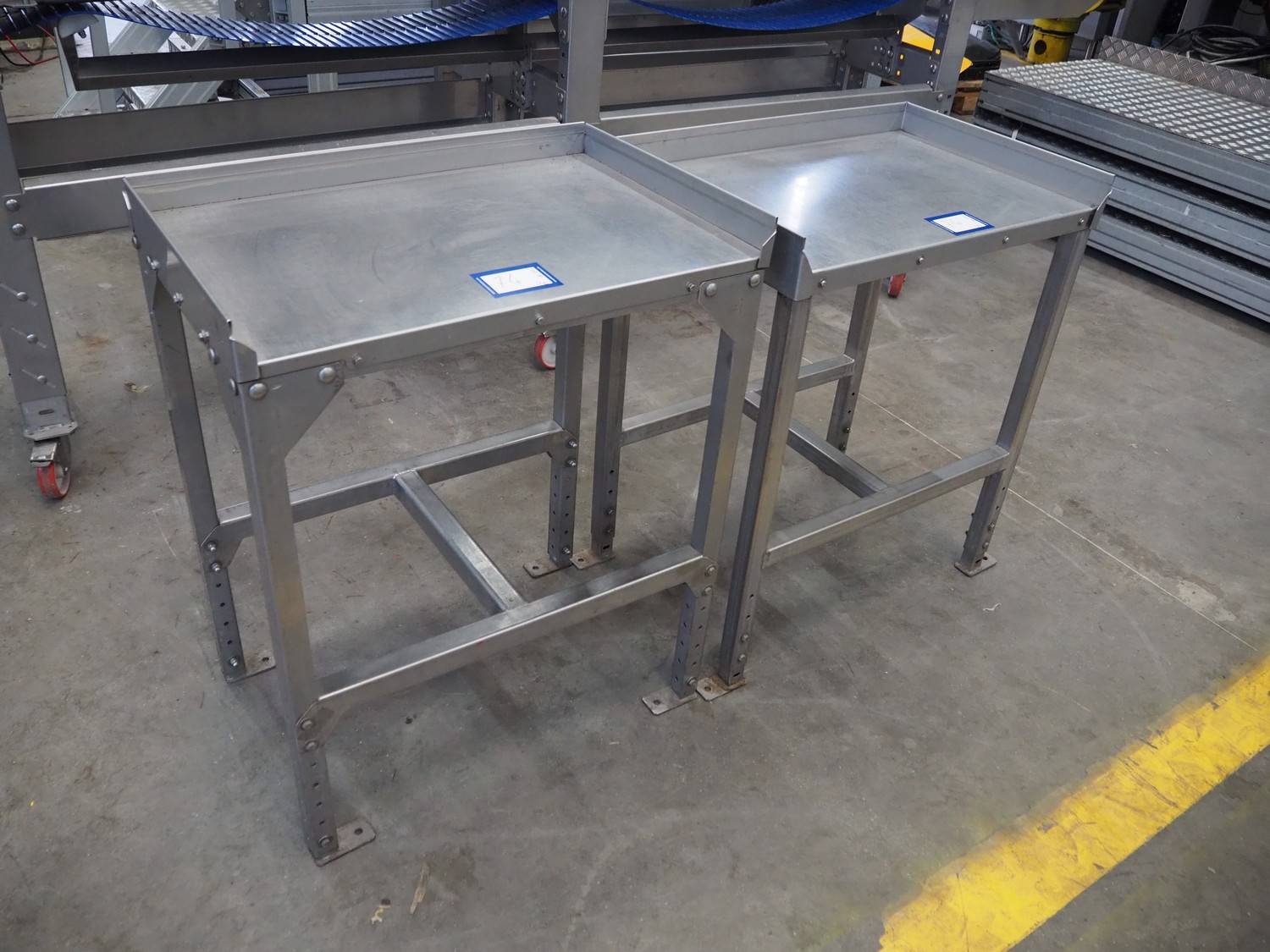2x s/s table, dimensions: 770 mm x 500 mm x 900 mm.