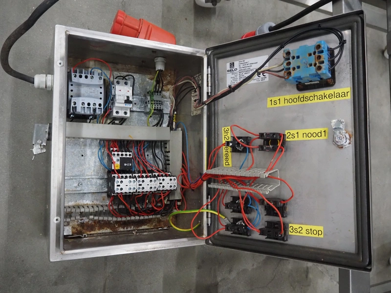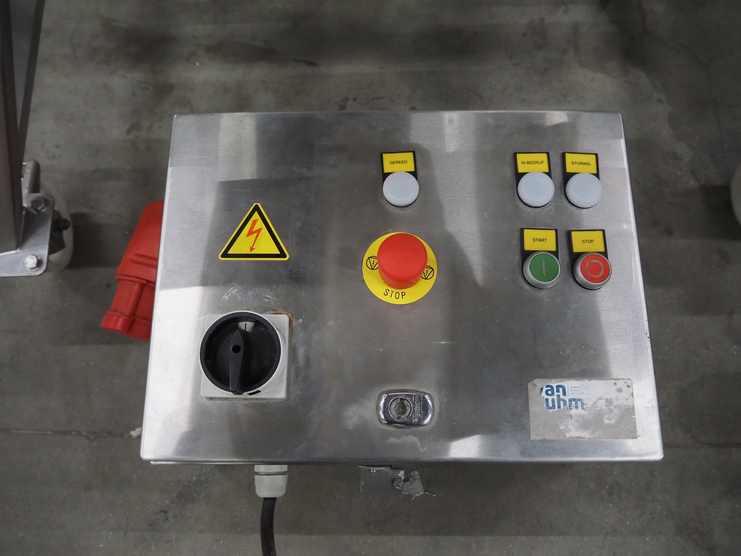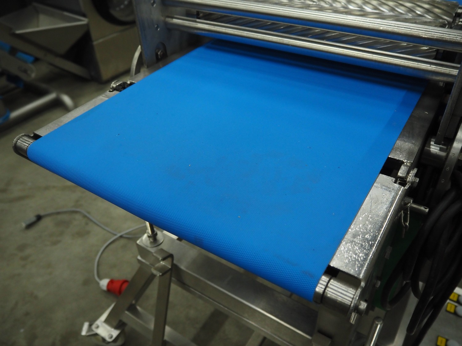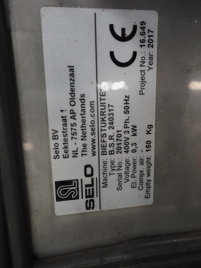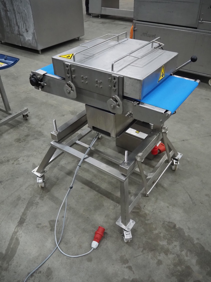 Selo mobile steak scorer, type: B.S.R. 240317, serial number: 201701, year of construction: 2017, 400 V, 3 Ph, 50 Hz, 0.3 kW, weight: 150 kg, plastic belt, belt width: 400 mm, working width: 380 mm, total dimensions: 1000 mm x 700 mm x 1050 mm.