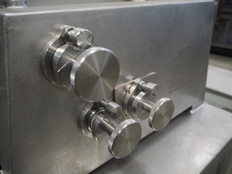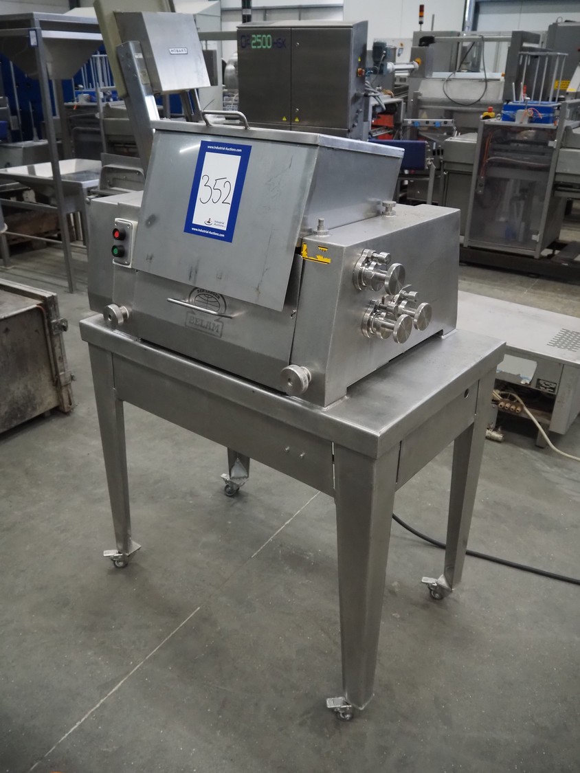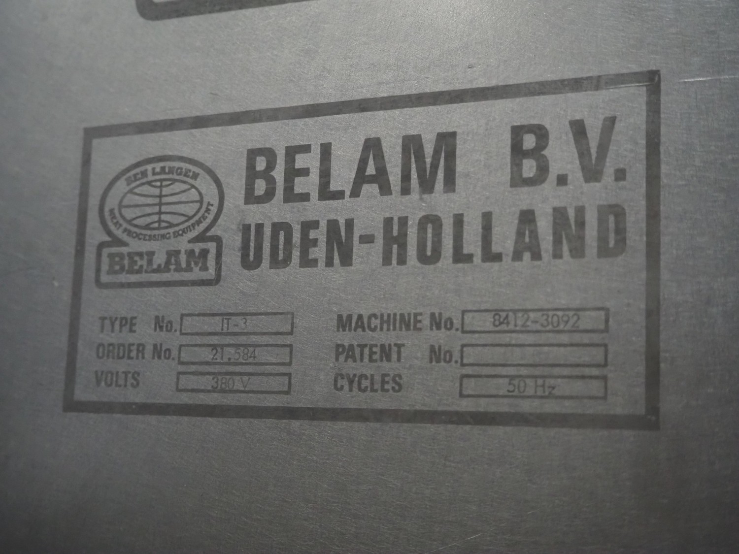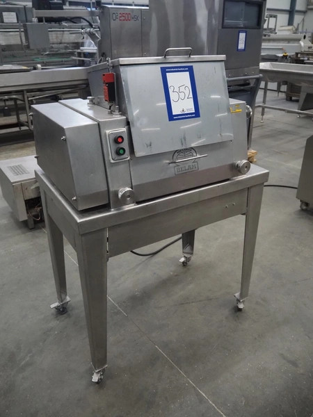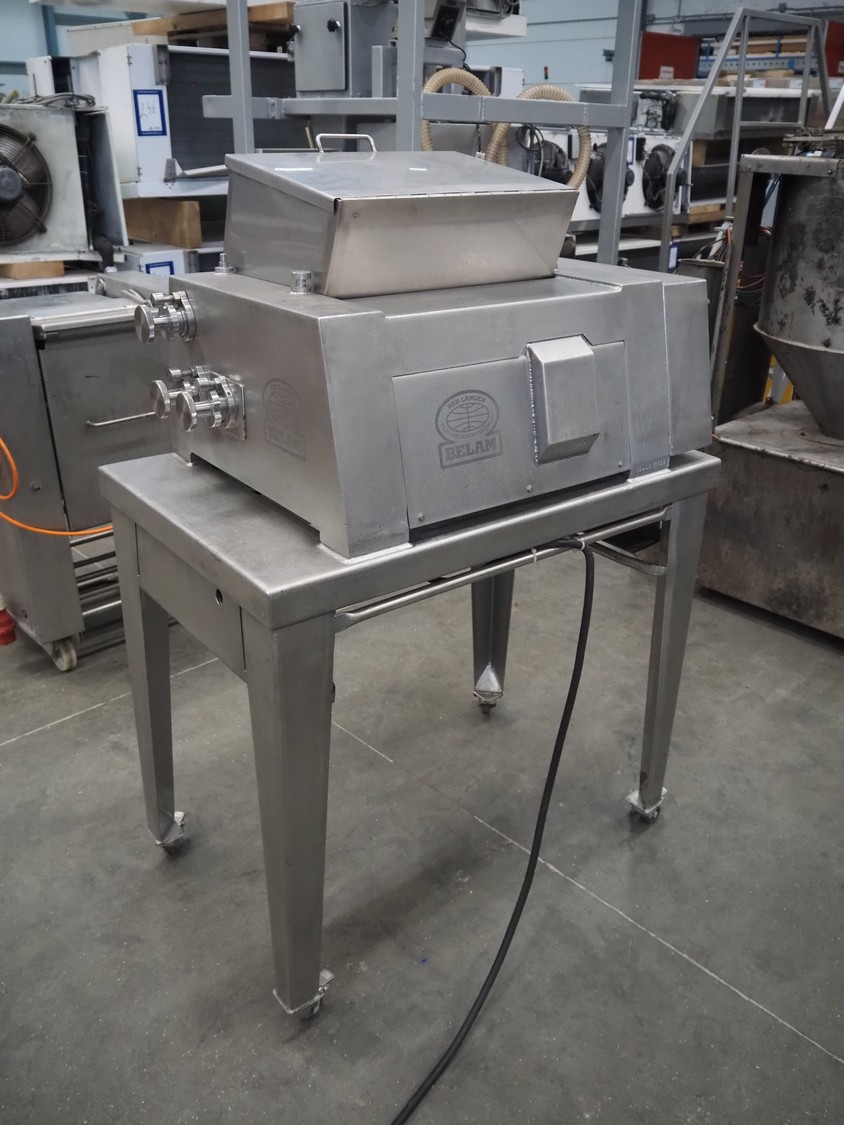 Belam B.V. mobile tenderizer, type: IT-3, machine number: 8412-3092, 380 V, 50 Hz, infeed clearance: 310 mm x 170 mm, total dimensions: 950 mm x 650 mm x 1400 mm.