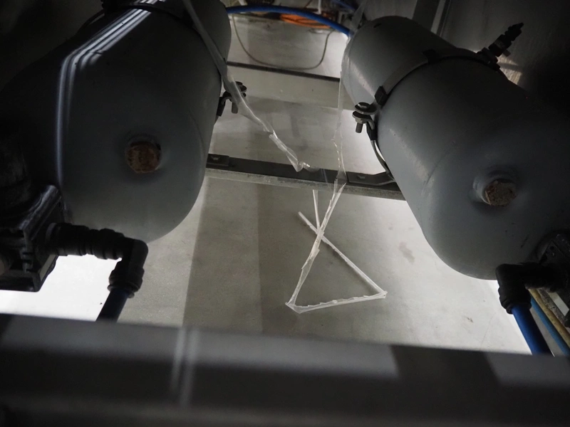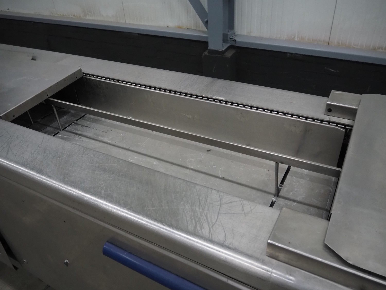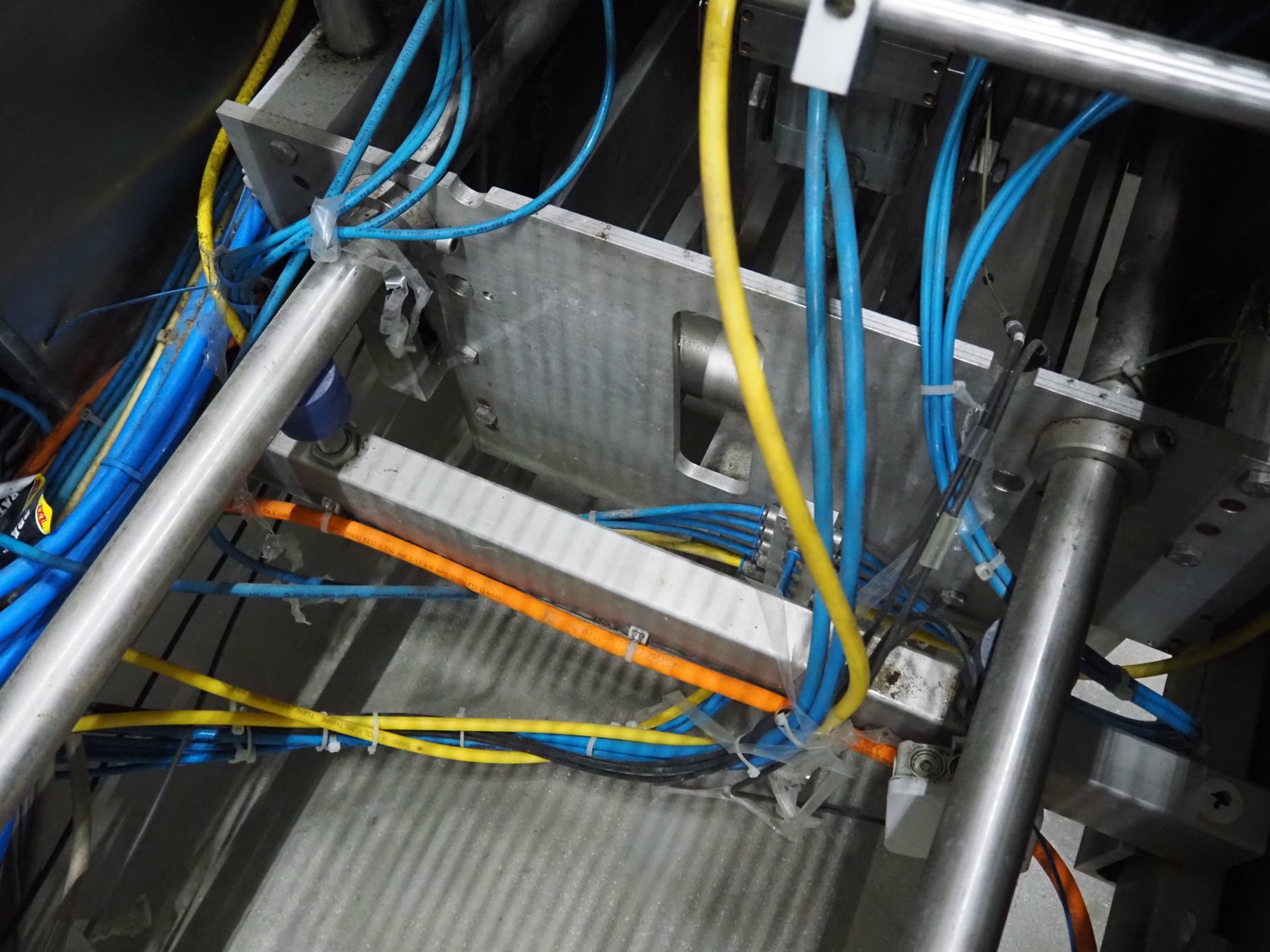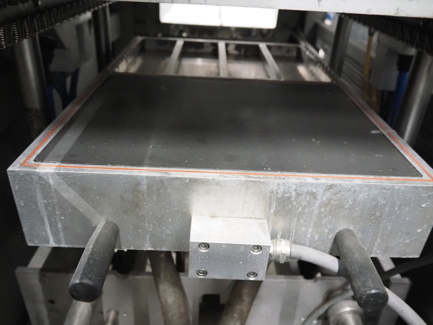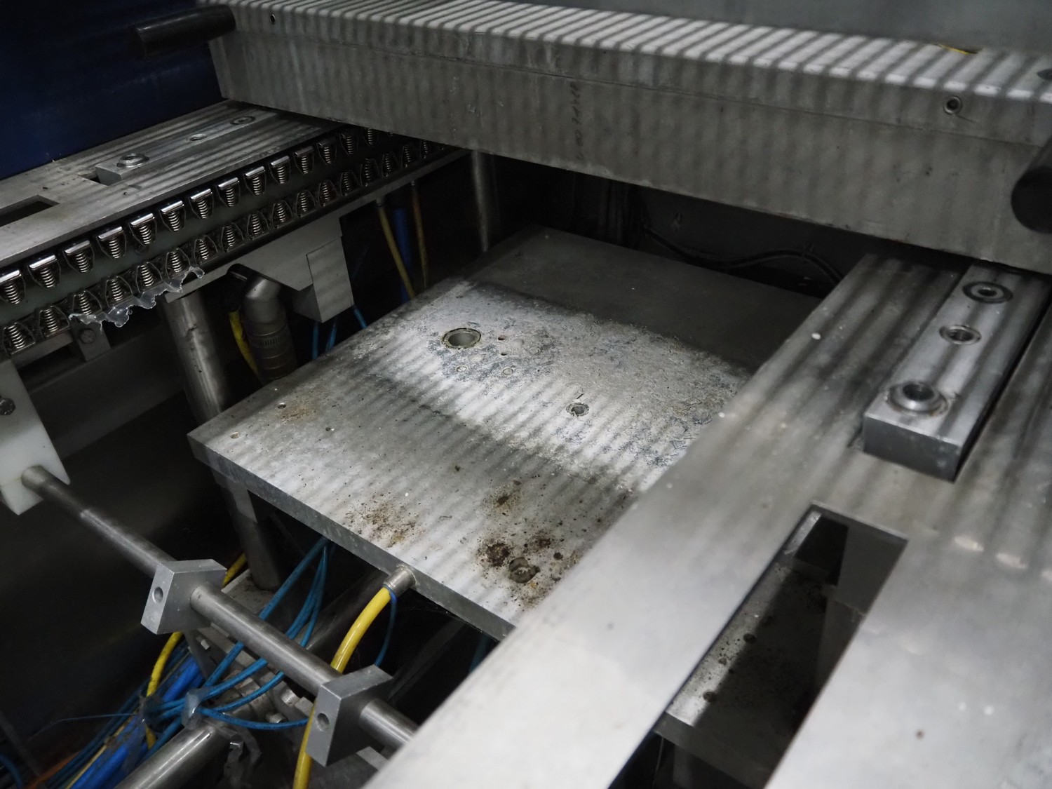 CFS thermoformer, type: EVOLUTION, serial number: 4046100391, year of construction: 2008, 400 V, 3 Ph, 50 Hz, 20 A, 10 kW, film width: 350 mm, dyes: (4x) 300 mm x 90 mm, index: 470 mm, belt width: 430 mm, label width: 85 mm, plastic belt, belt width: 420 mm, total dimensions: 13400 mm x 1300 mm x 2160 mm. Including 5 pallets with machine parts, among others: dyes: (8x) 200 mm x 65 mm, (3x) 255 mm x 130 mm. Transport rollies not included.