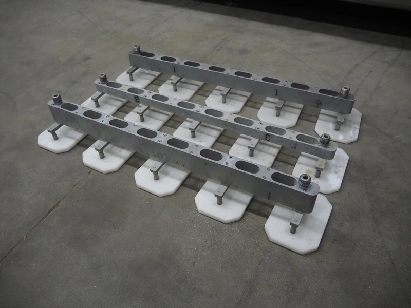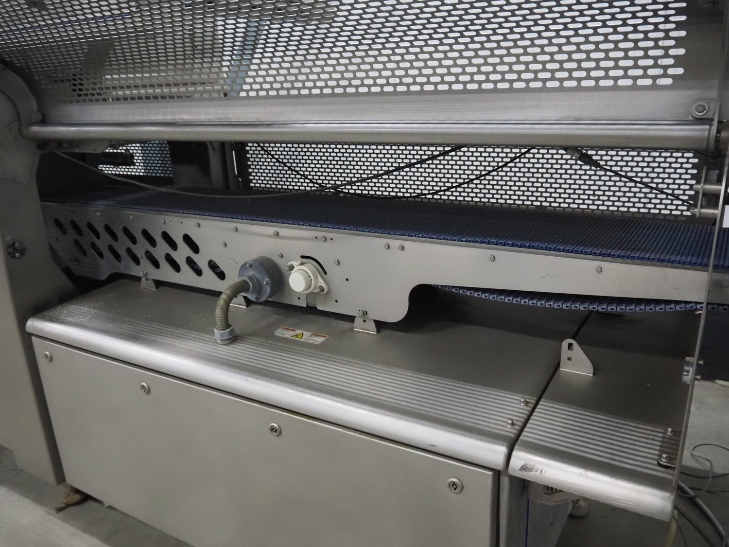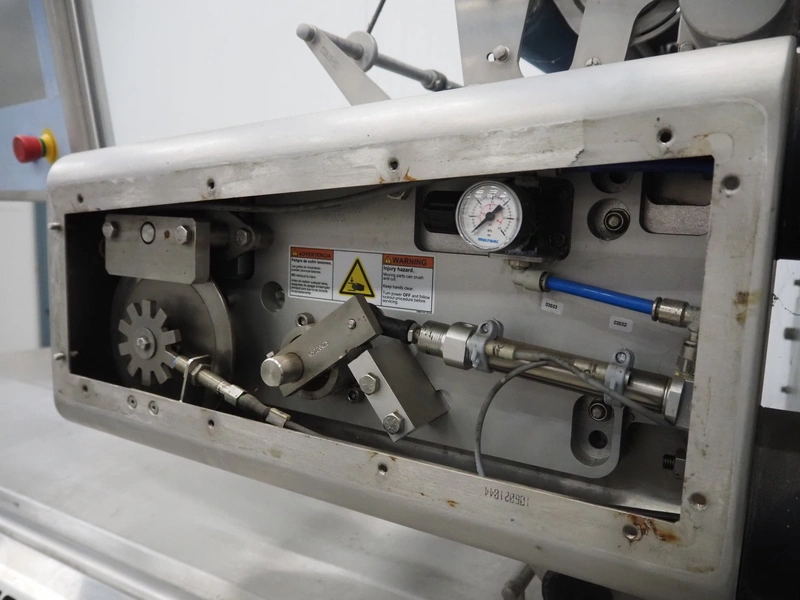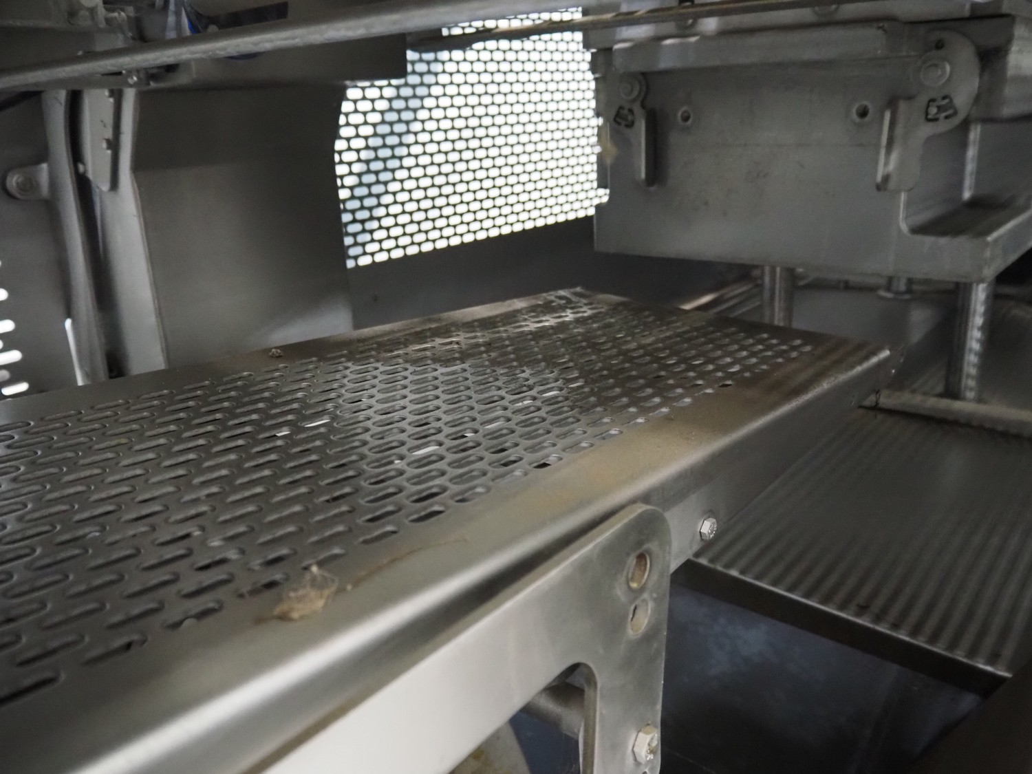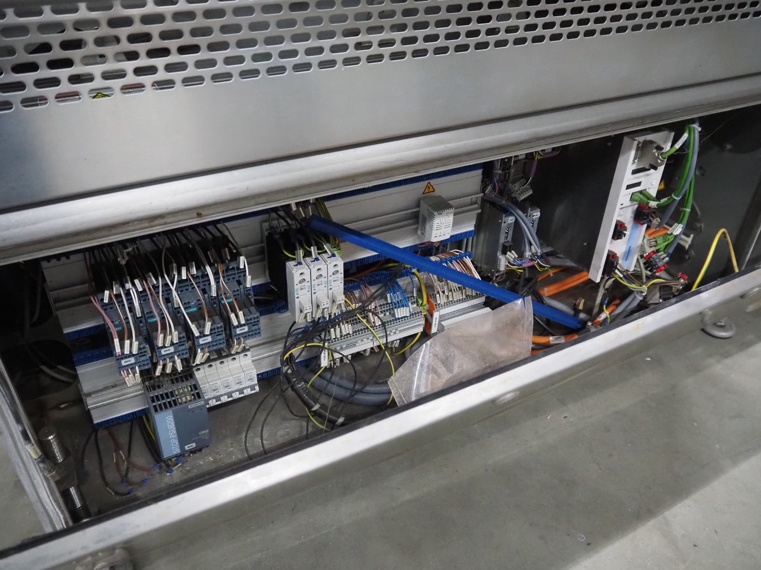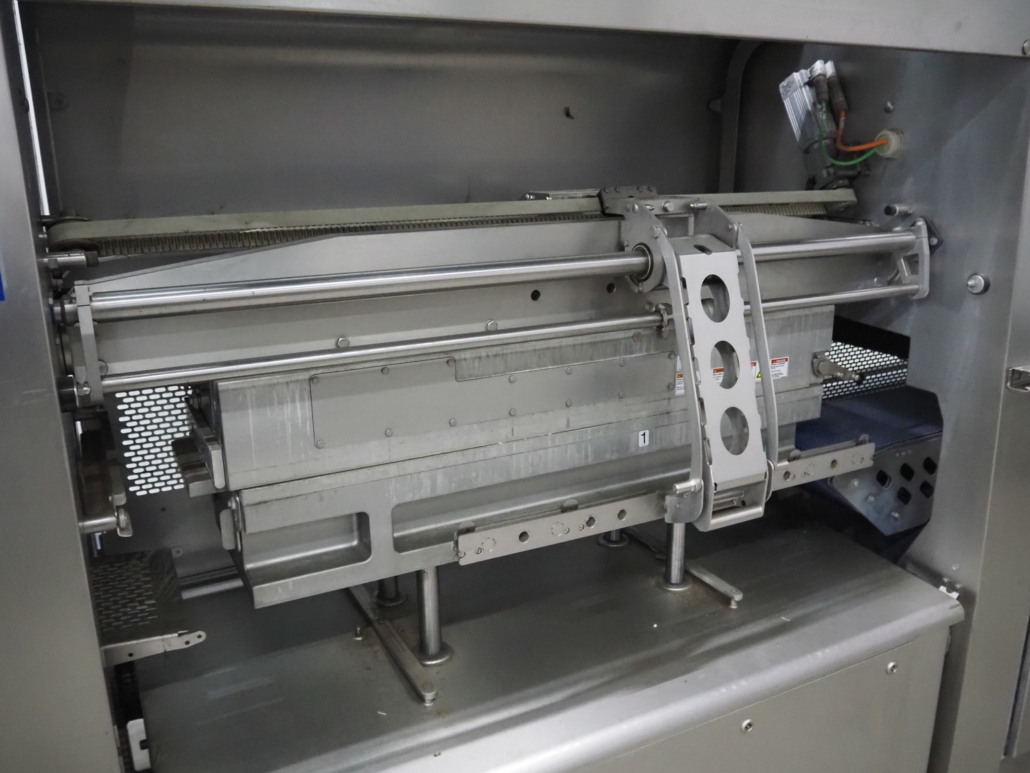 Multivac traysealer, model: T 800, serial number: 239815, year of construction: 12-2016, 220/127 V, 3 Ph, 60 Hz, 32/50 A, 8.4 kW, plastic mesh belt, belt width: 300 mm, clearance: 500 mm x 170 mm, film width: 520 mm, total dimensions: 5400 mm x 1020 mm x 2100 mm. Including trolley with dye, dye: (5x) 190 mm x 130 mm, dimensions trolley: 1050 mm x 1050 mm x 1320 mm.