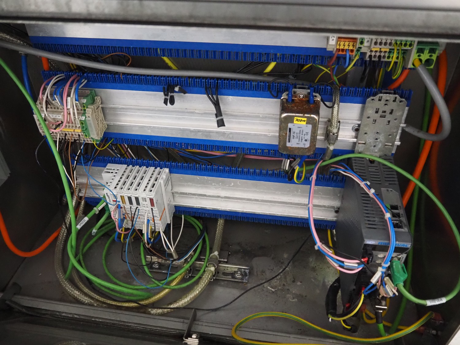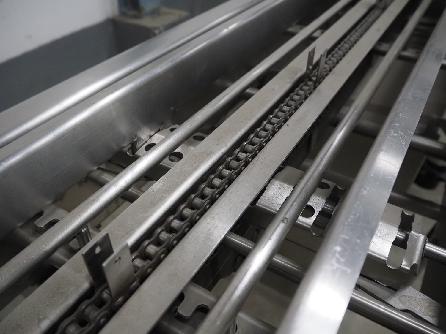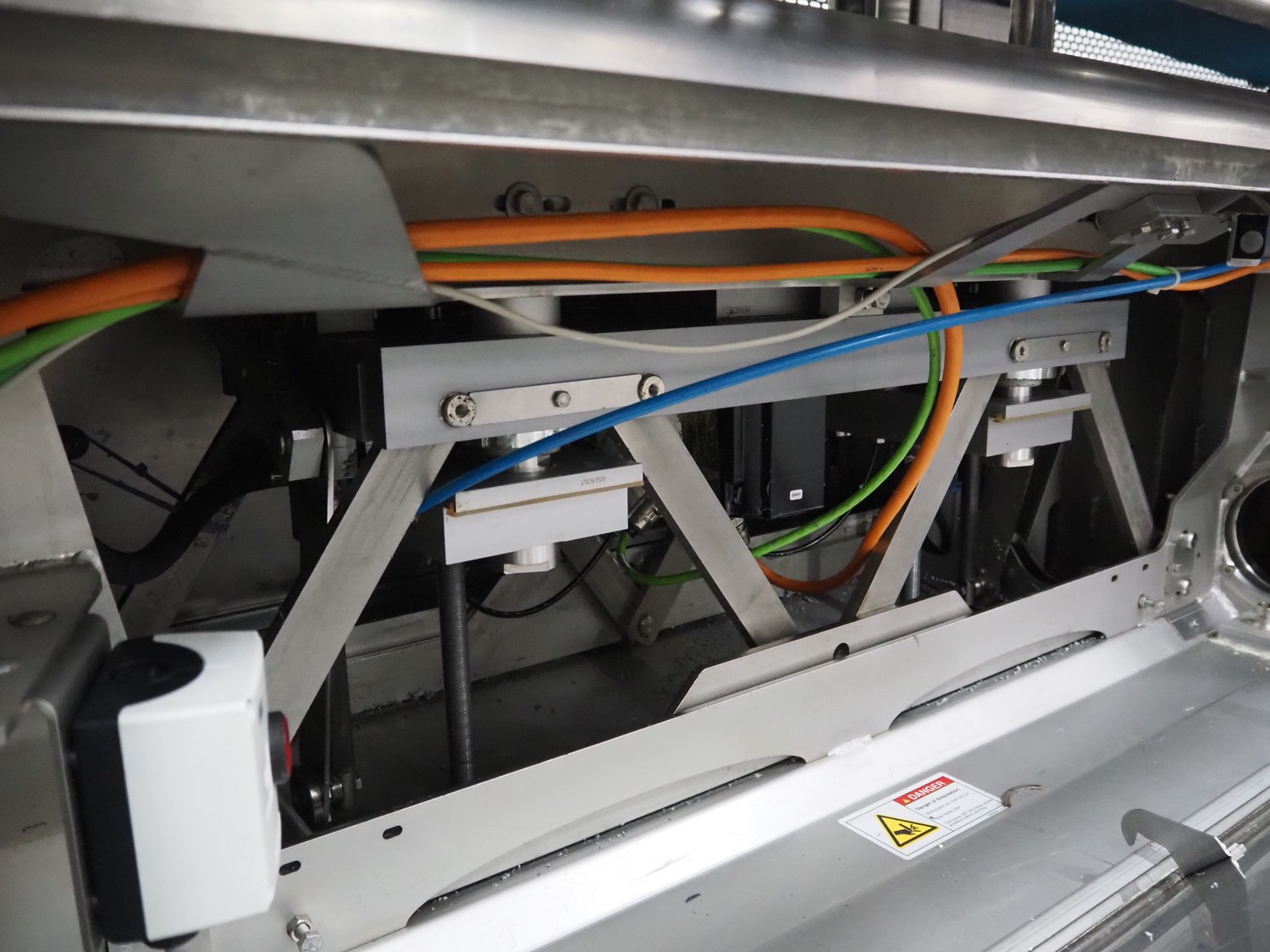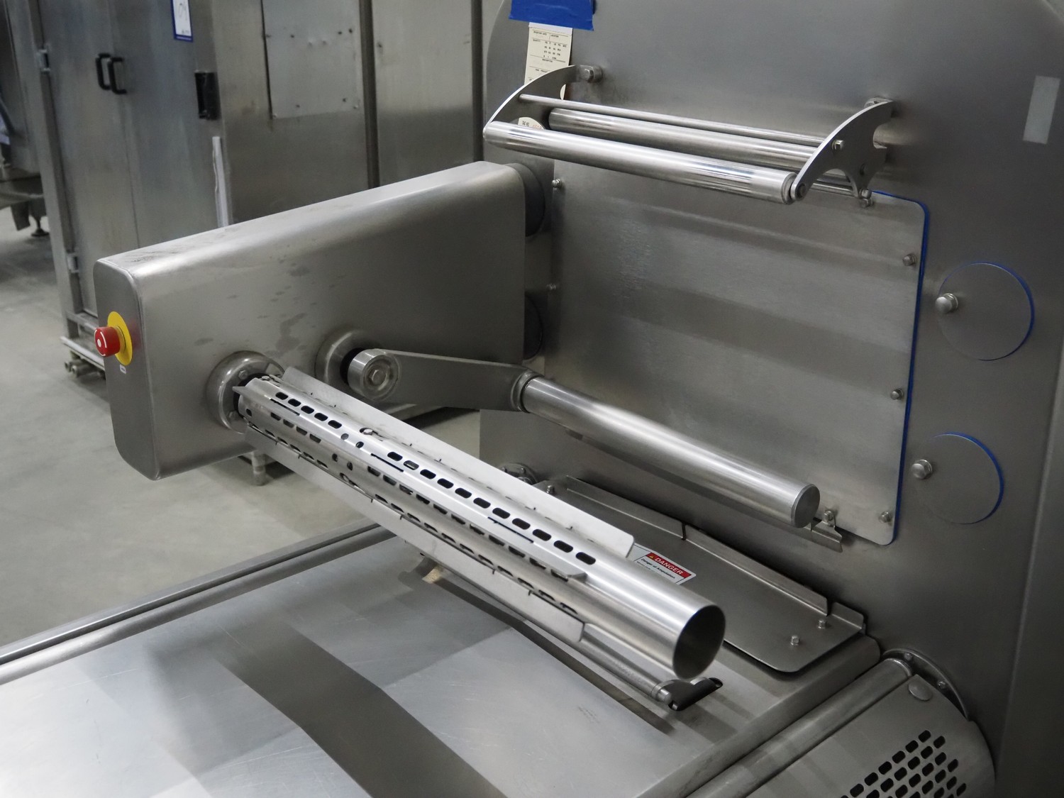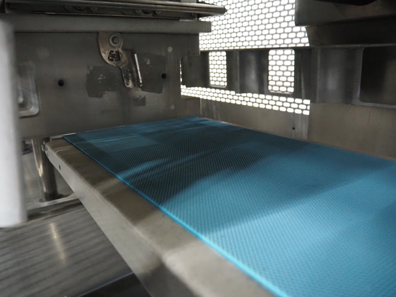 Multivac traysealer, model: T 800, plastic mesh belt, belt width: 250 mm, clearance: 350 mm x 170 mm, film width: 520 mm, infeed belt, belt with dividers, belt width: 205 mm, dividers height: 35 mm, distance between dividers: 290 mm, total dimensions: 6450 mm x 1050 mm x 2060 mm.