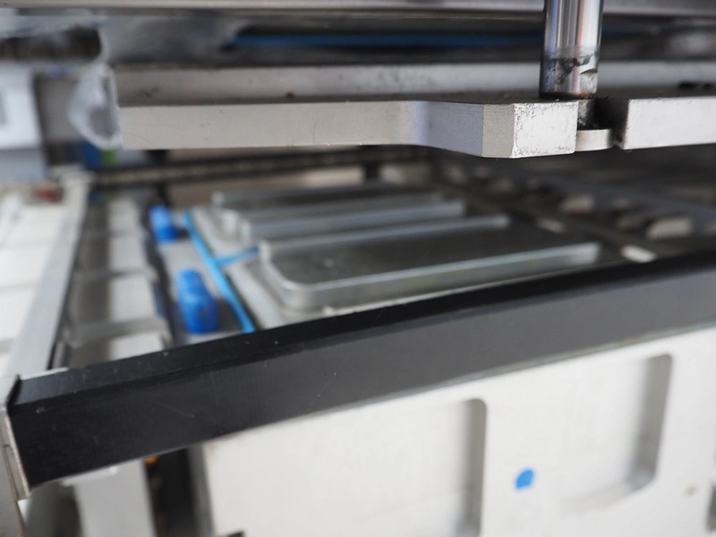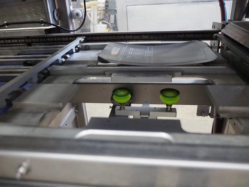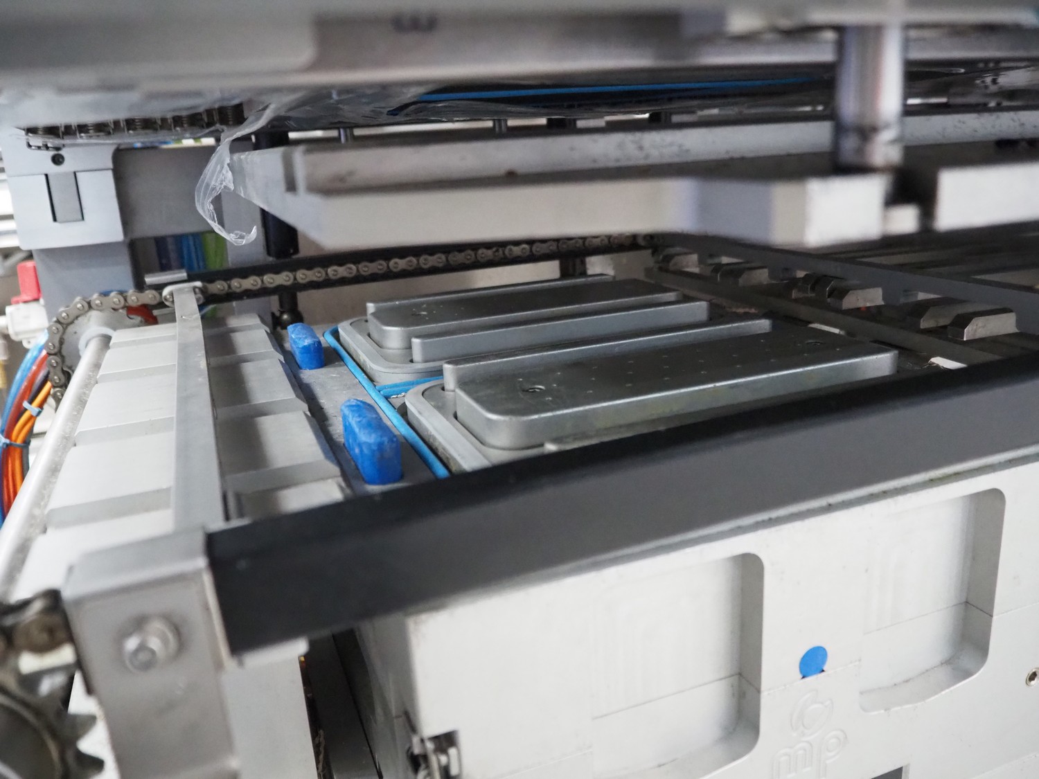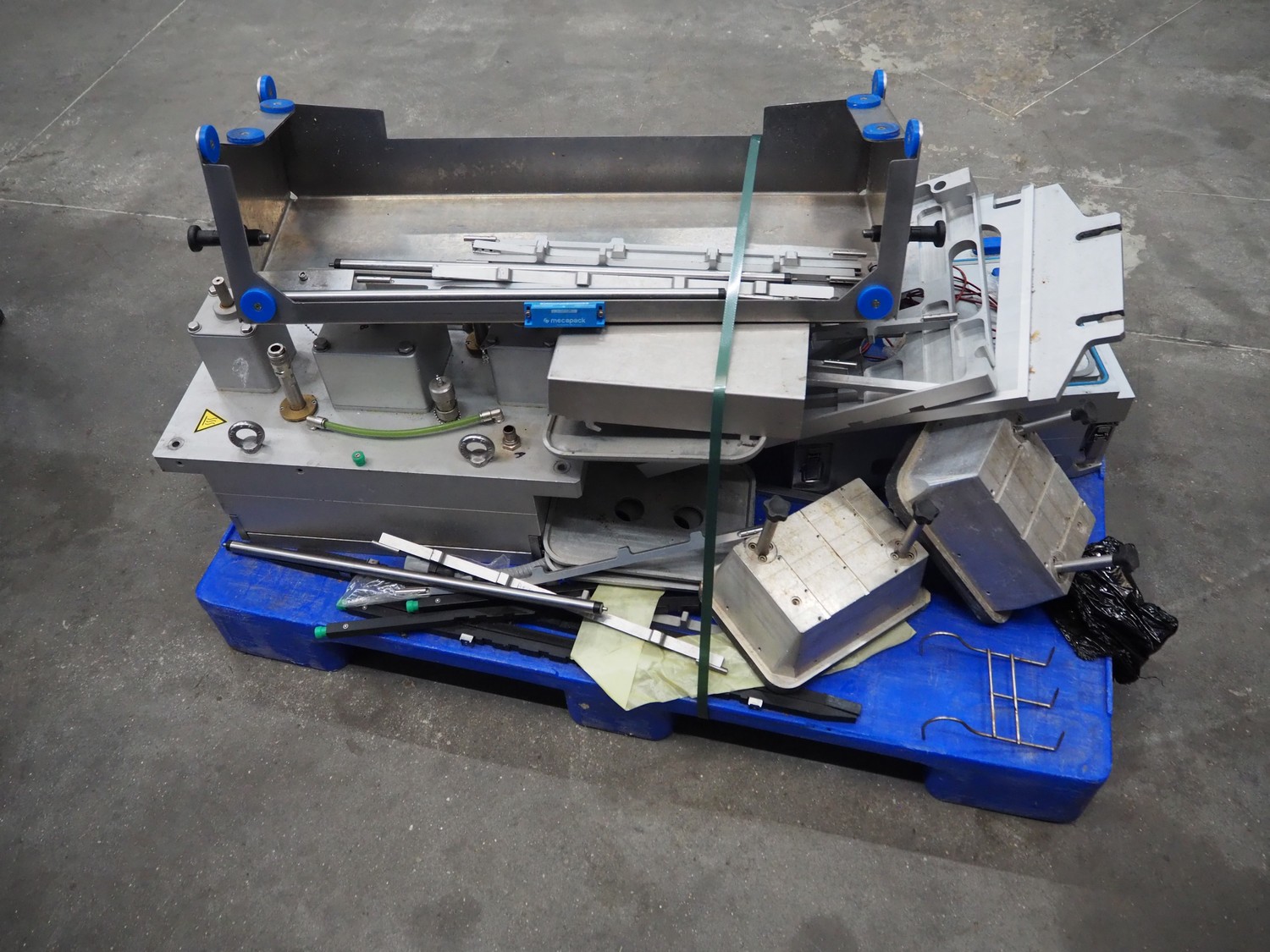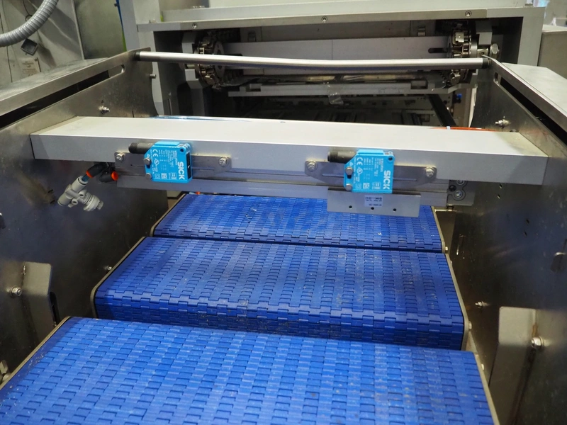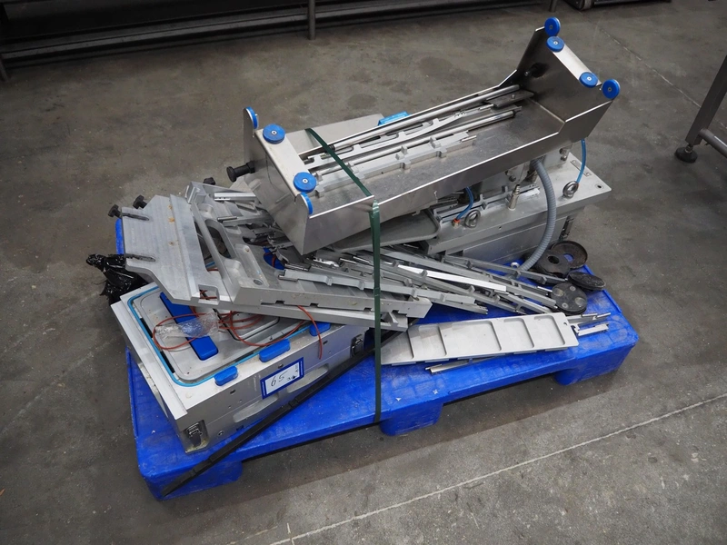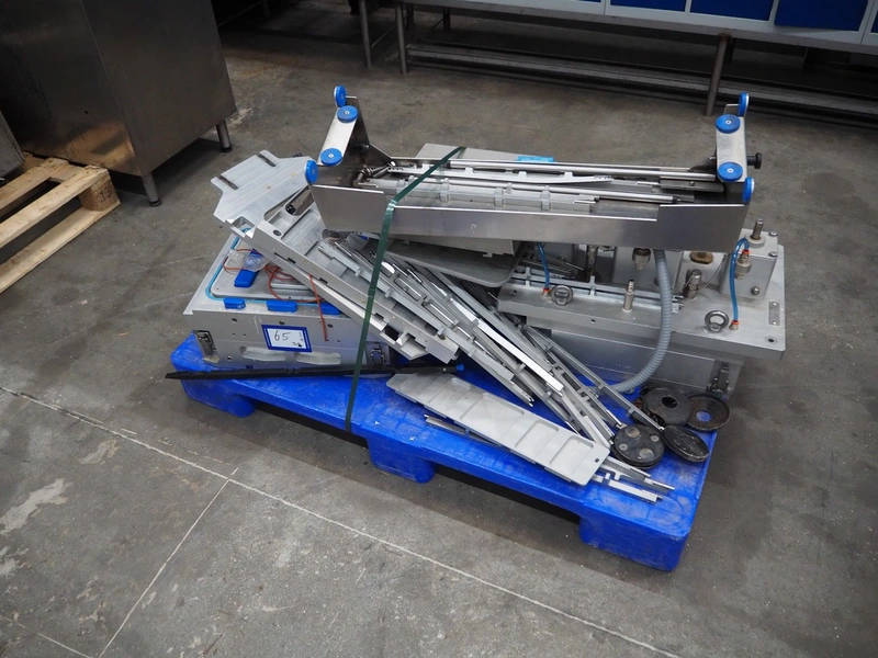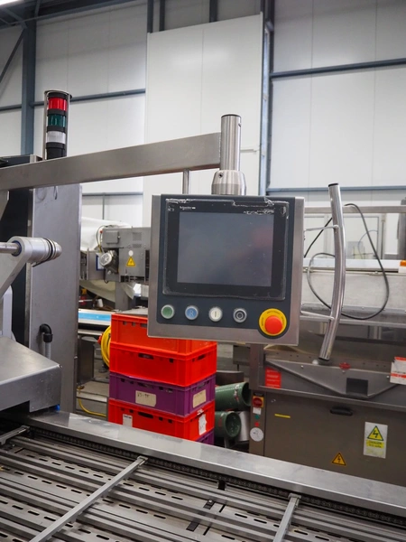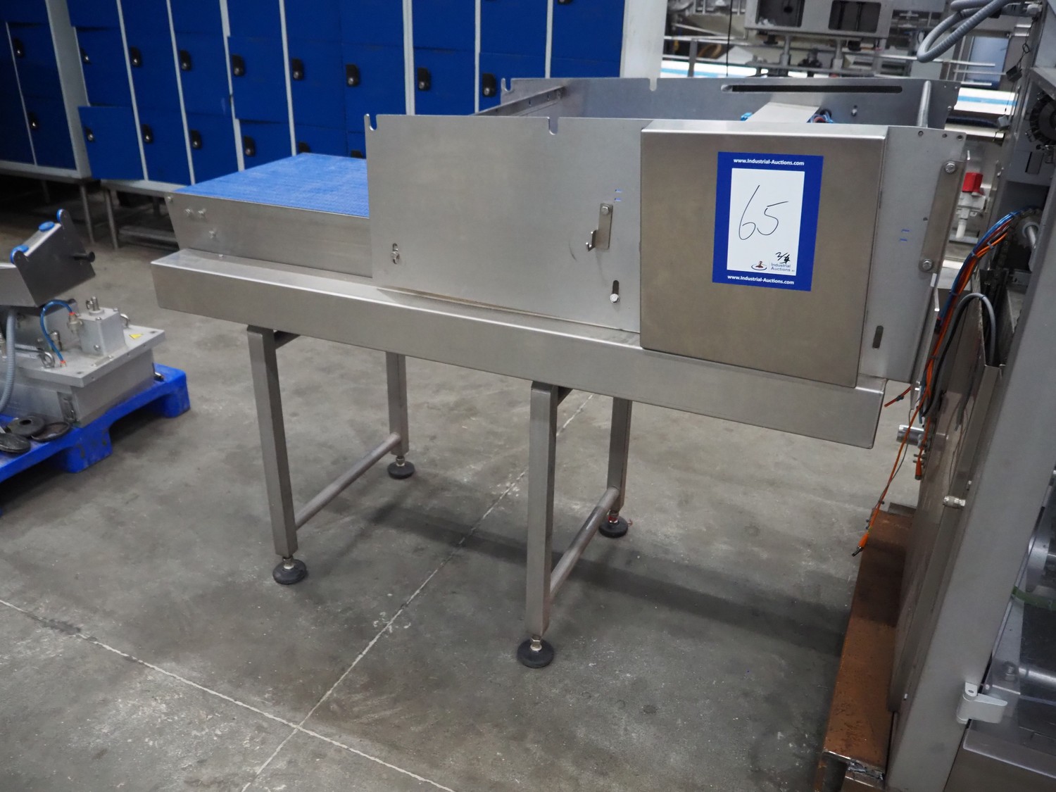 MECAPACK traysealer, type: Q² 2500 HSK, serial number: O08966, year of construction: 2021, 400 V, 3 Ph, 6 A, 16 kW, dye: 225 mm x 200 mm, film width: 460 mm, total dimensions: 4400 mm x 1300 mm x 2100 mm. Including outfeed belt, plastic belt, belt width: 460 mm, total dimensions: 1550 mm x 740 mm x 1180 mm and pallet with parts.