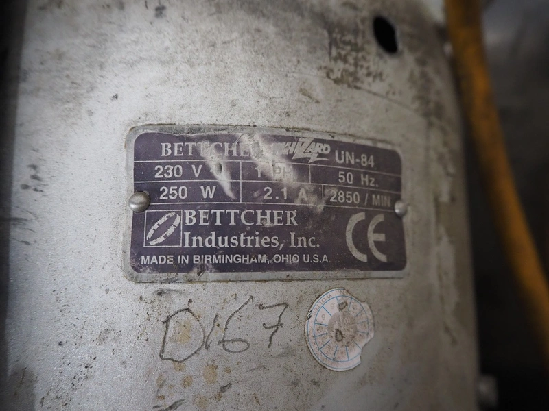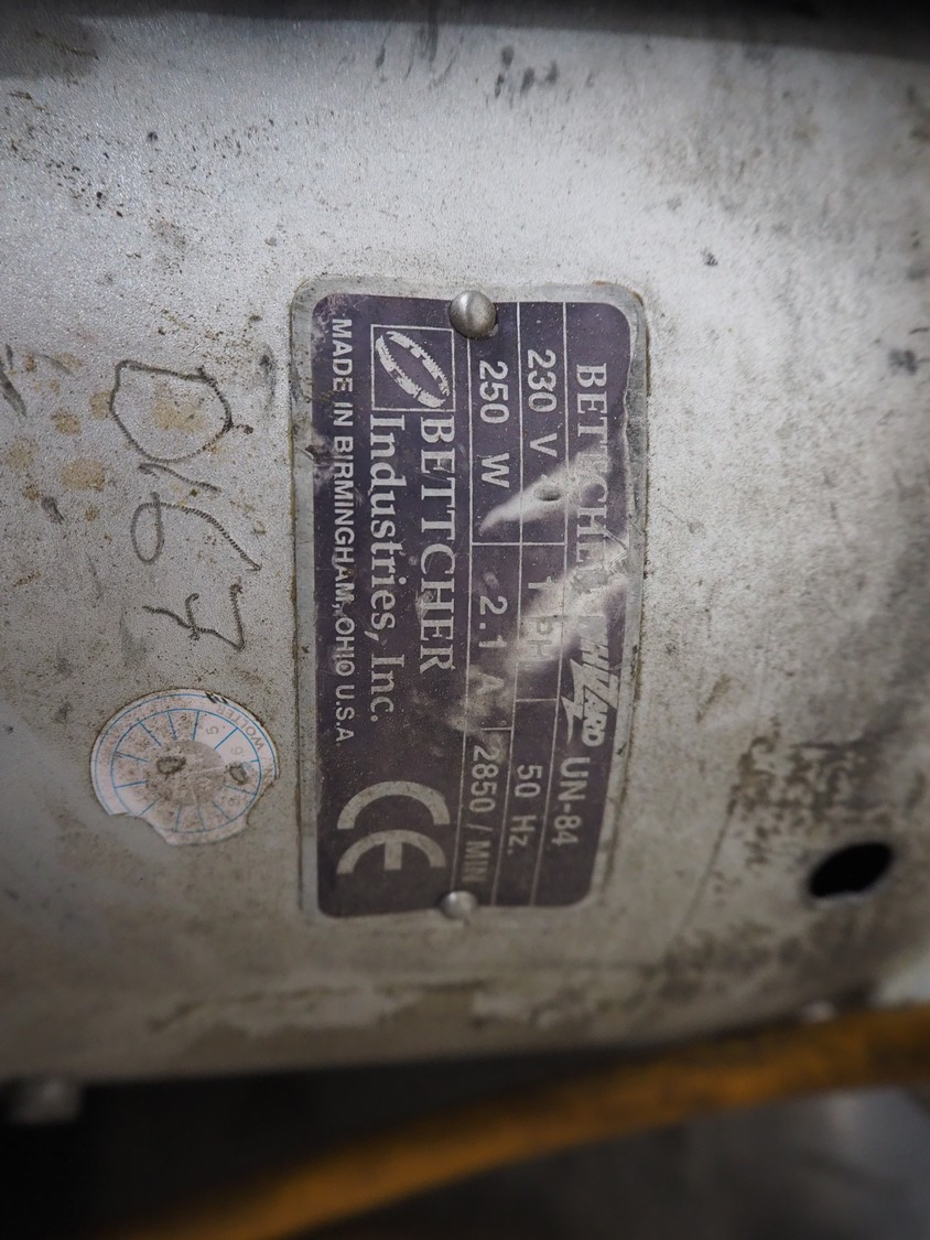 Bettcher Industries, Inc. trimmer, type: UN-84, number: 95110542, 230 V, 1 Ph, 50 Hz, 2.1 A, 250 Watt, dimensions: 300 mm x 200 mm x 600 mm. Incomplete.
