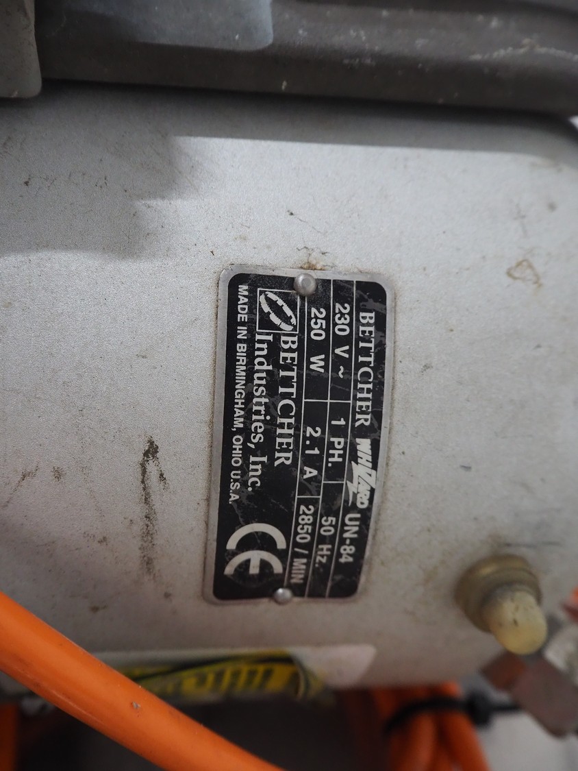 Bettcher Industries, Inc. trimmer, type: UN-84, 230 V, 1 Ph, 50 Hz, 2.1 A, 250 Watt, dimensions: 300 mm x 200 mm x 600 mm. Incomplete.