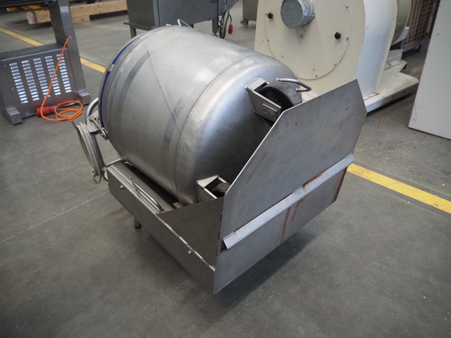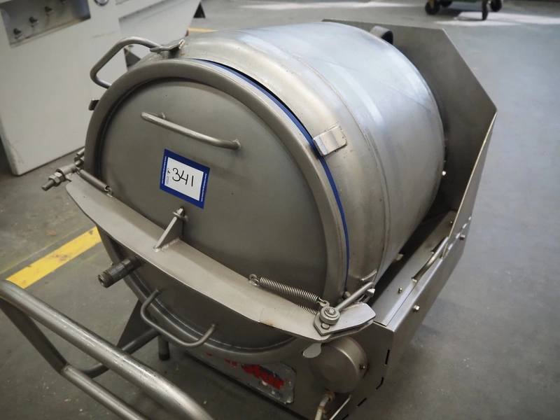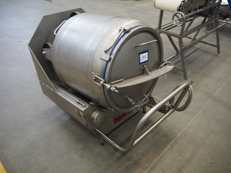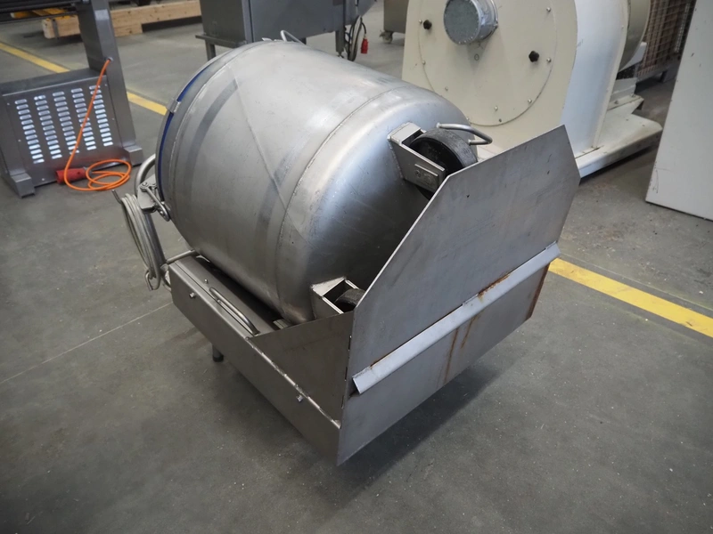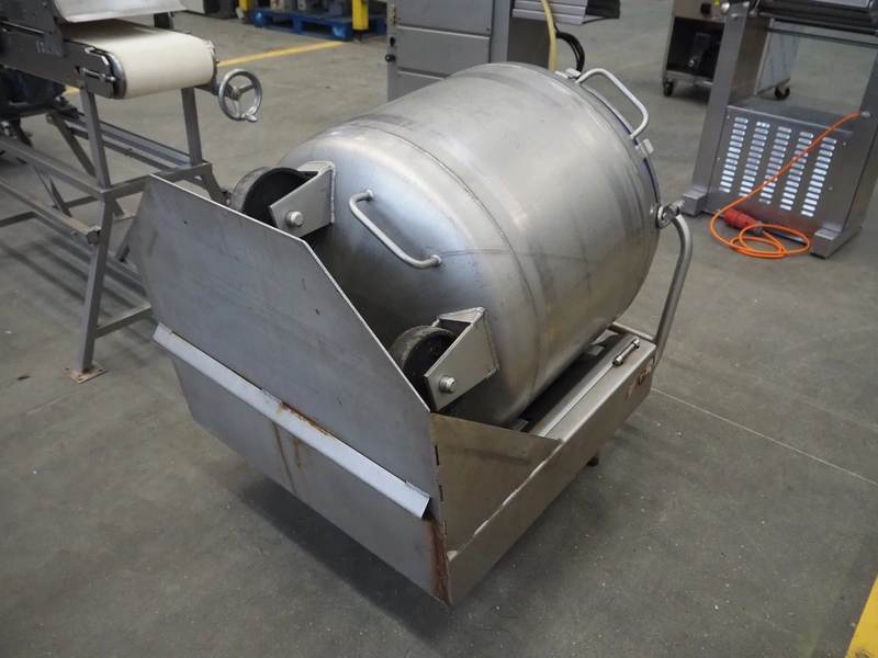 Inject Star vacuum tumbler, inside dimensions: Ø 570 mm x 640 mm, total dimensions: 1150 mm x 750 mm x 950 mm. Including vacuum pump.