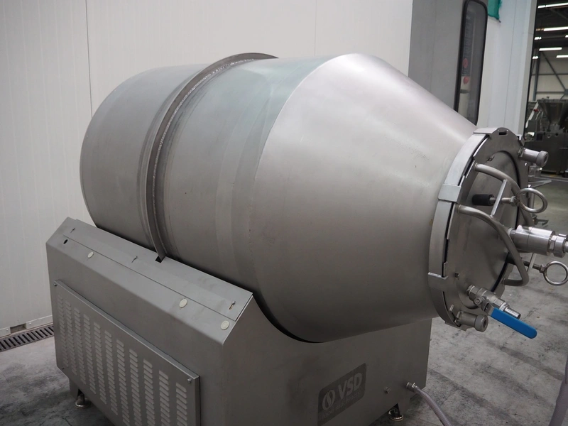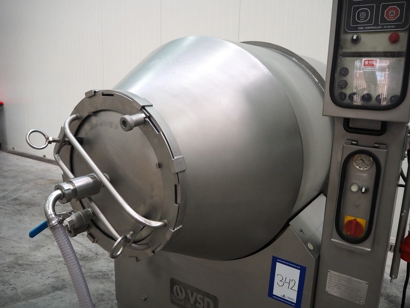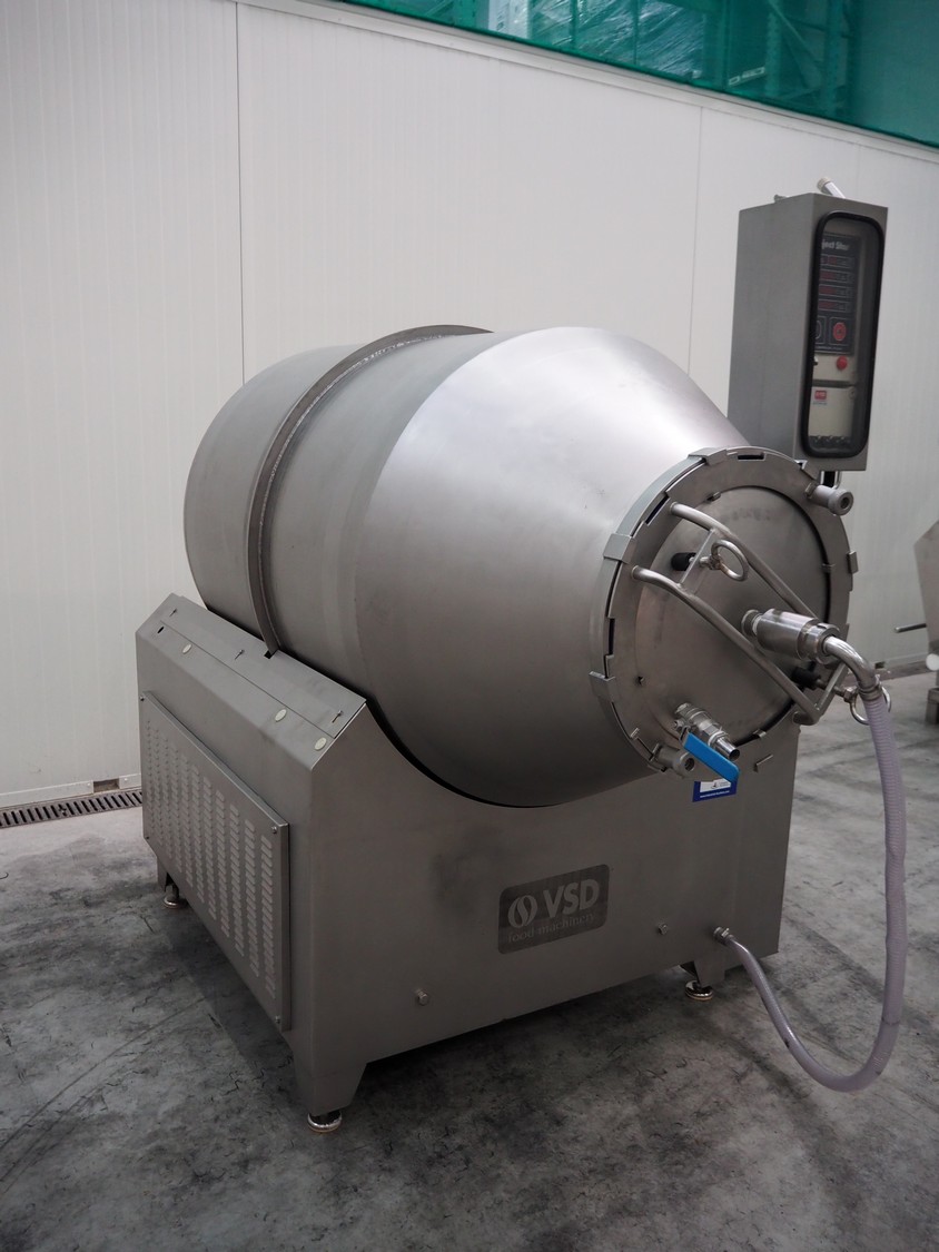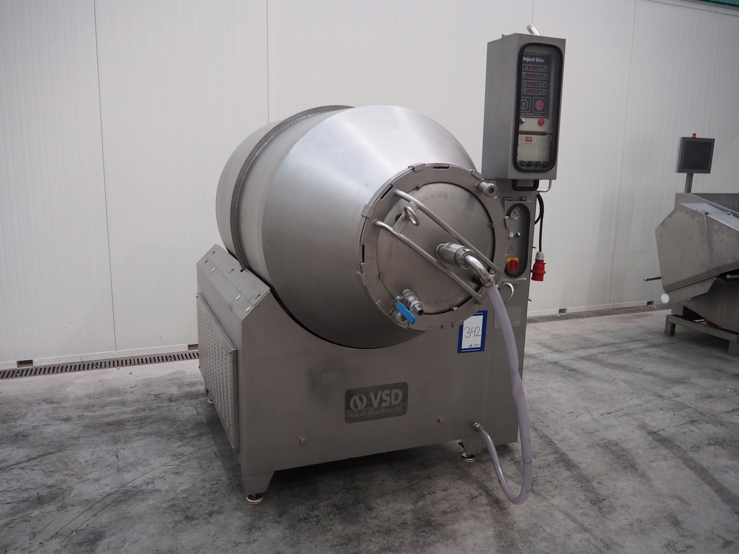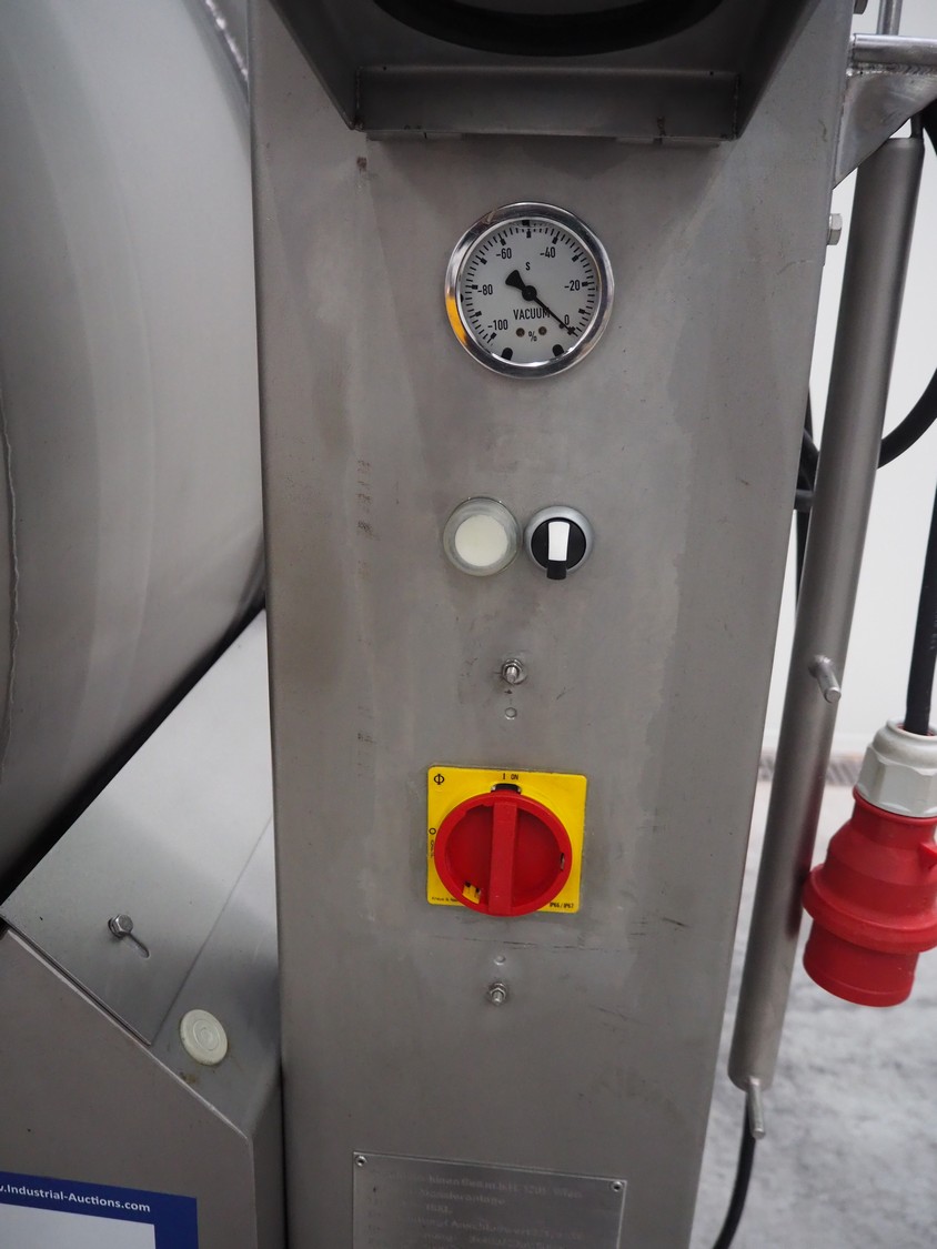 Inject Star / Pökelmaschinen Ges.m.b.H. vacuum tumbler, type: ES-1100, number: 239, year of construction: 2000, 400 V, 3 Ph, 50 Hz, 1.8 kW, dimensions: 2150 mm x 1550 mm x 2000 mm.