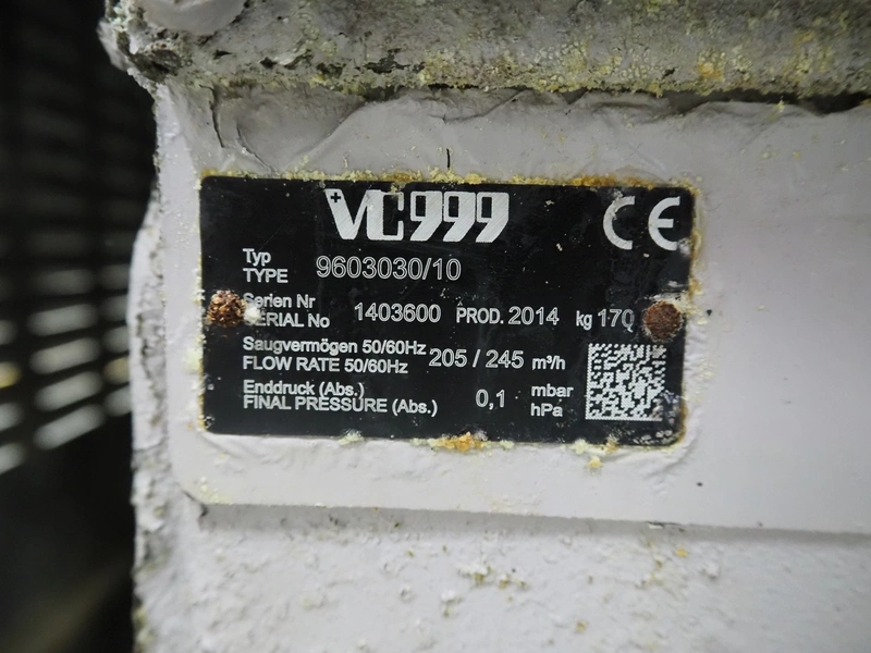 VC999 Verpackungssysteme AG vacuum machine, type: VC999 07S H15/205, machine number: 07152588, year of construction: 2015, 400 V, 3 Ph, 50 Hz, 7 kW, VC999 vacuum pump, type: 9603030/10, serial number: 1403600, year of construction: 2014, capacity: 205/245 m³ per hour, seal length: (2x) 450 mm and (1x) 1000 mm, dimensions chamber: 1050 mm x 530 mm, total dimensions: 1350 mm x 850 mm x 1100 mm.