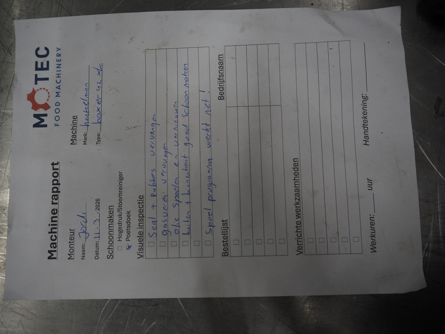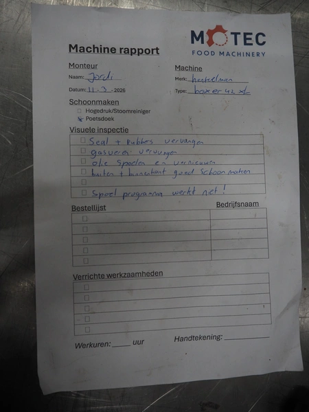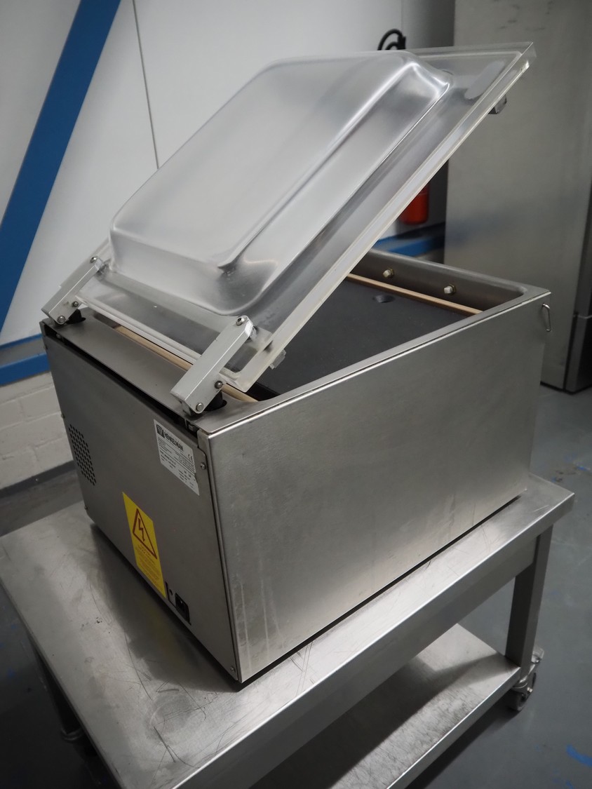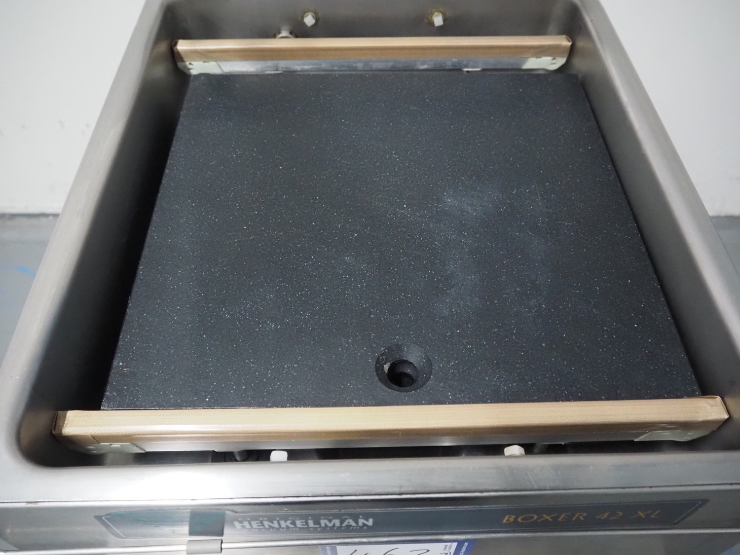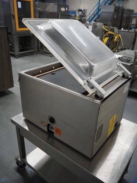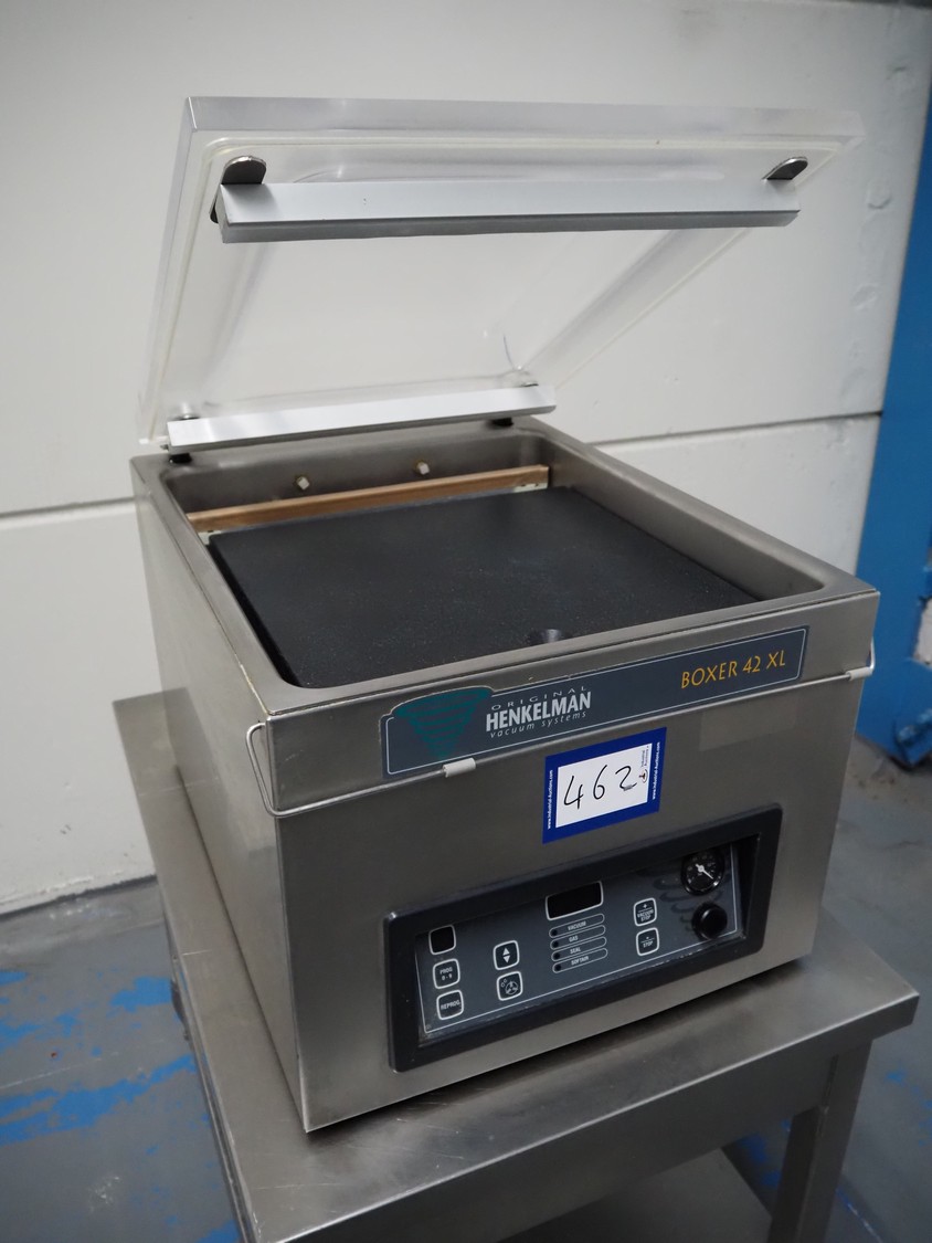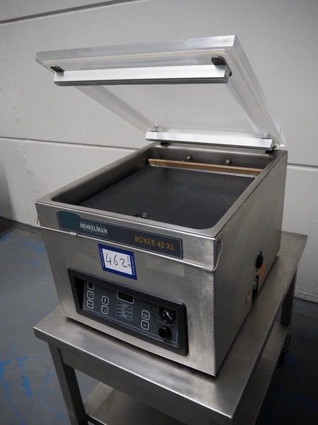 Henkelman vacuum machine, type: BOXER 42 XL II, machine number: B201105330, year of construction: 2011, 230 V, 1 Ph, 50 Hz, 8.5 A, 1 kW, seal length: 425 mm, dimensions chamber: 425 mm x 425 mm x 70 mm, total dimensions: 620 mm x 500 mm x 480 mm.